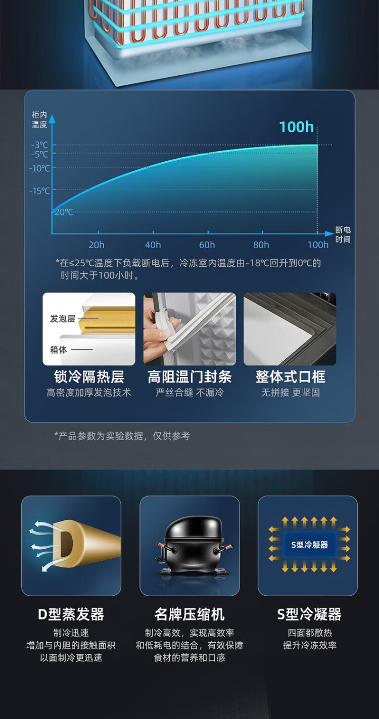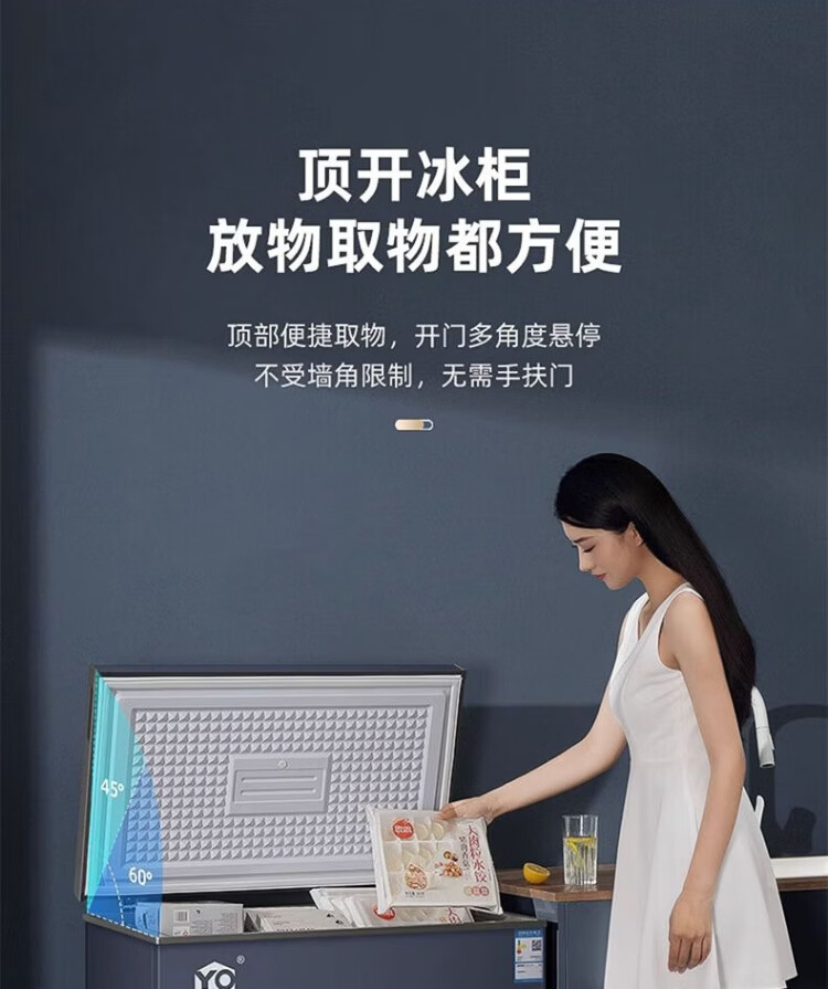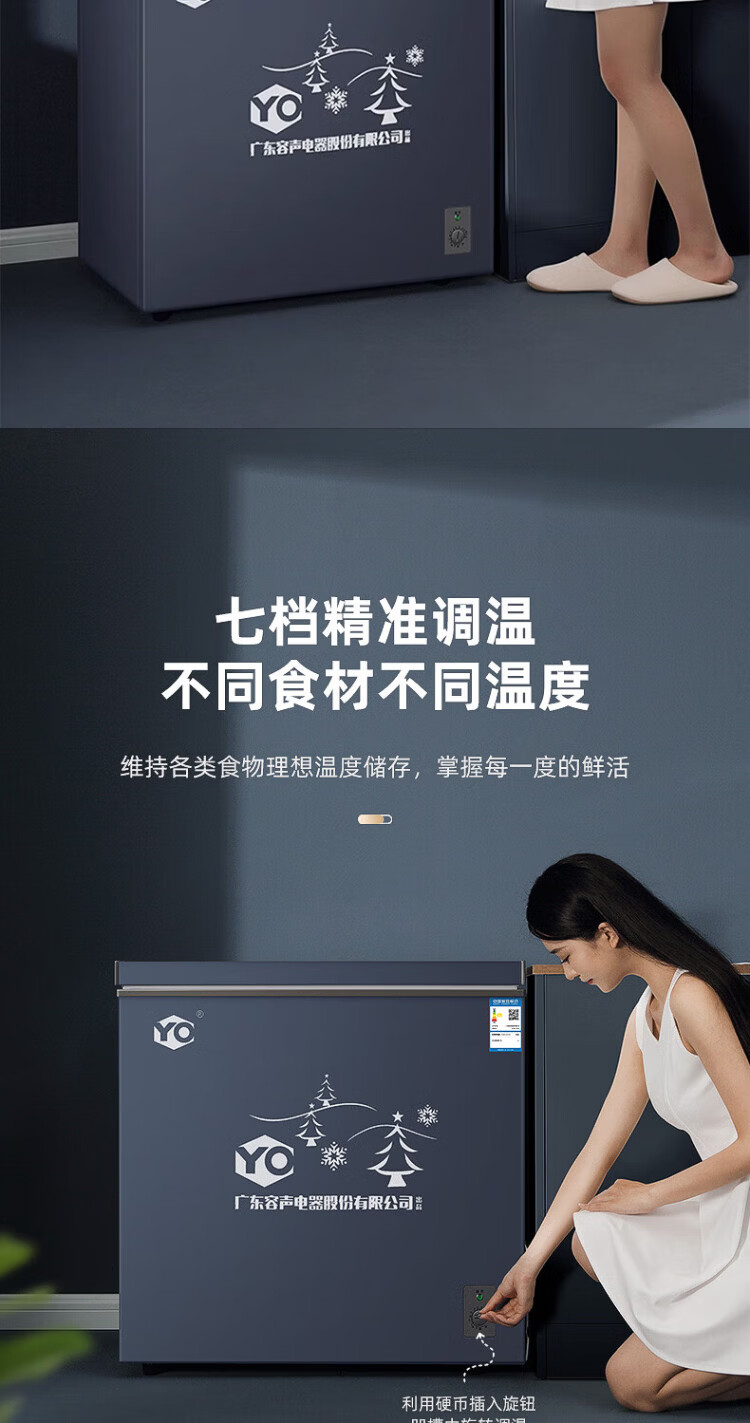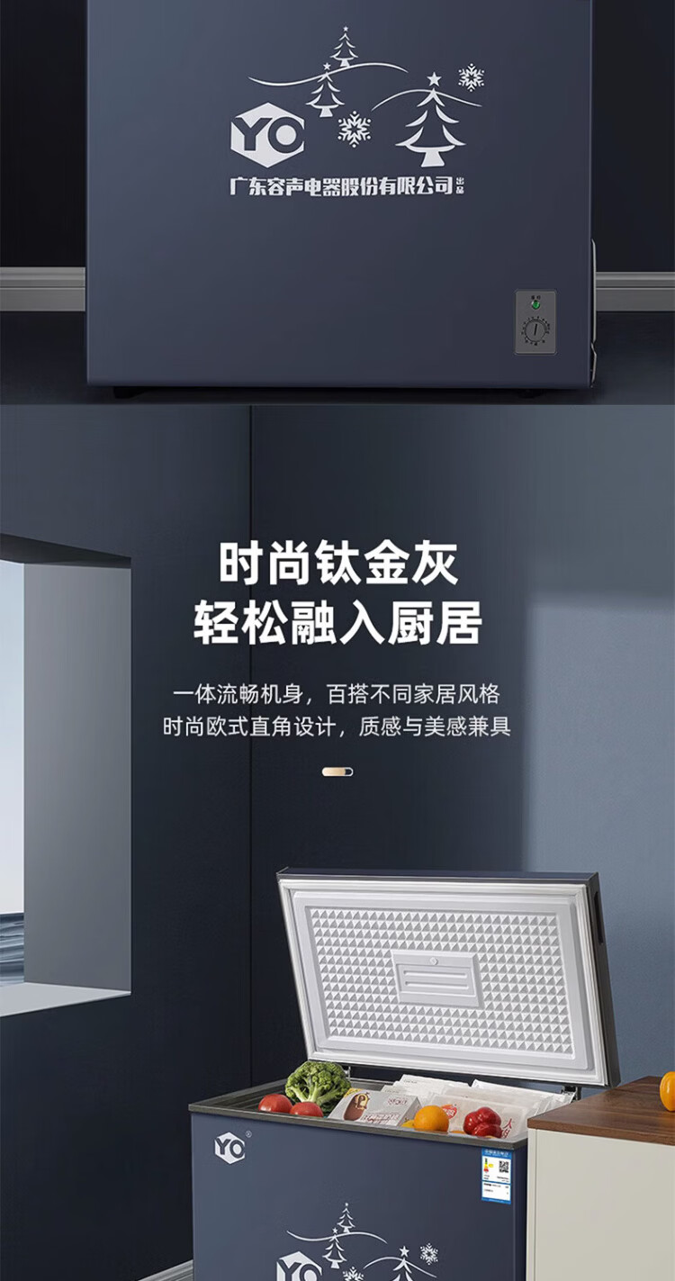 YO Freezer Frequency Conversion Horizontal Small Freezer Household Small Refrigerated Fresh Refrigeration Large Capacity Commercial Energy Saving Frost-Free 228 Upgrade Single Temperature Frost Reduction + Frequency Conversion丨Copper Tube丨First Class Energy Efficiency 160L