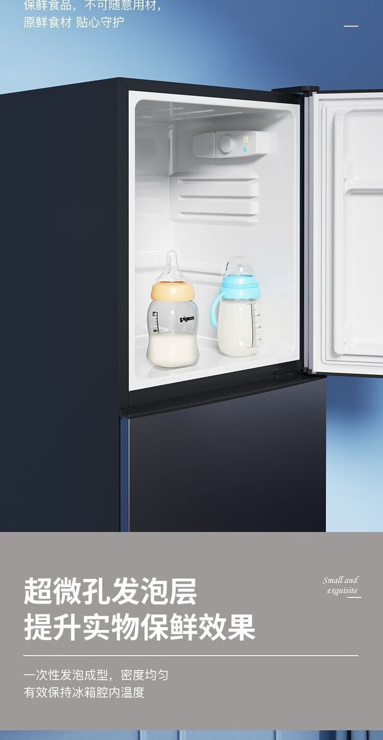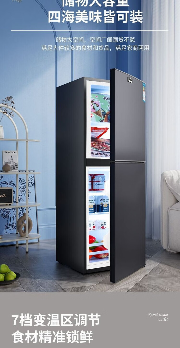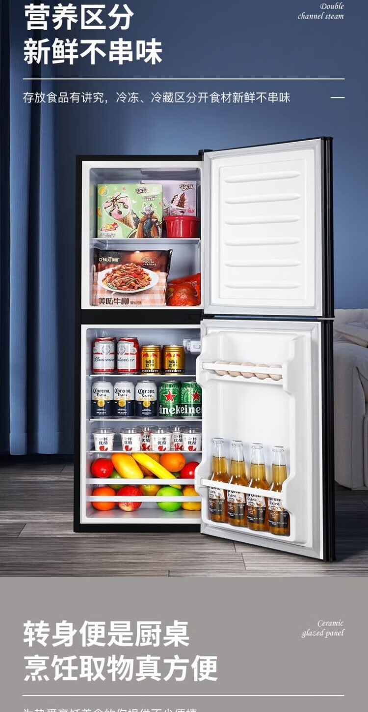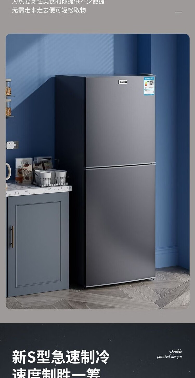 CHIGO double-door refrigerator for rental houses, energy-saving, first-class energy efficiency, large capacity, 1.2 meters high, household 148ABLS copper tube quick cooling/first-class energy efficiency, nationwide joint warranty