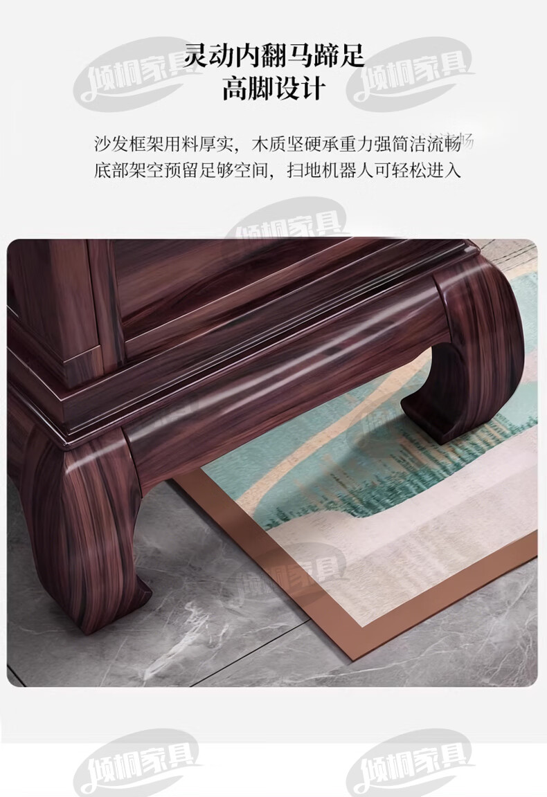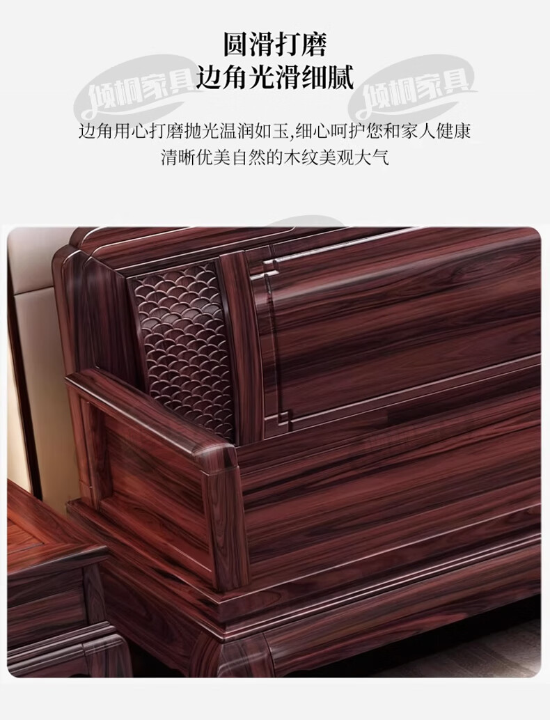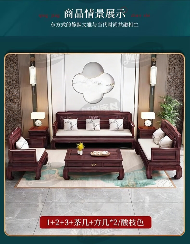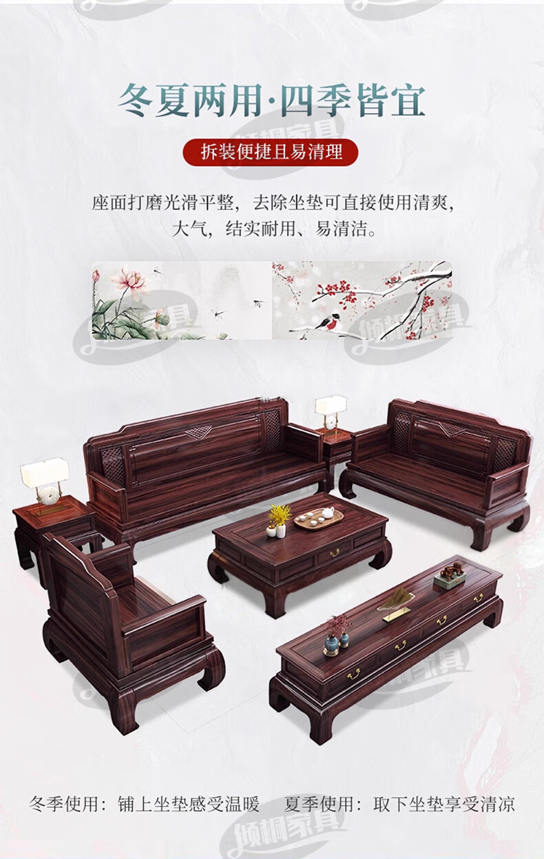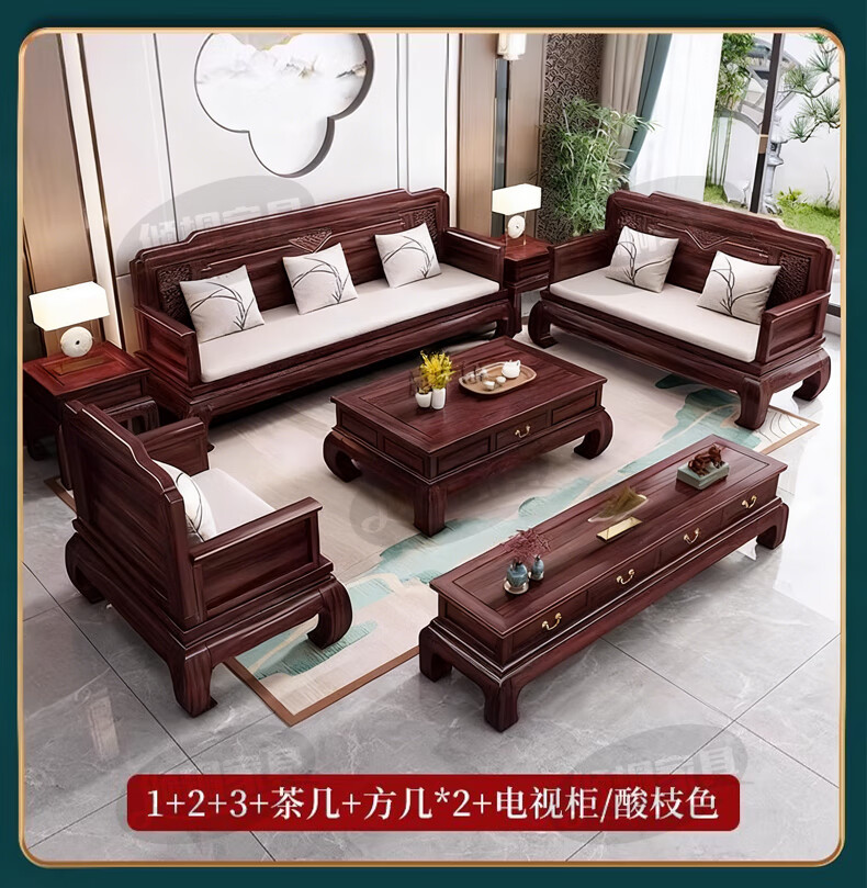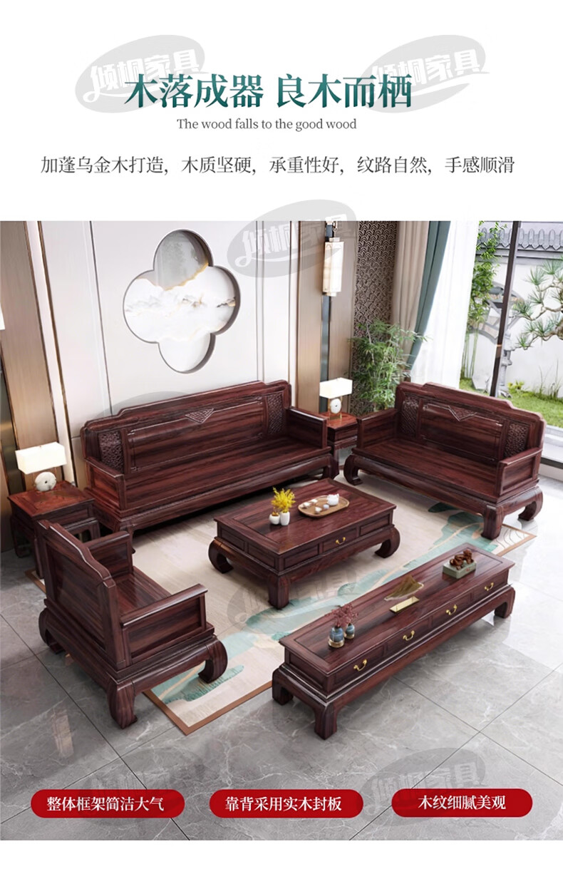 Qingtong ebony wood Chinese style classical solid wood sofa combination antique carved living room villa winter and summer dual-purpose furniture 123+coffee table+2 square tables