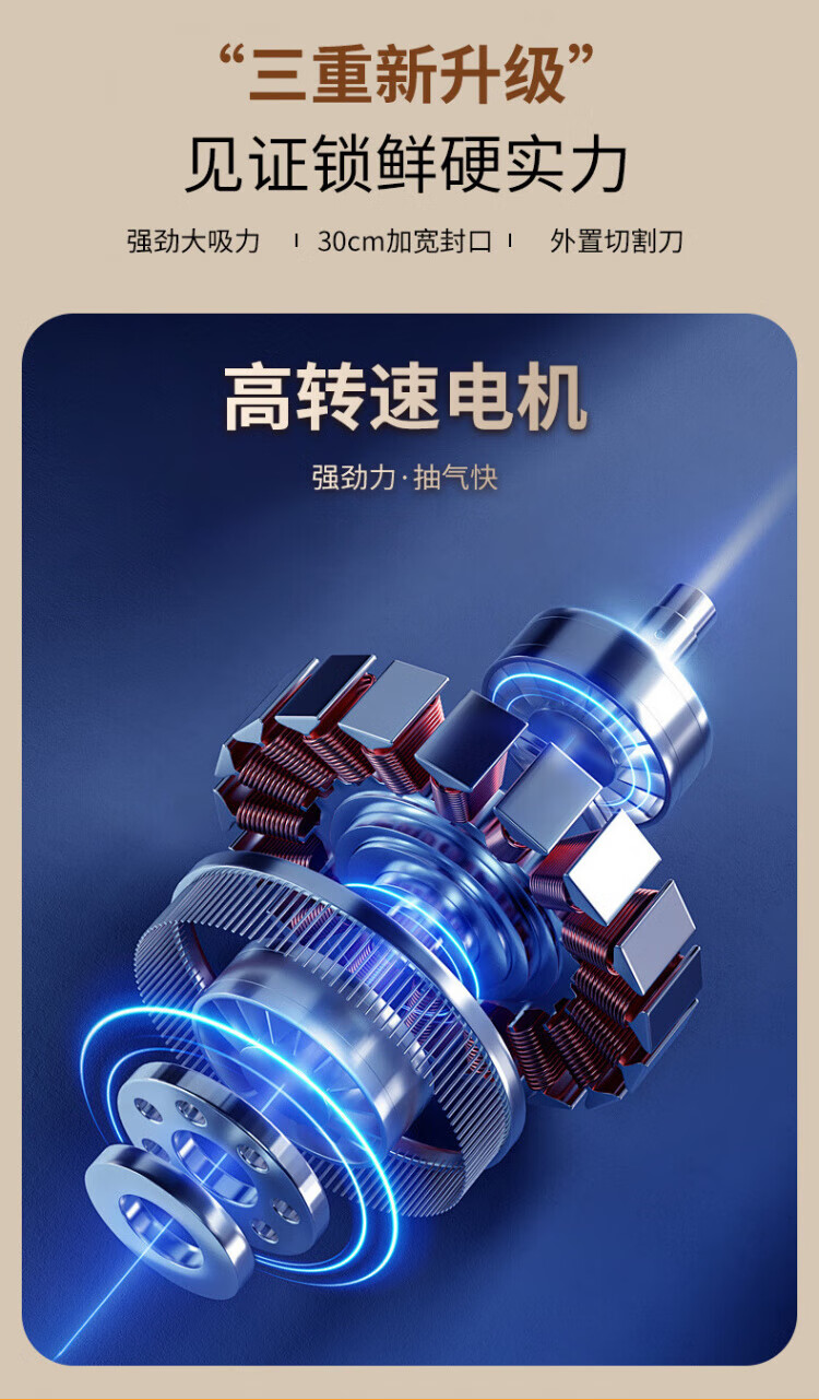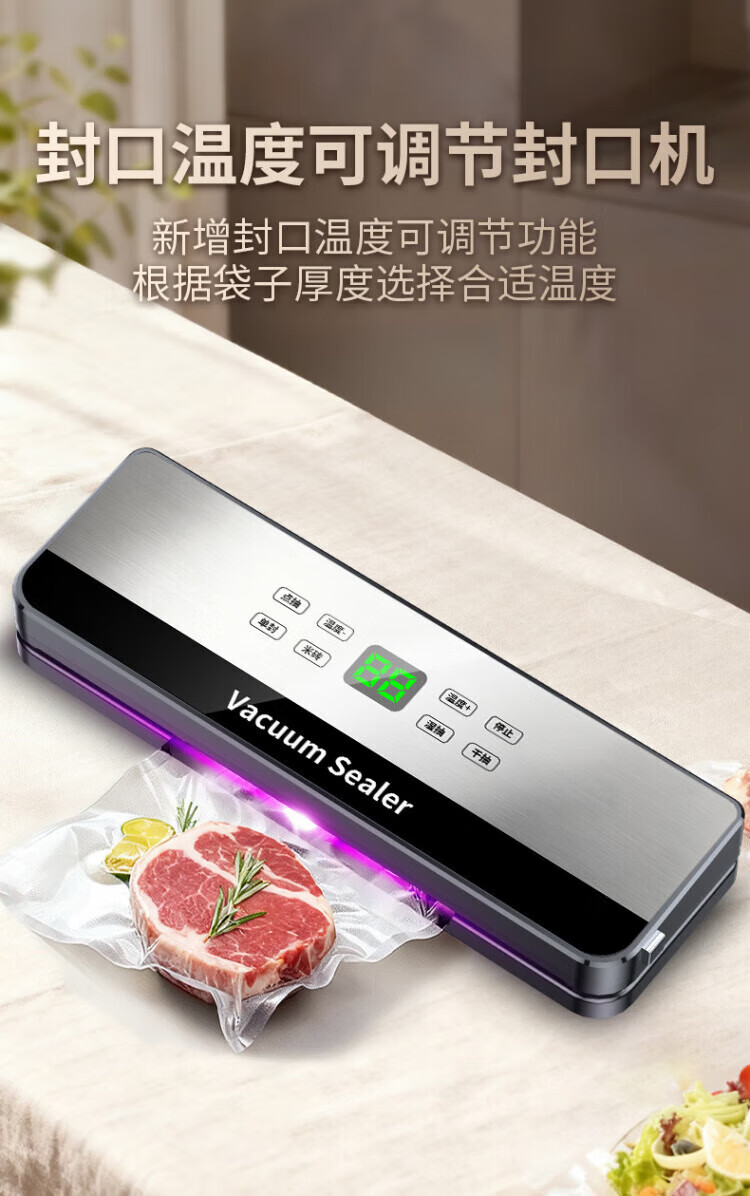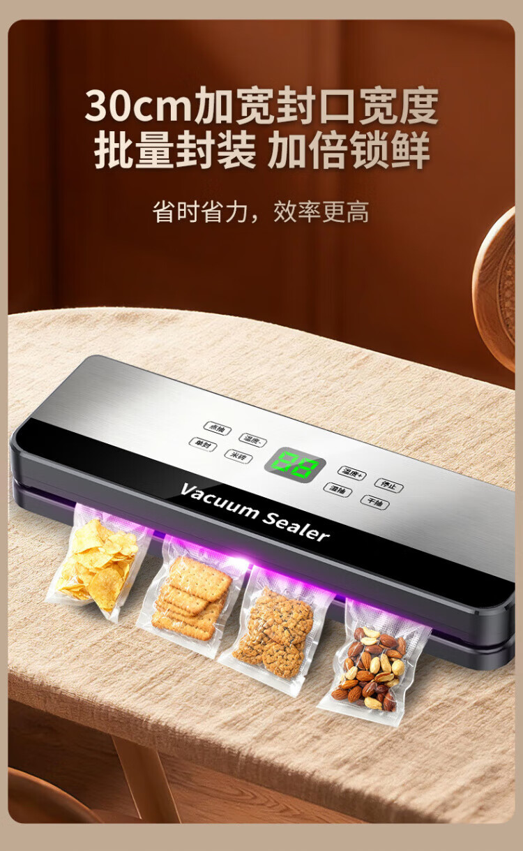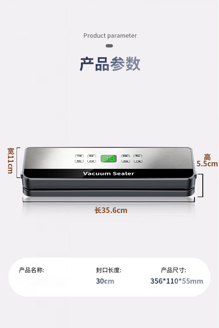 SSIIXX Japanese brand vacuum machine food packaging machine household wet and dry plastic sealing commercial small vacuum sealing machine deep space gray + 50 vacuum bags 30m