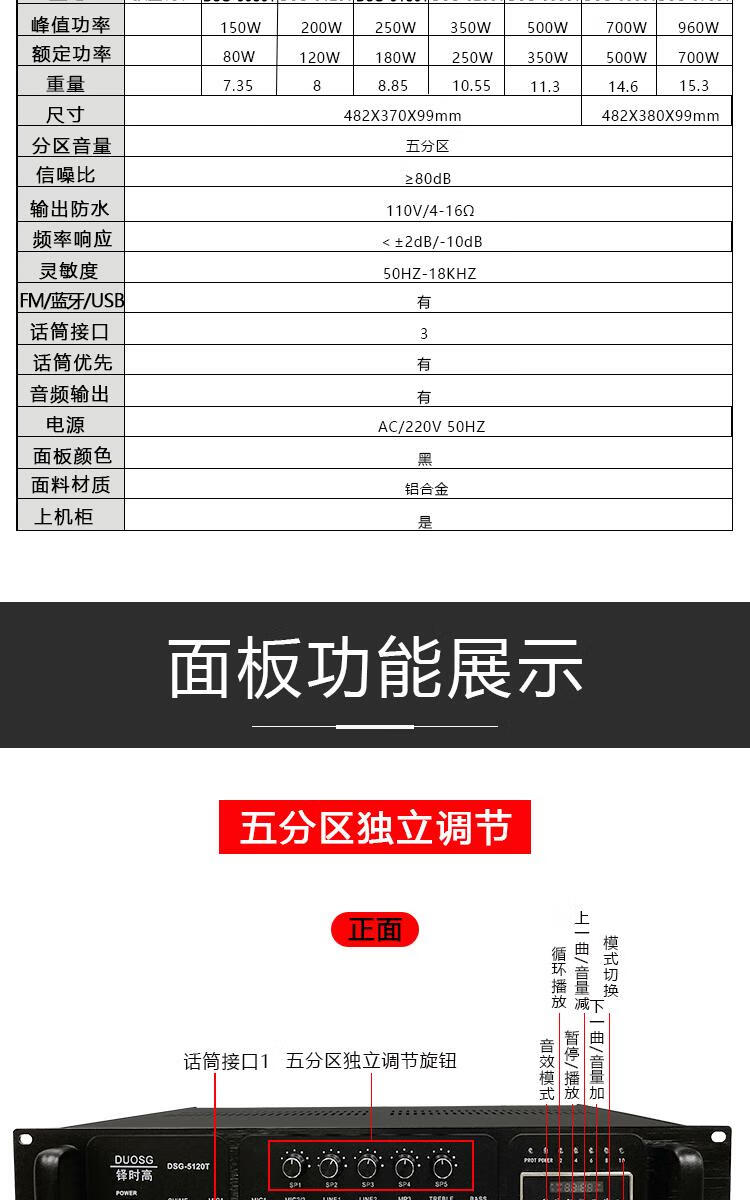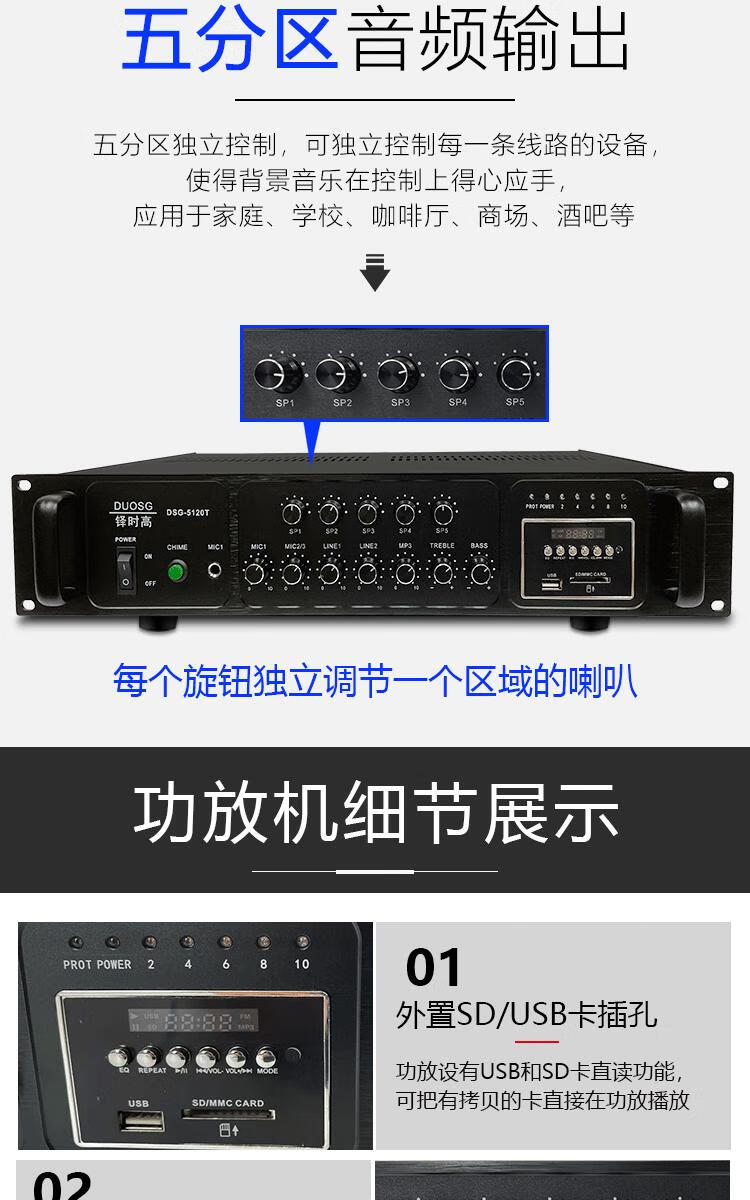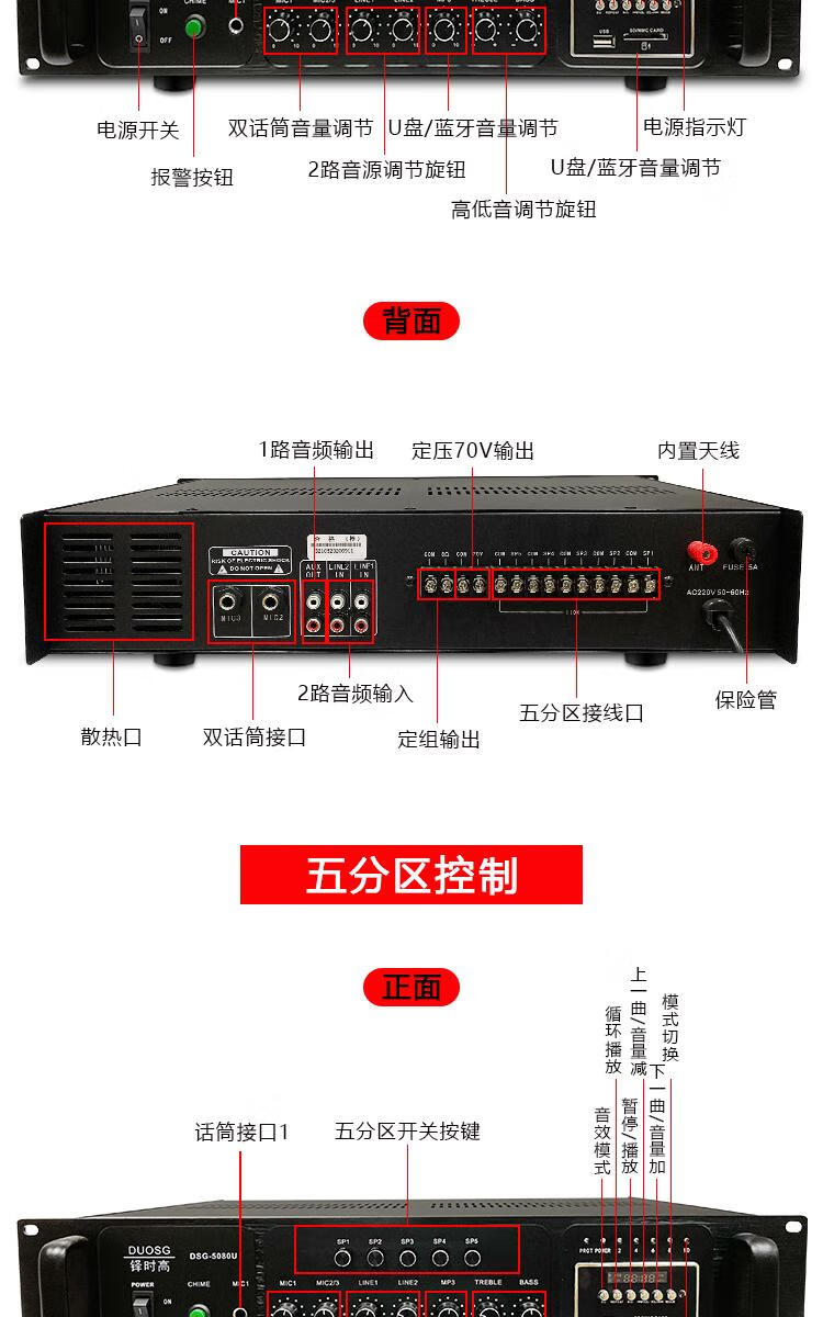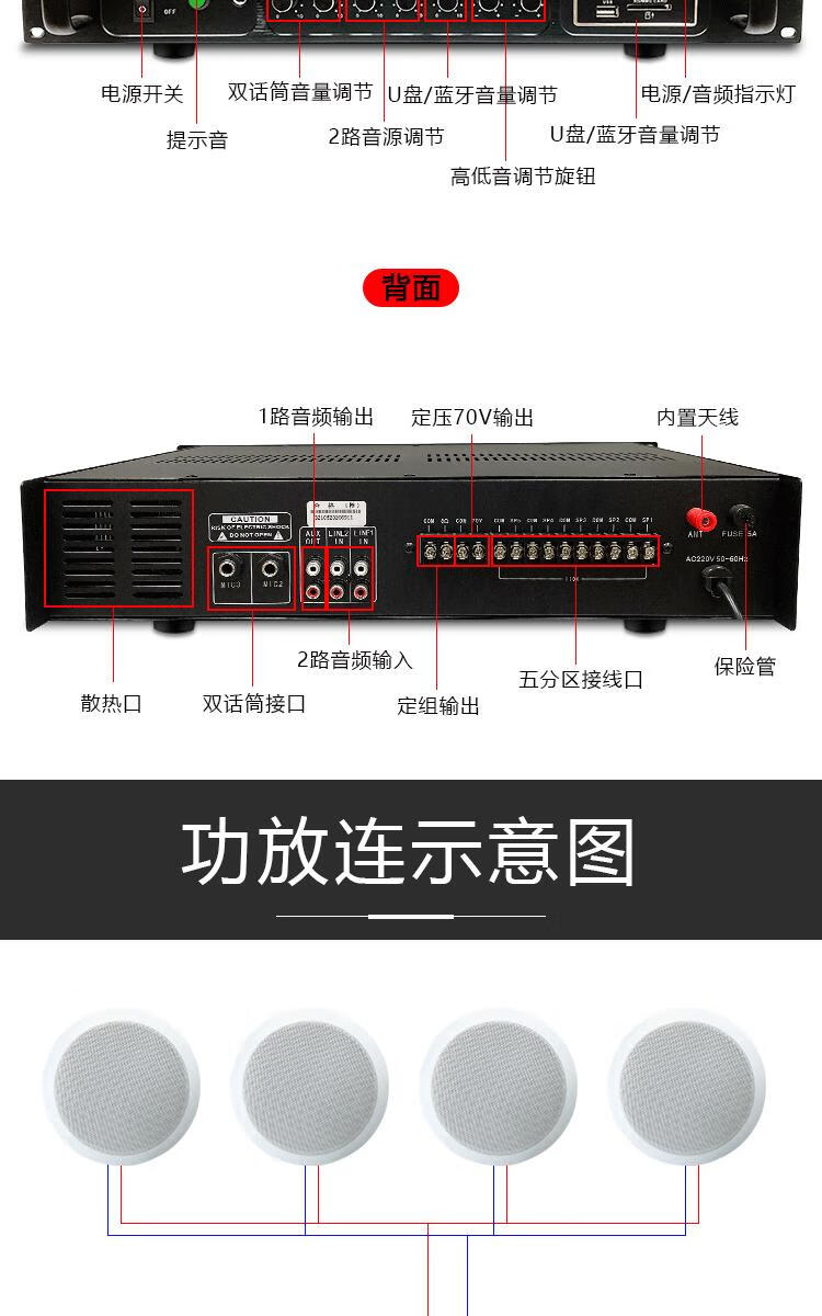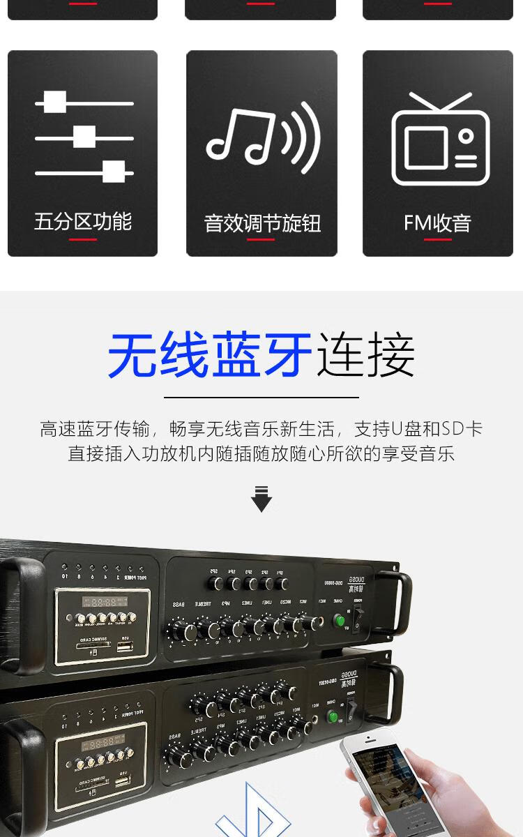 Bluetooth engineering grade high-power 500W zoned constant voltage power amplifier school community public broadcast amplifier silver upgraded version 3000W+8 zones independent tuning+Bluetooth+15