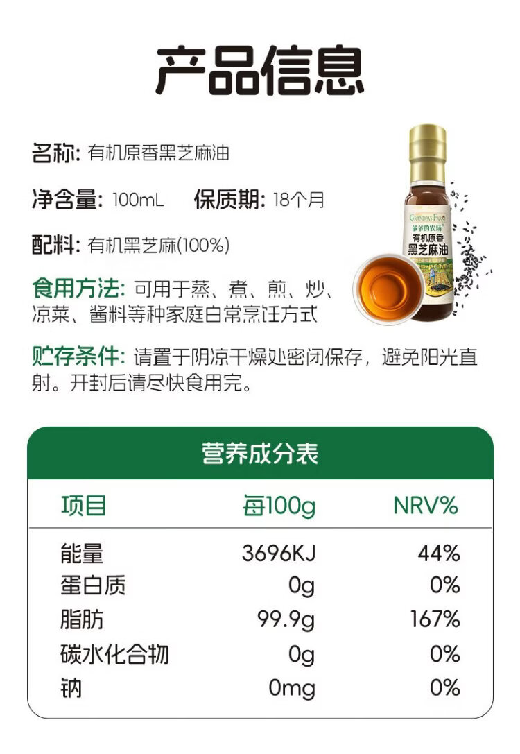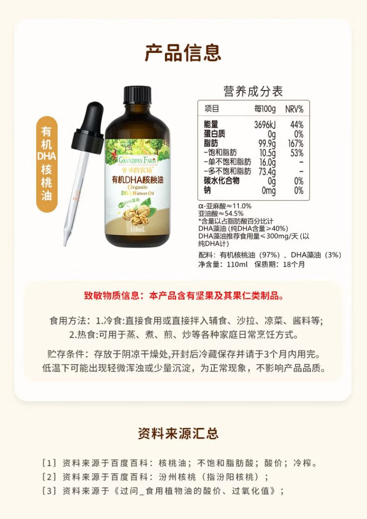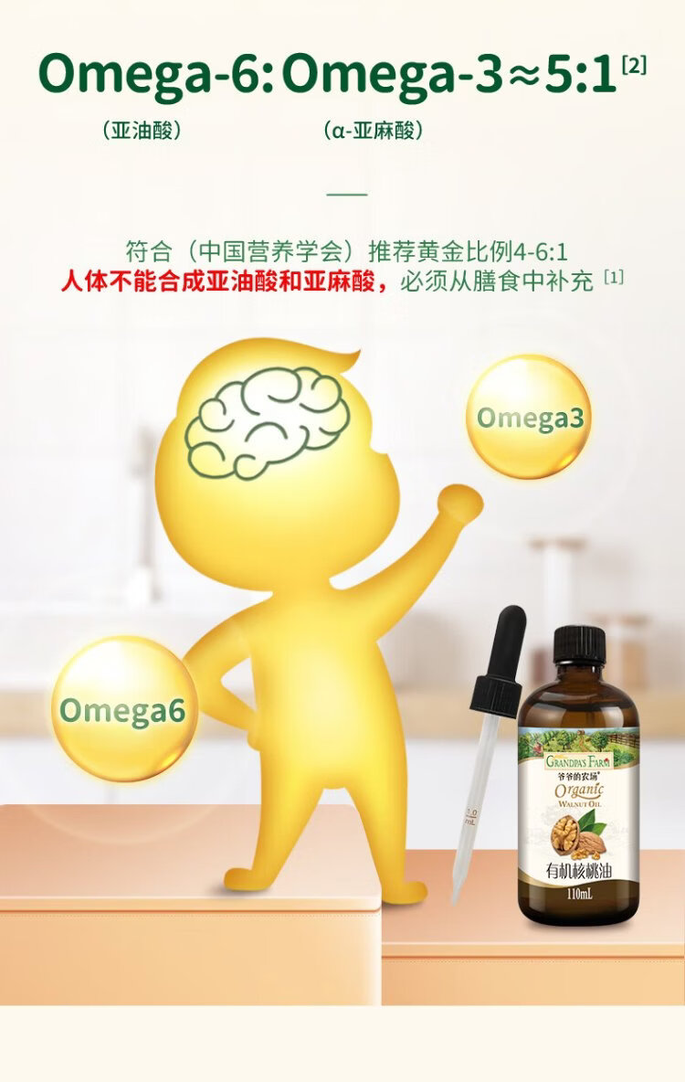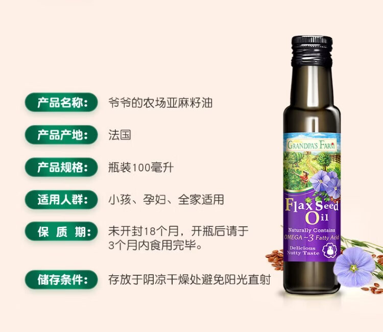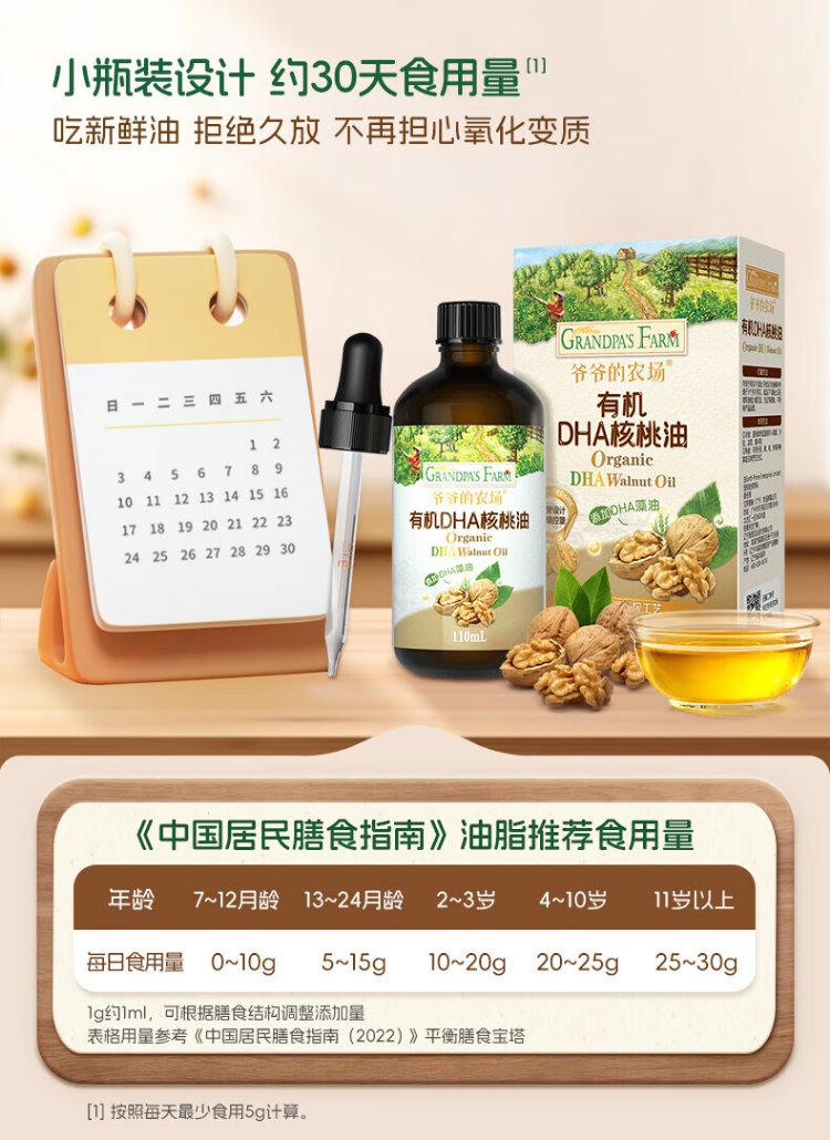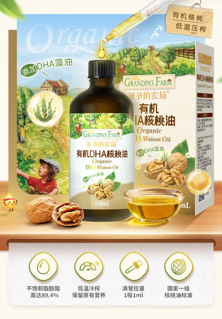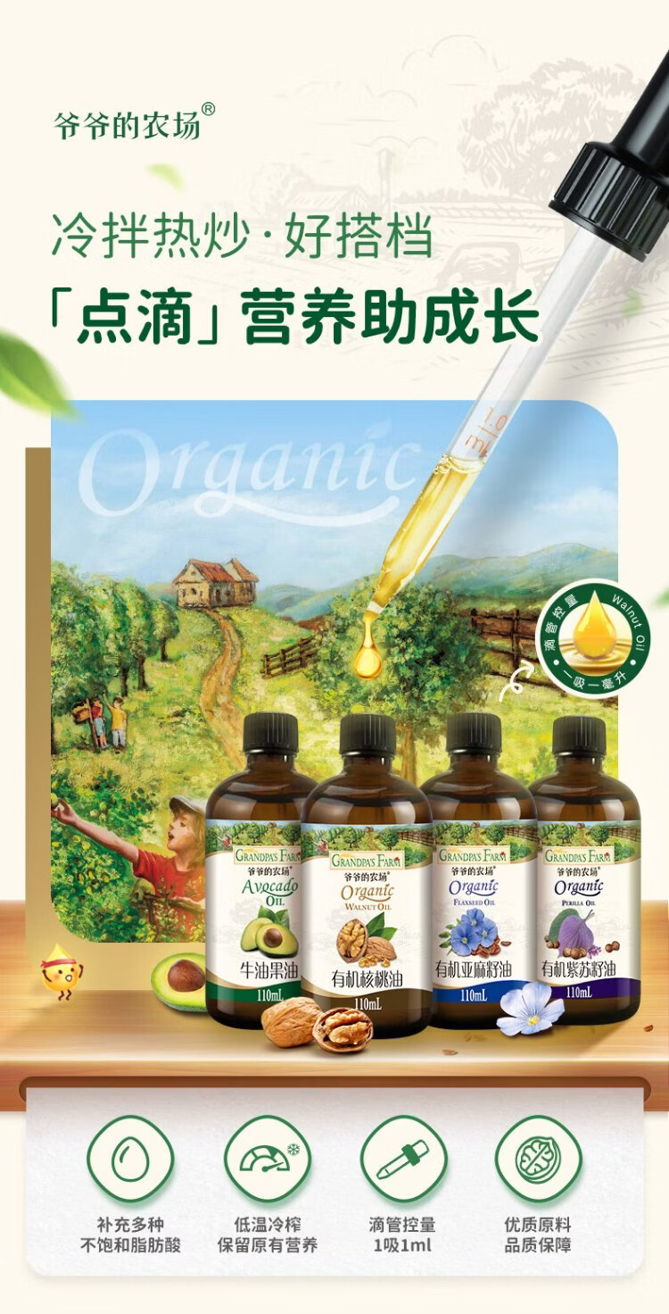 Grandpa's Farm Children's Food Supplementary Oil DHA Nutrient Added Dropper Children's Cold Pressed Hot Stir-fried Imported Baby Edible Oil Dropper Volume Control Organic Flaxseed Oil 110ml