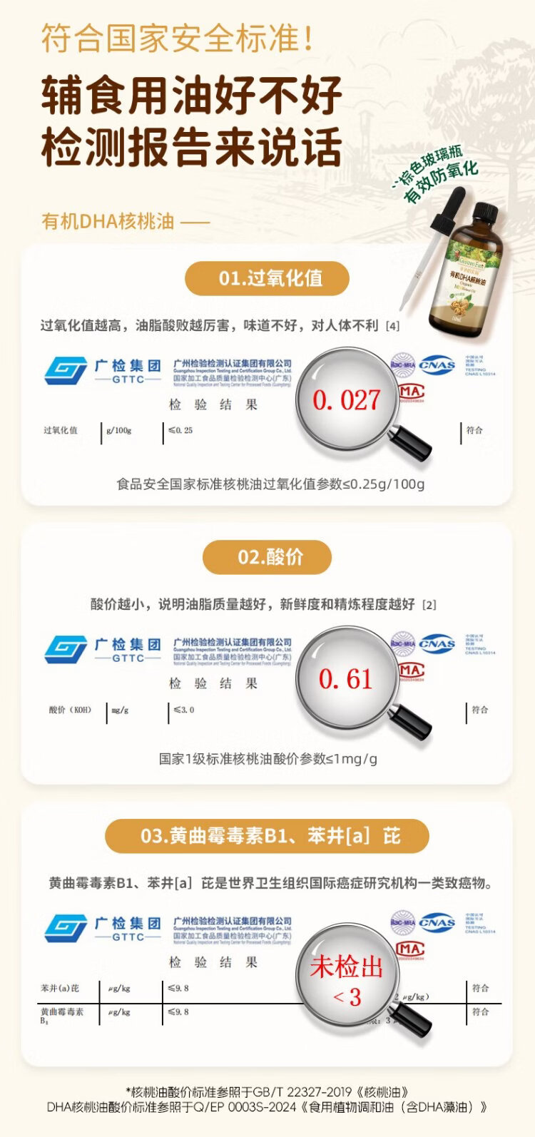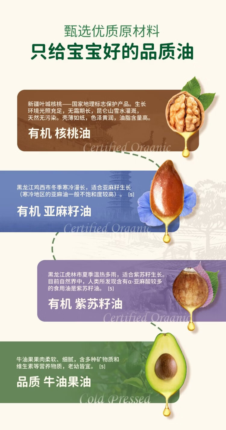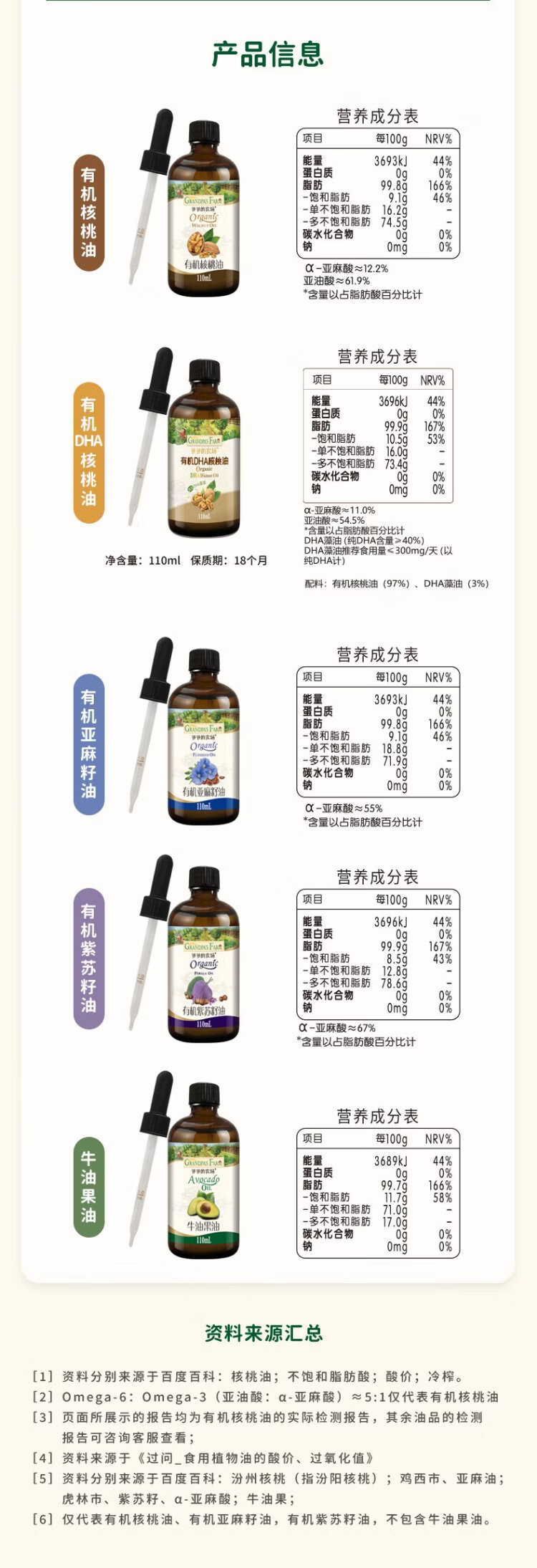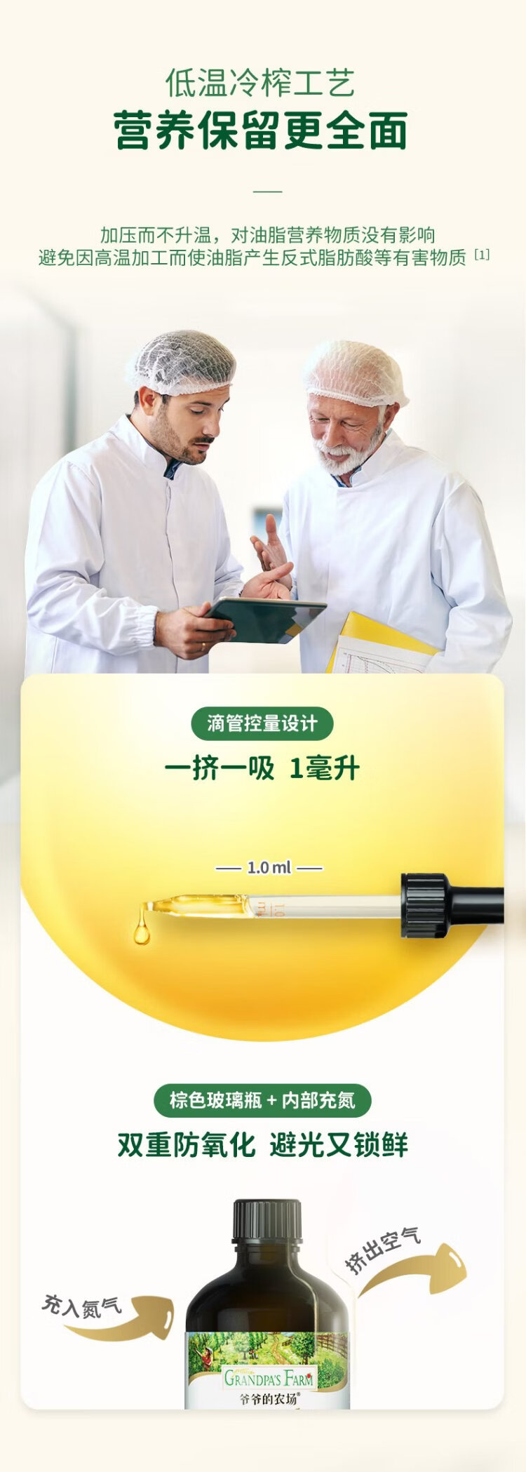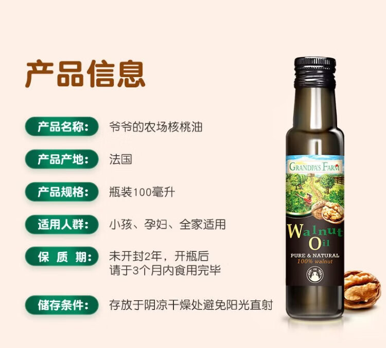 Grandpa's Farm Children's Food Supplementary Oil DHA Nutrient Added Dropper Children's Cold Pressed Hot Stir-fried Imported Baby Edible Oil Dropper Volume Control Organic Flaxseed Oil 110ml