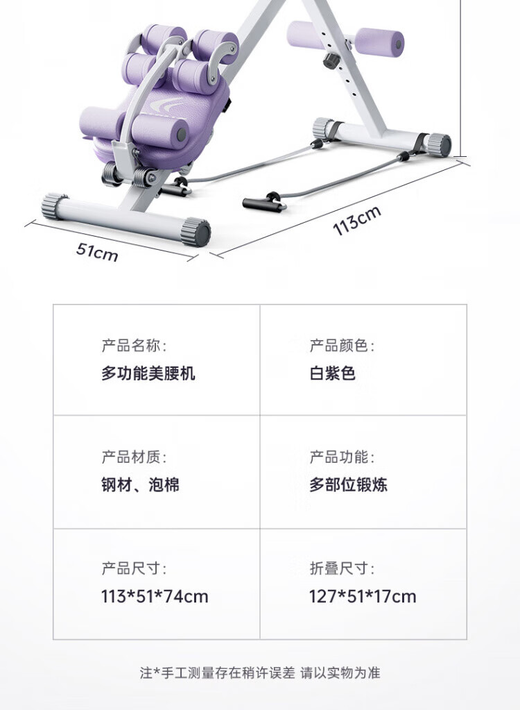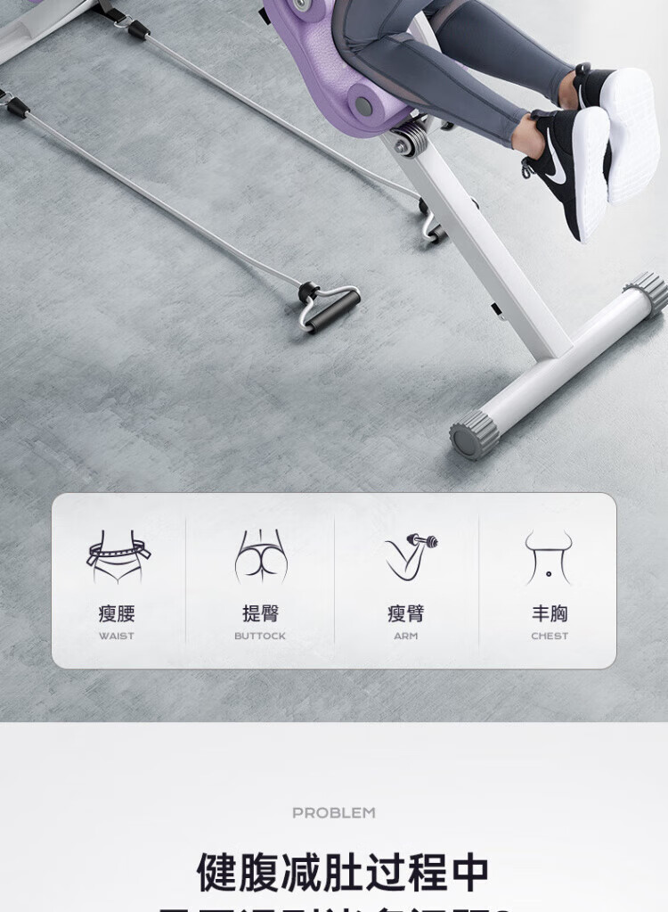 Shantou Lincun abdominal curling machine, abdominal muscle fitness equipment, abdominal fitness device, lazy abdominal exercise, slim belly artifact, home female, purple and white, fitness two-in-one