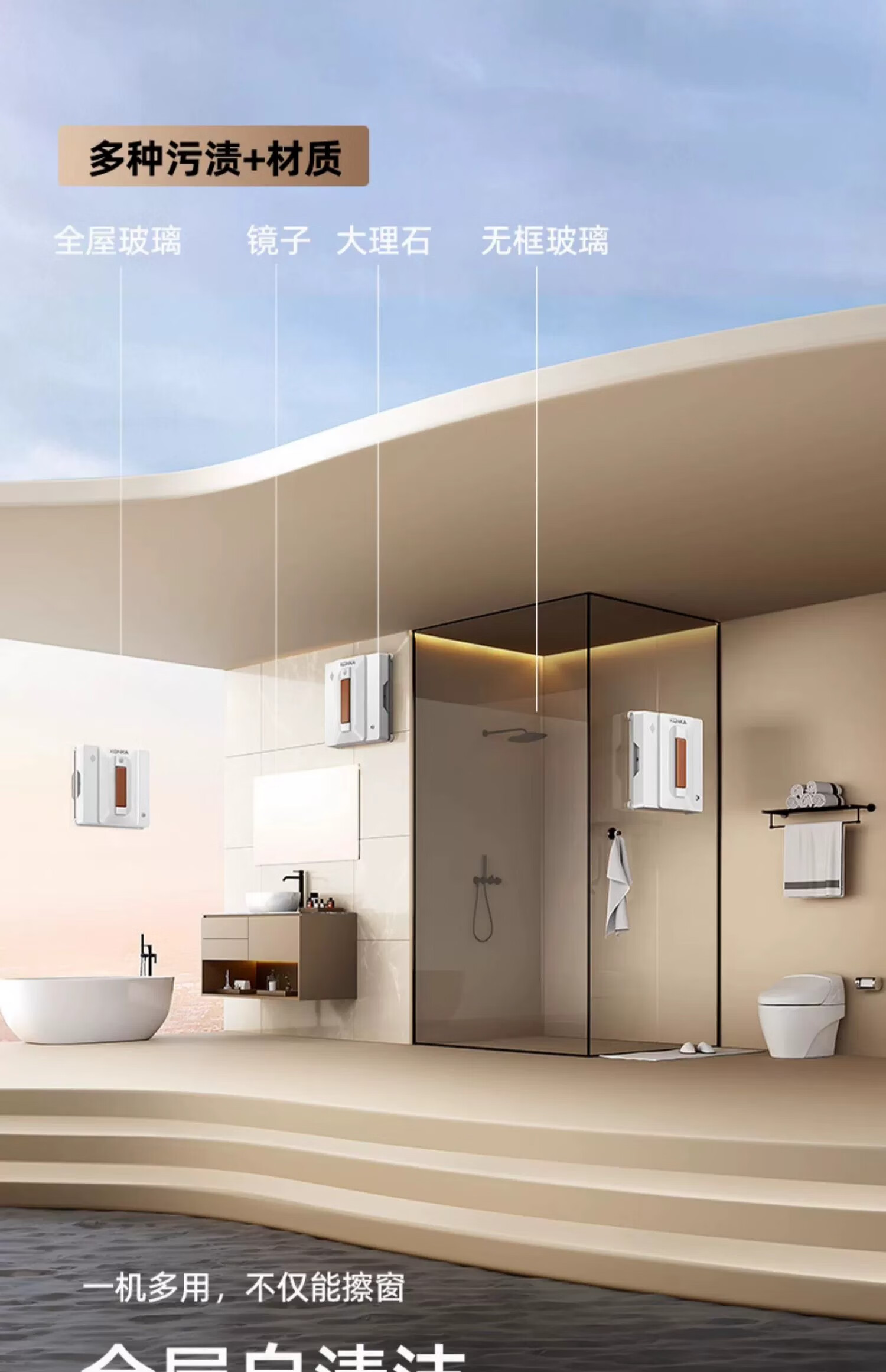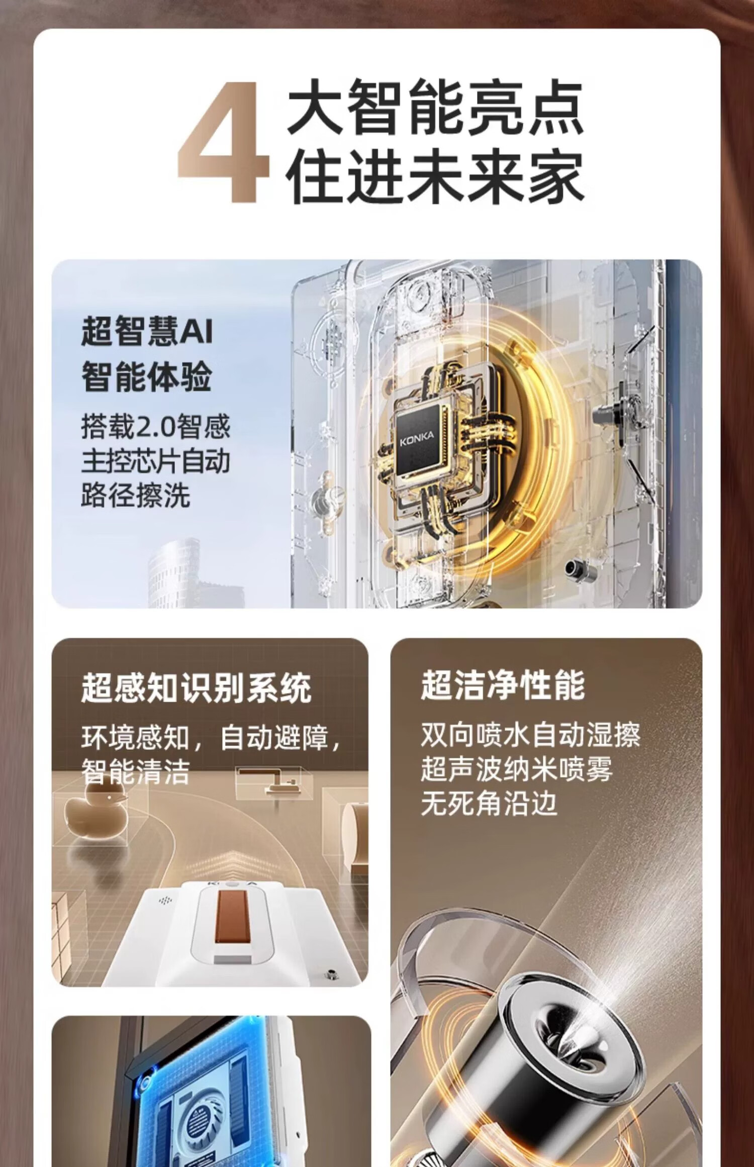 KONKA window cleaning robot fully automatic home intelligent electric high-rise window exterior double-sided glass cleaning and window washing artifact flagship automatic water spray APP smart model AI automatic route planning