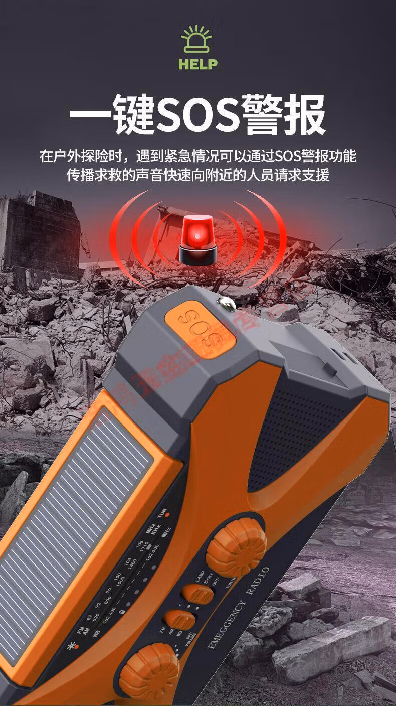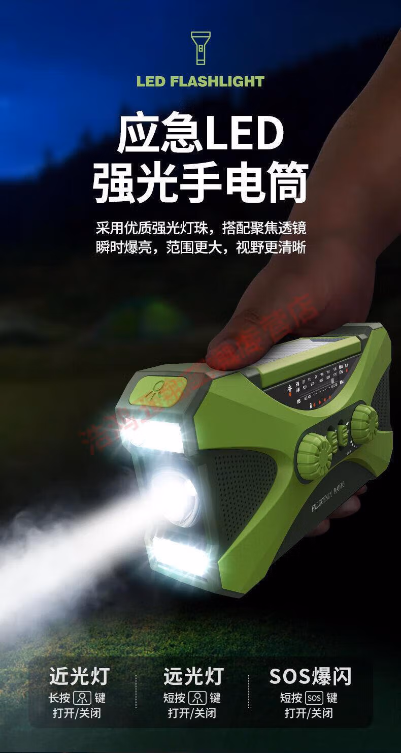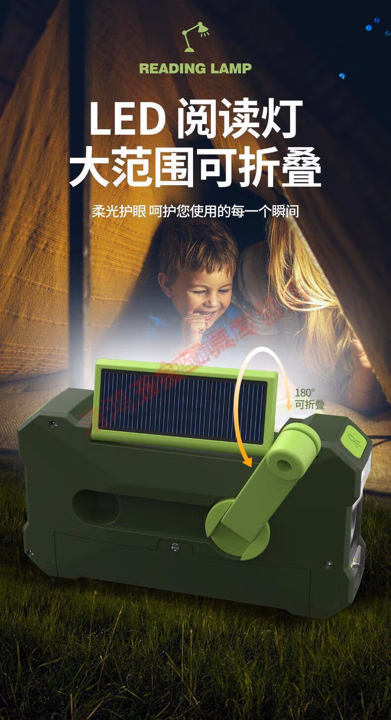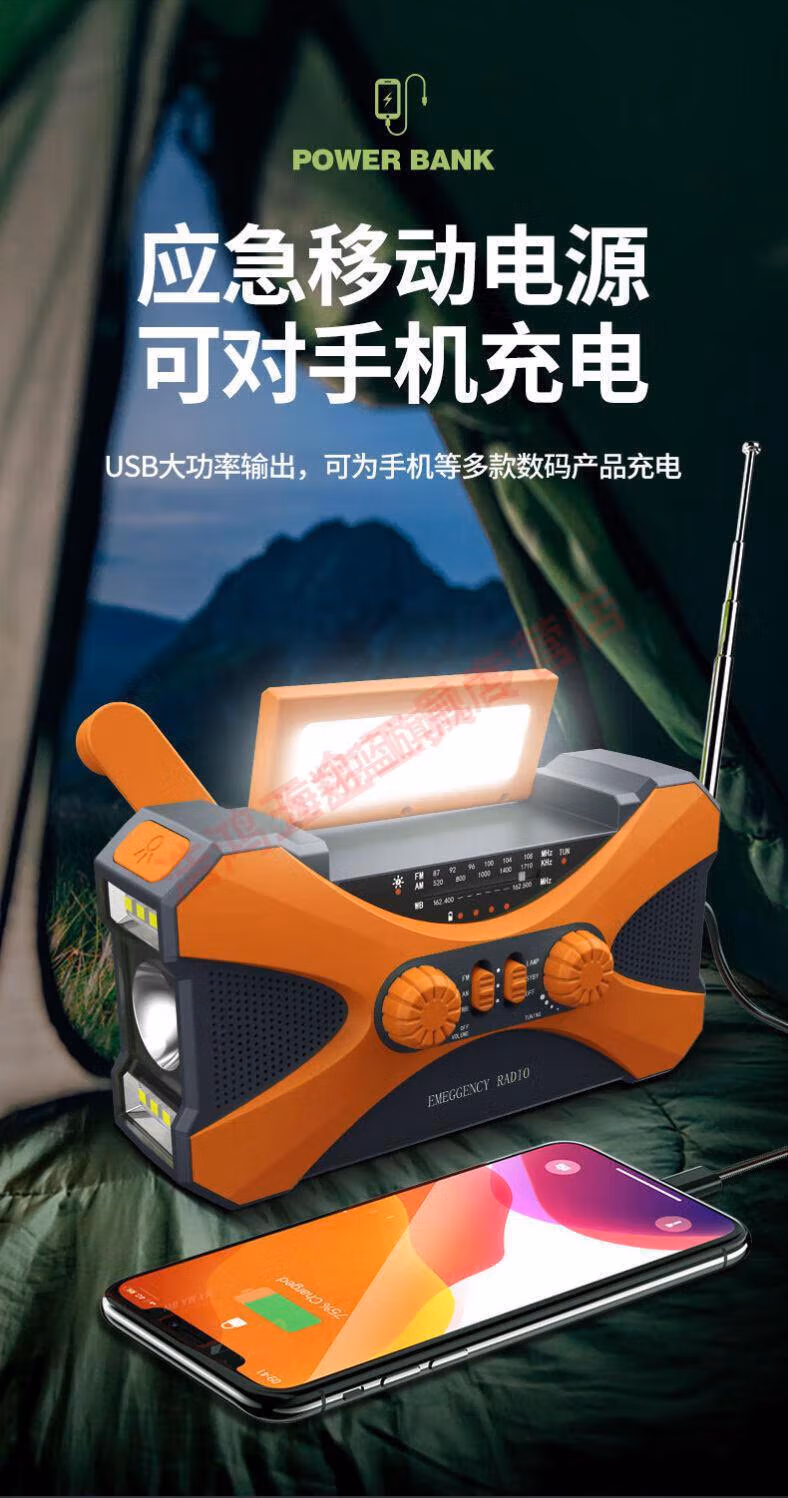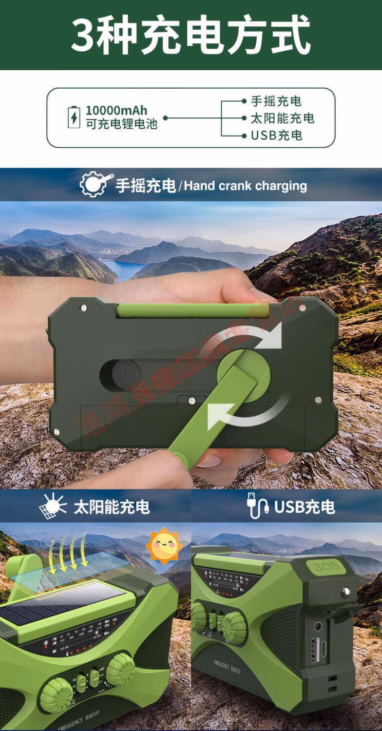 Wen Shiou hand-operated generator 10000ma emergency household generator radio multi-function solar charging orange military green 10000 mAh