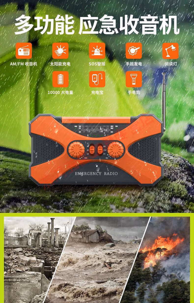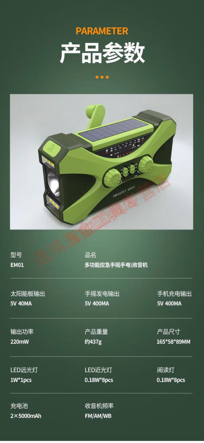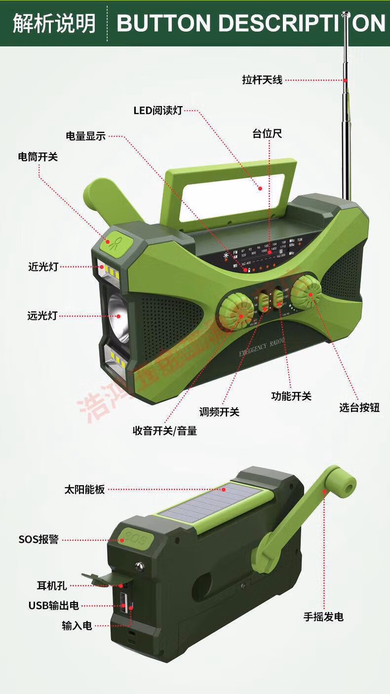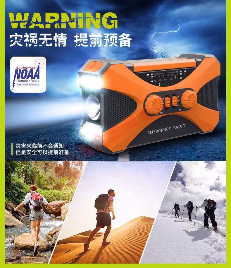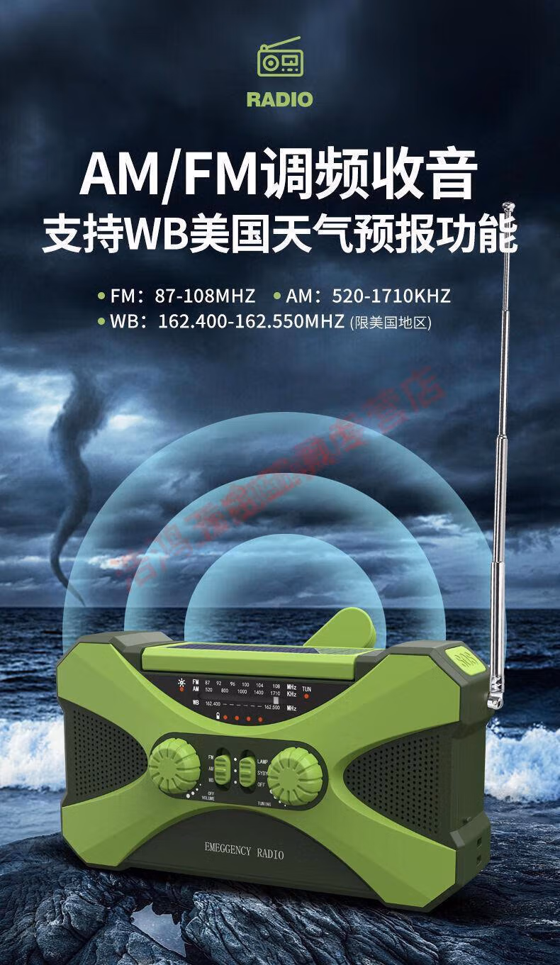 Wen Shiou hand-operated generator 10000ma emergency household generator radio multi-function solar charging orange military green 10000 mAh