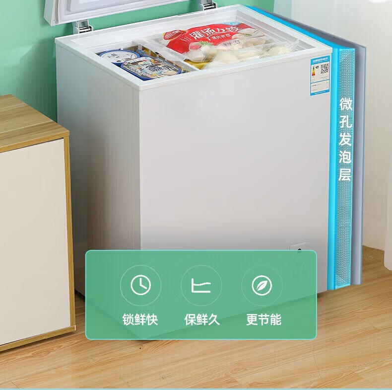 Haijia Freezer Home Freezer Small Frost-free Air-cooled First-Class Energy Efficiency Freezer Full Freezer Home Classic Selection 128 Upgraded Frost Reducing Energy Saving Antibacterial/Single Temperature 58L 58L