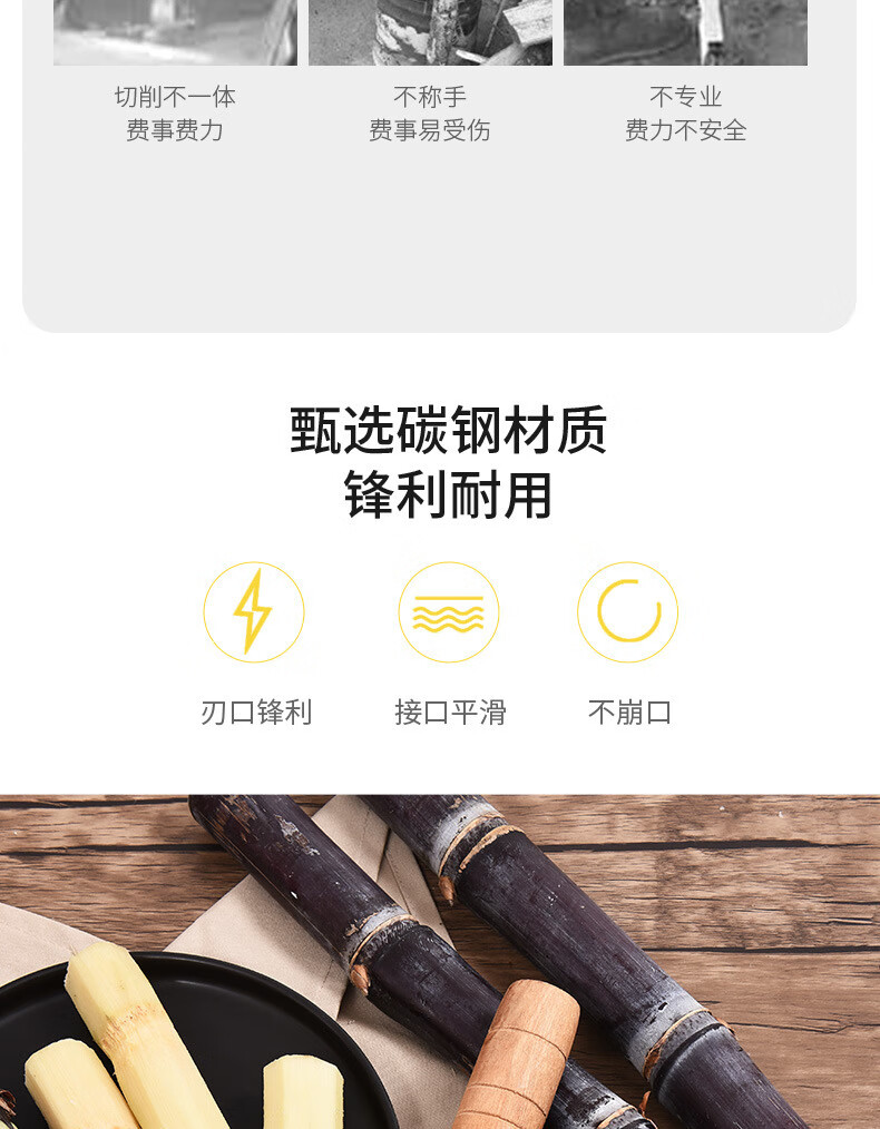 Zhang Xiaoquan old-fashioned sugar cane peeling knife thickened commercial sugar cane peeling knife stainless steel right left hand peeling knife pineapple knife carbon steel_right hand extra large sugar cane knife