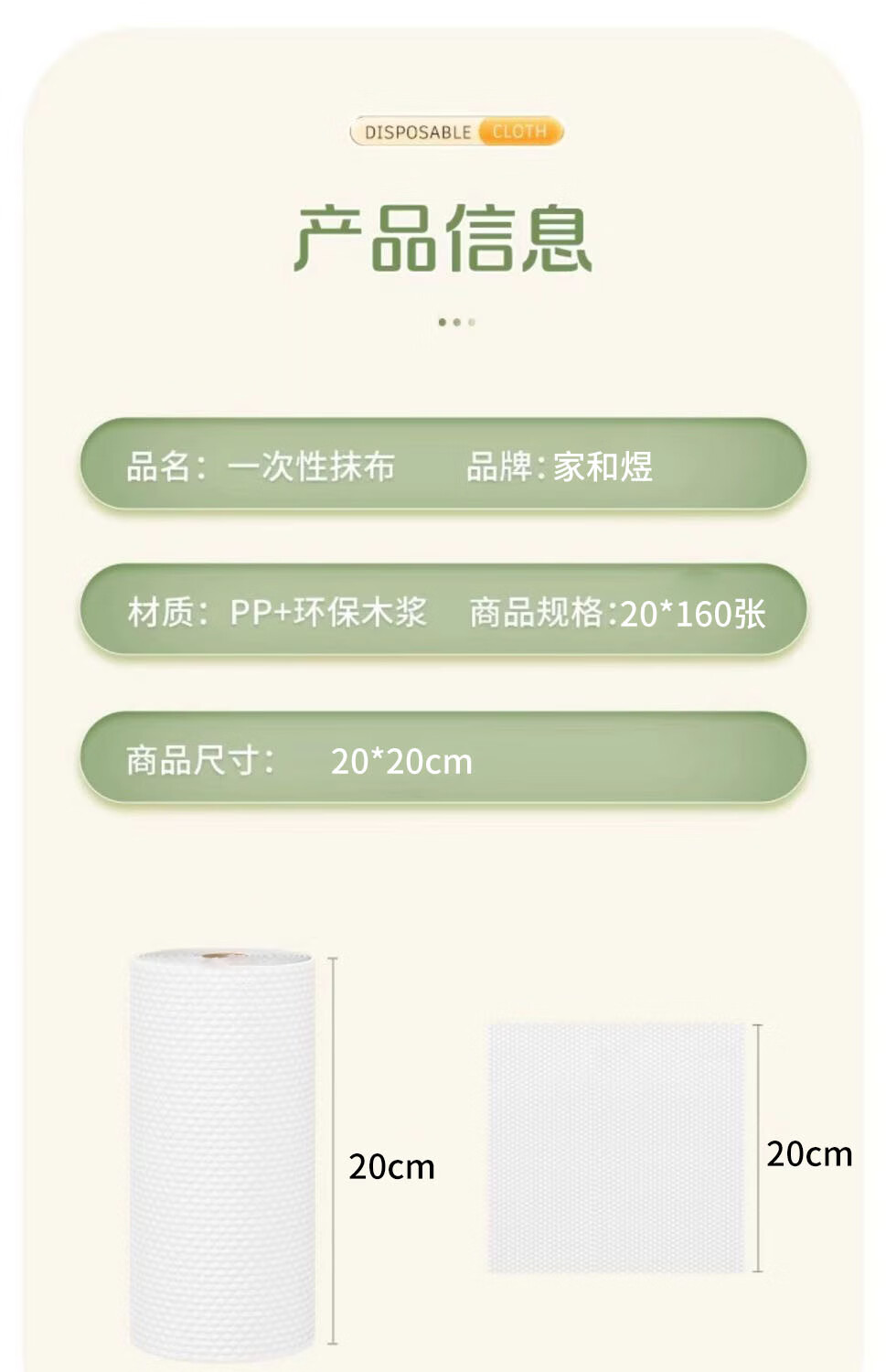 Kitchen rag, soft towel, dry and wet dual-use oil-absorbing and water-absorbing disposable rag, roll-type lazy rag, thickened and enlarged, 20*20cm, 1 layer, 20 sheets*1 roll