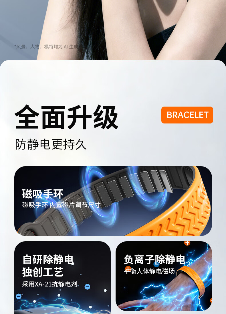 Anti-static Static Bracelet Car/Vehicle Anti-static Winter Wireless Human Body Static Removal, Elimination and Release Anti-static Artifact for Men and Women Magnetic Lin Textured Static Bracelet - Cool Black