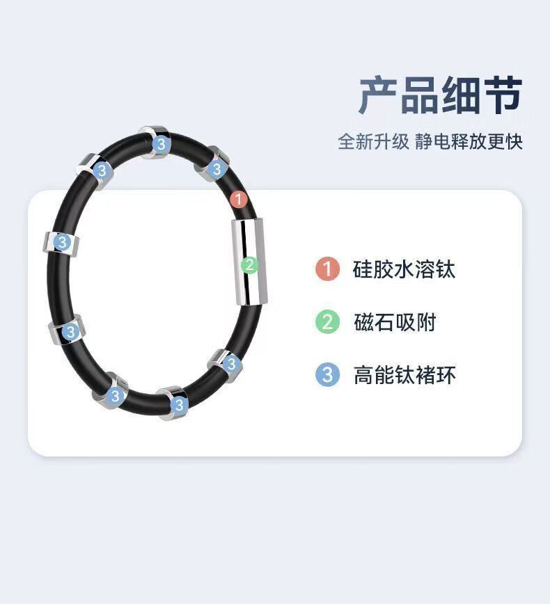 Anti-static bracelet / human body autumn and winter static eliminator workshop car-mounted static negative ion removal electrostatic bracelet enhanced version upgraded diamond style supreme black length adjustable / unisex