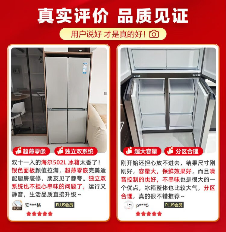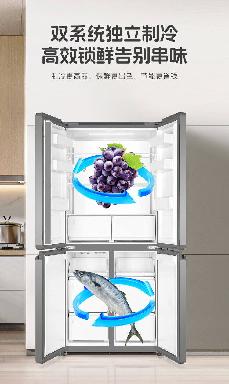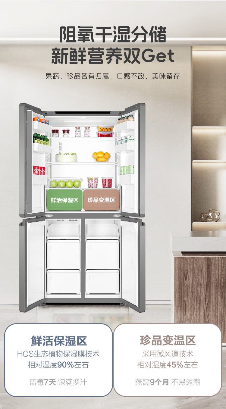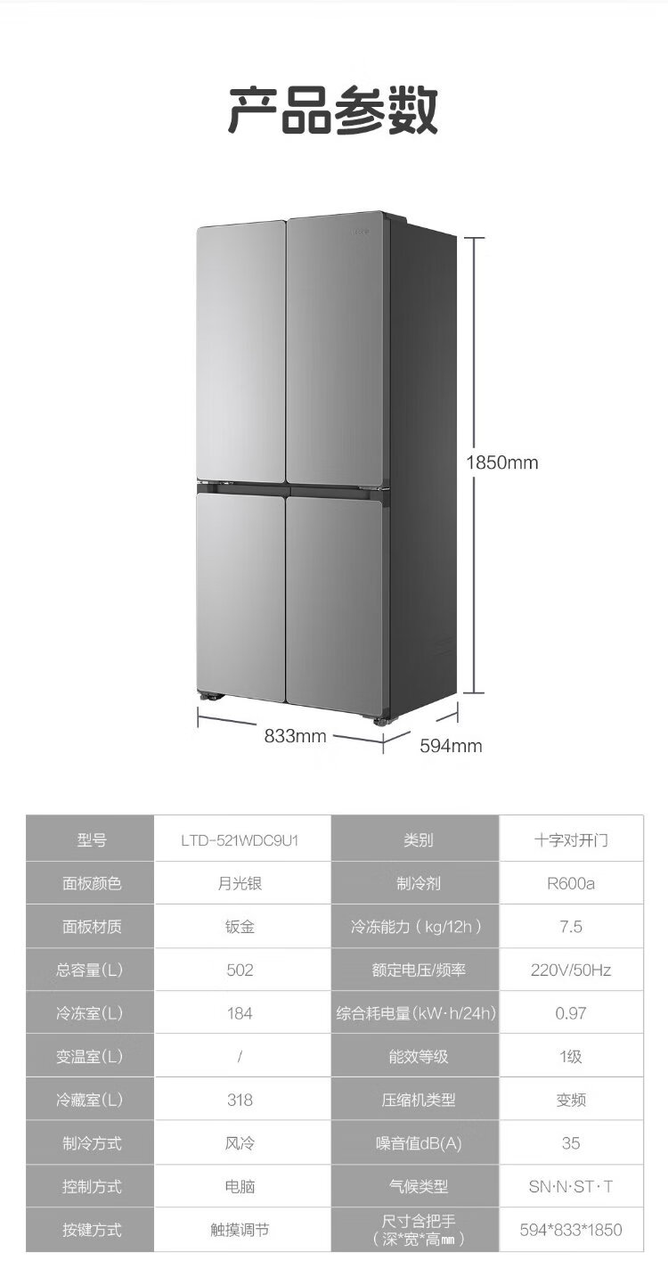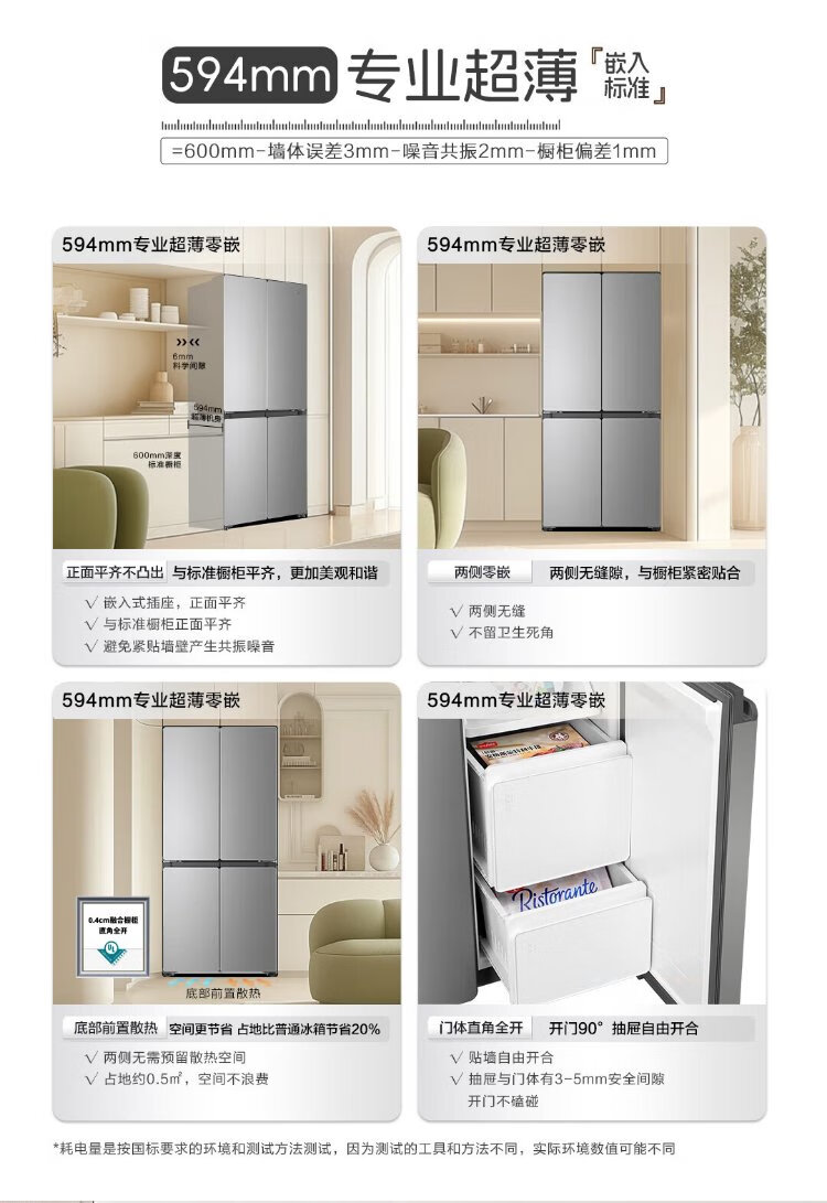 Haier Refrigerator produces 521 Commander dual-system dual-cycle ultra-thin zero-embedded 60cm household 502L four-open cross-door first-class dual-frequency EPP ultra-clean refrigerator with dual systems and no odor. 502L ultra-thin zero-embedded + full-area sterilization and purification + dual systems without odor