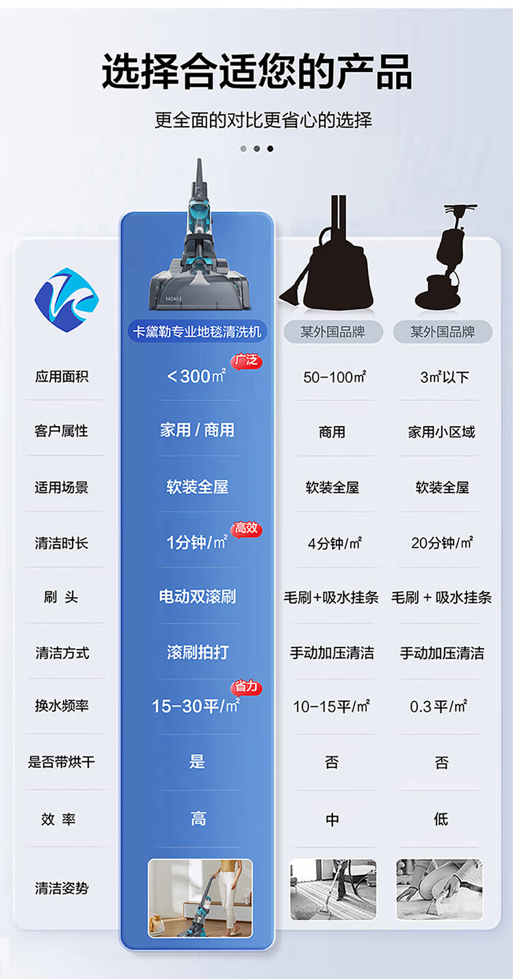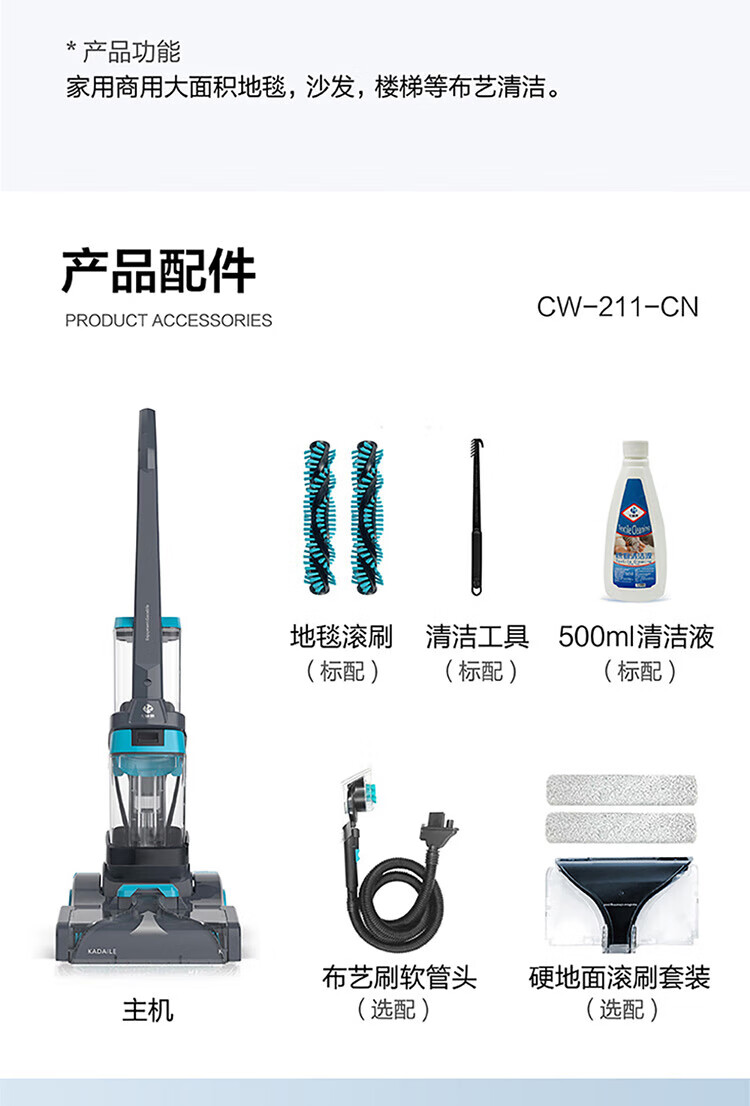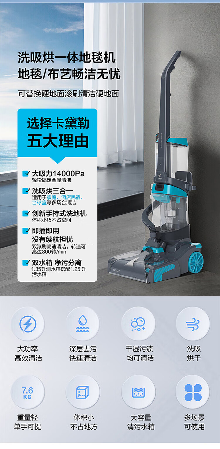 KADAILE Carpet Cleaning Floor Fabric Cleaning Machine Home Commercial Hotel B&B Billiard Room Three-in-One Drying and Cleaning Machine Coral Blue Standard Configuration CW-211-CN (Standard Configuration)