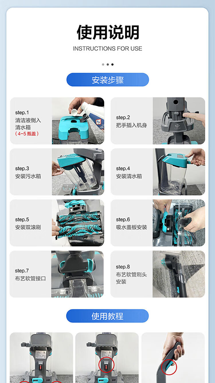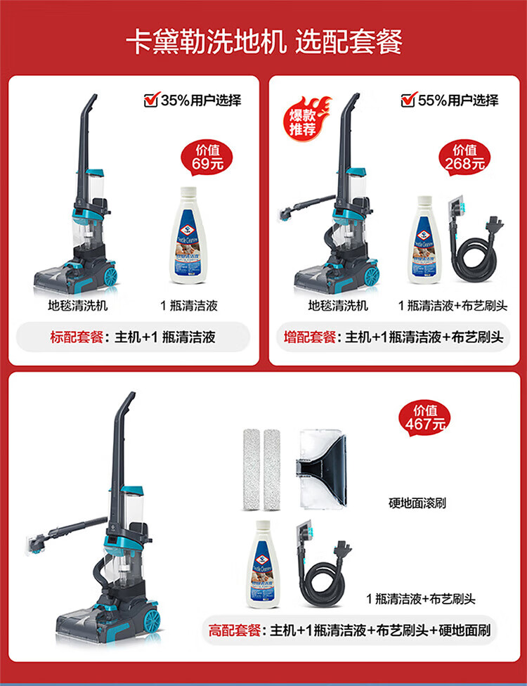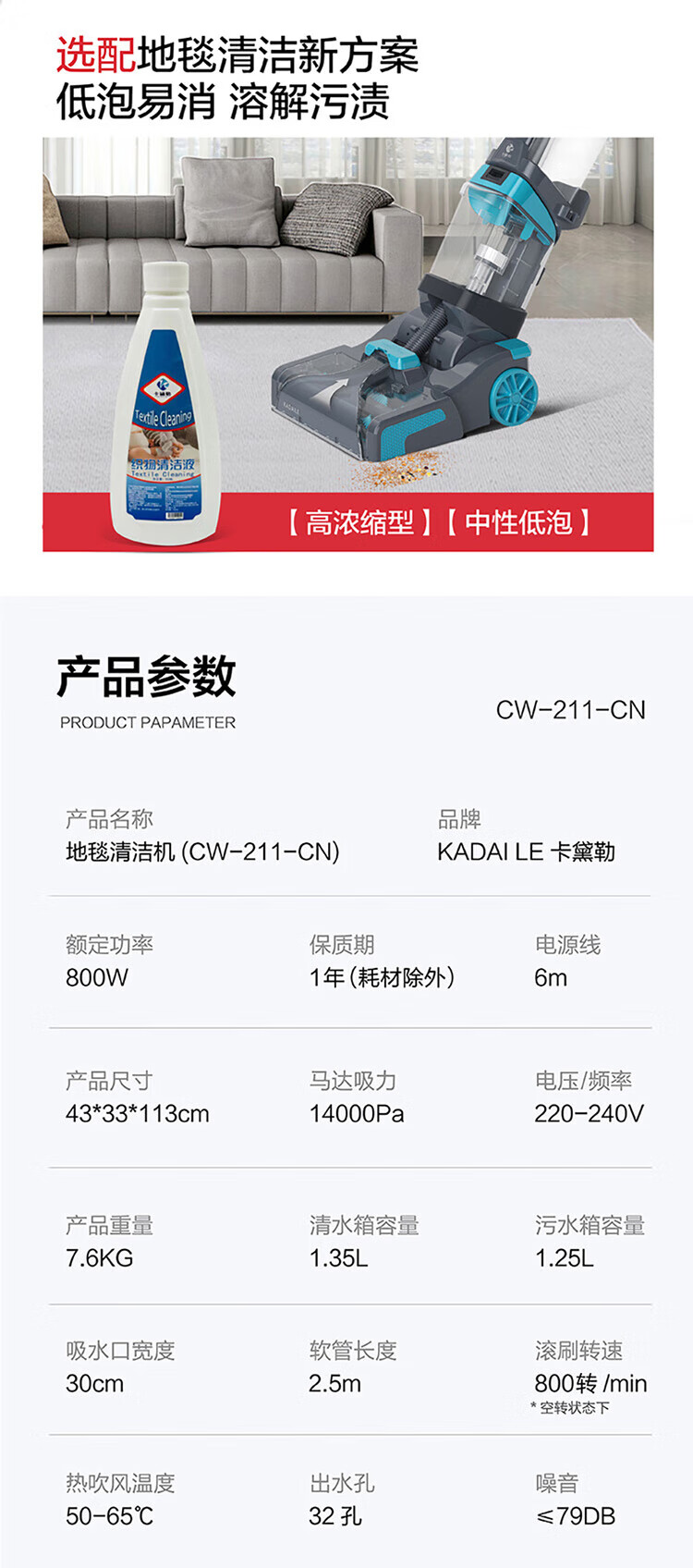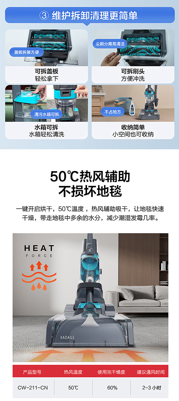 KADAILE Carpet Cleaning Floor Fabric Cleaning Machine Home Commercial Hotel B&B Billiard Room Three-in-One Drying and Cleaning Machine Coral Blue Standard Configuration CW-211-CN (Standard Configuration)
