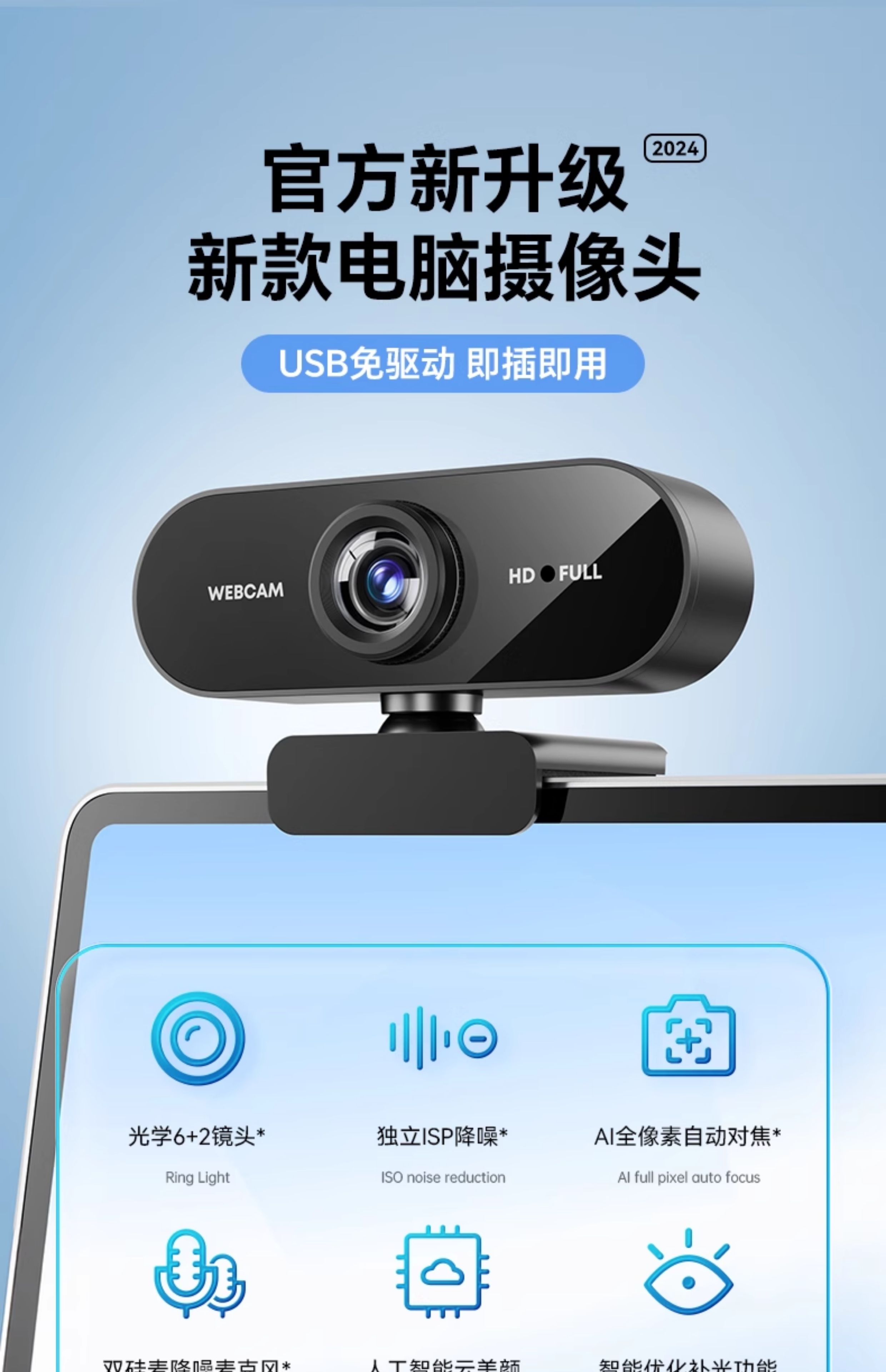 4K computer lens desktop home high-definition live broadcast conference online class dedicated all-in-one notebook USB driver-free online class recommended model 1080P 2 million high definition