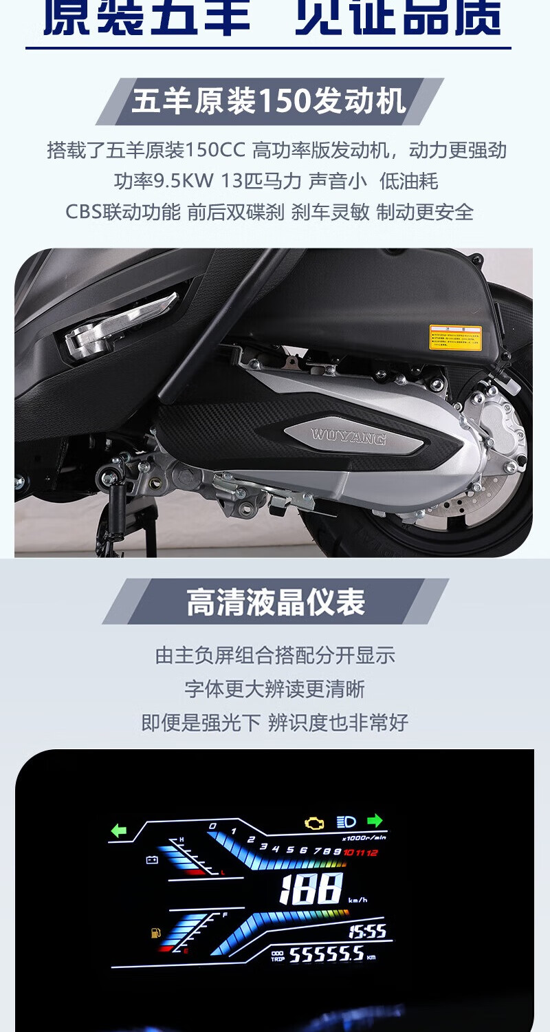 WUYANG Wuyang motorcycle scooter new model 150PGX power fuel EFI national standard men's and women's fuel-saving long-distance moonlight silver/ABS version