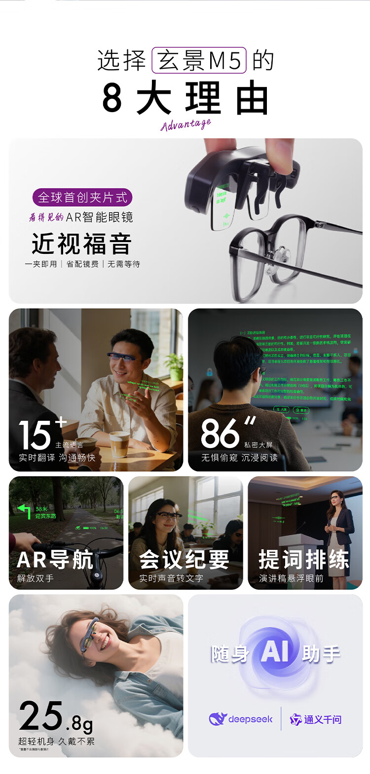 MLVISION Xuanjing M5 Smart AR Clip-on Glasses Real-time Translation Glasses AR Navigation AI Smart Glasses Conference Assistant Xiaoxuan AI Glasses Speech Teleprompter Teacher's Day Xuanjing M5 Smart Glasses