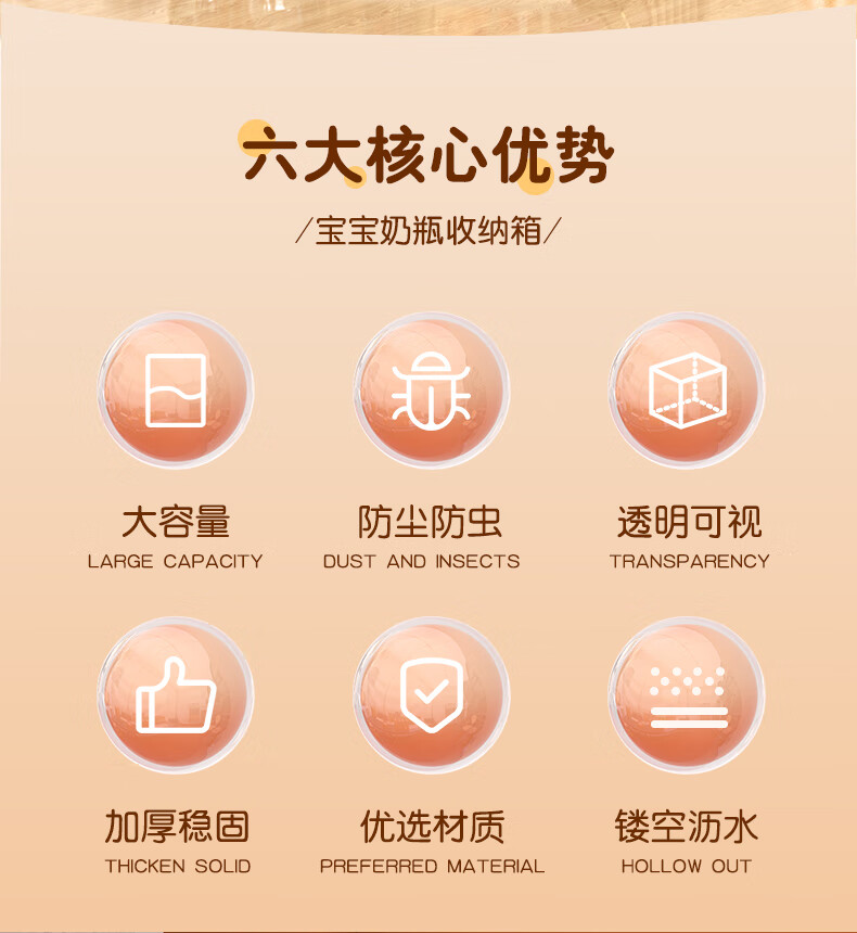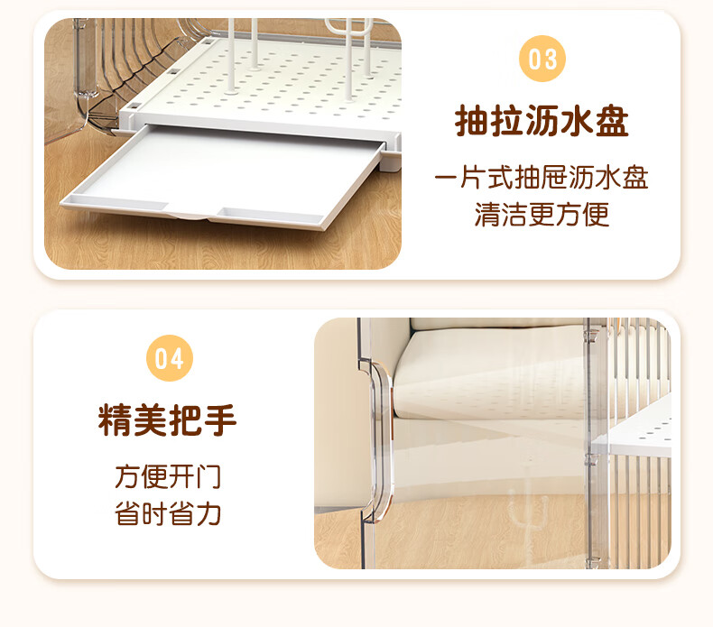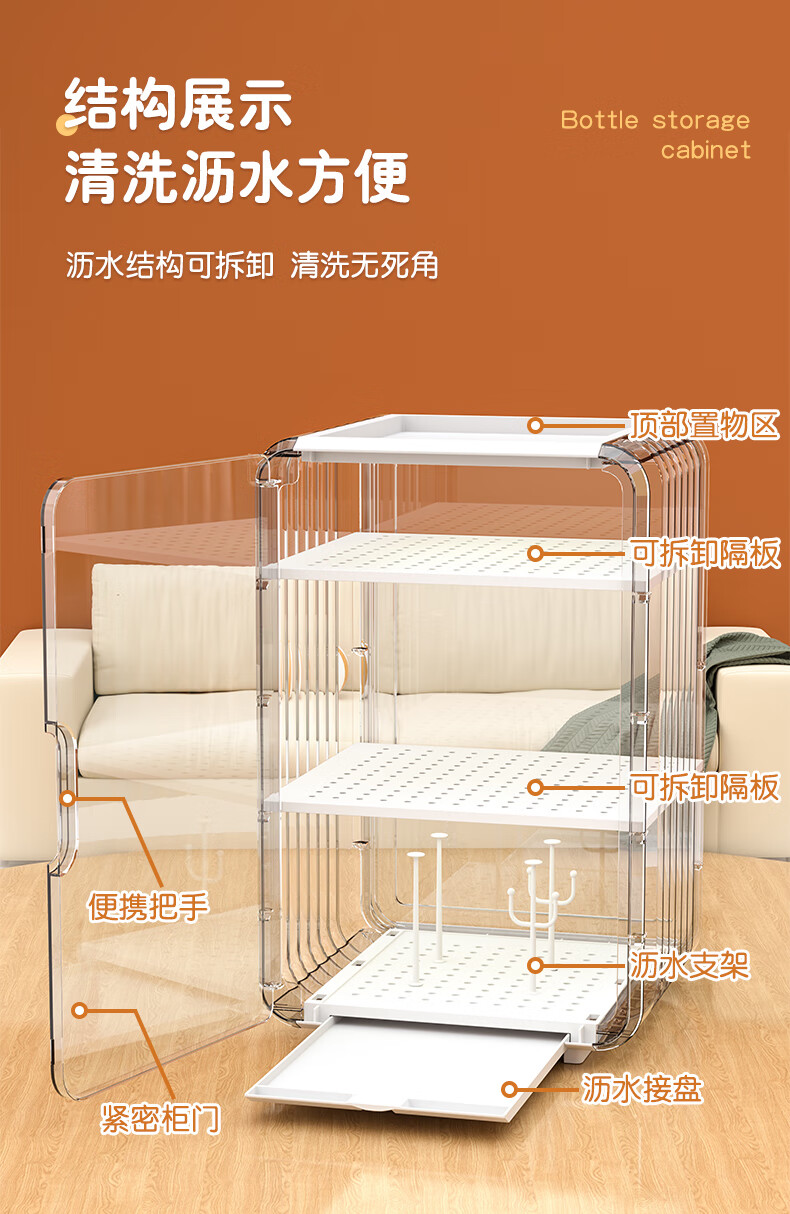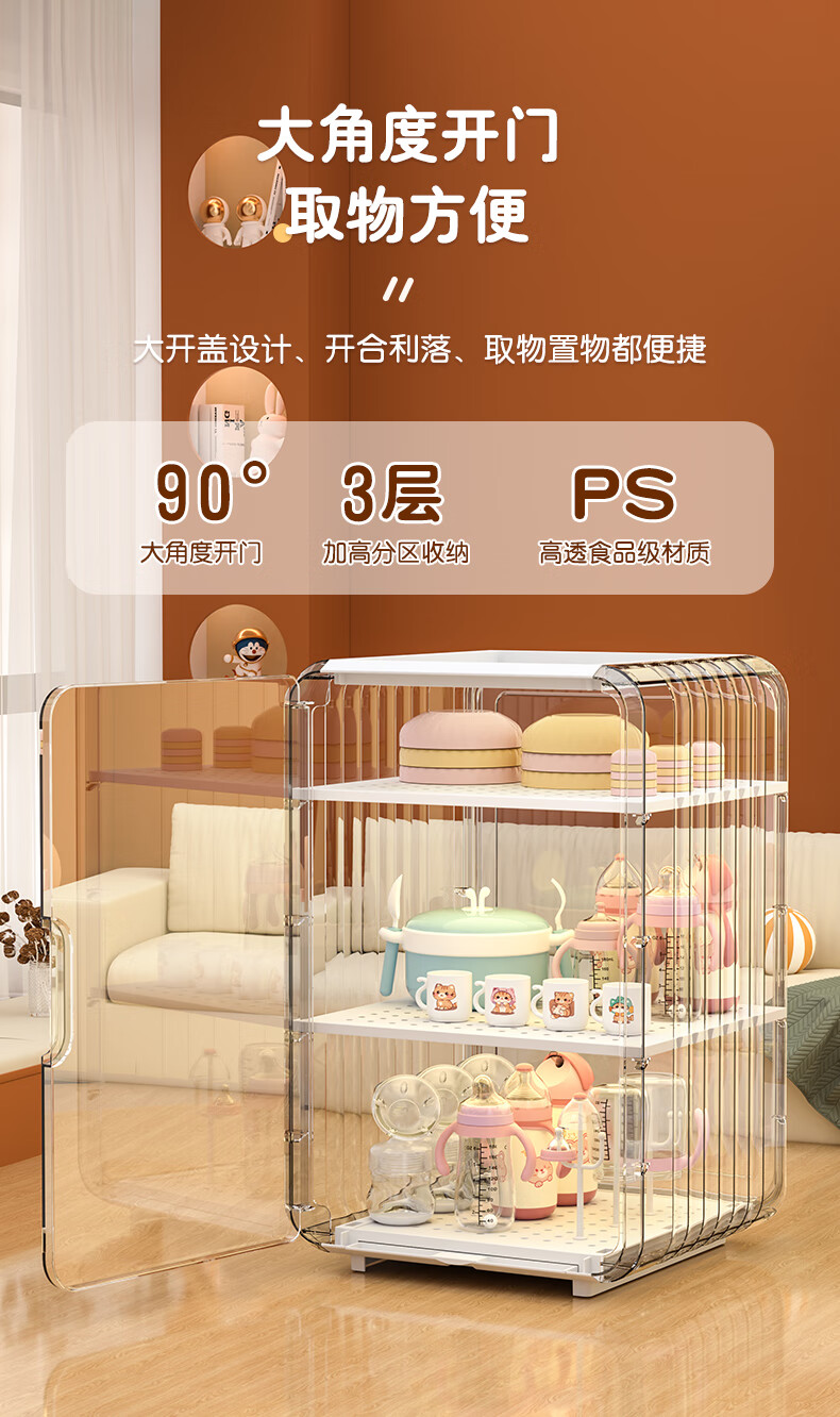 Midele milk bottle storage box, baby tableware storage box, non-staple food tools, breast pump storage, baby-specific dust-proof and drainable, high model, 3 layers, Aisha White, drain stand + drawer-type drain tray, free hook