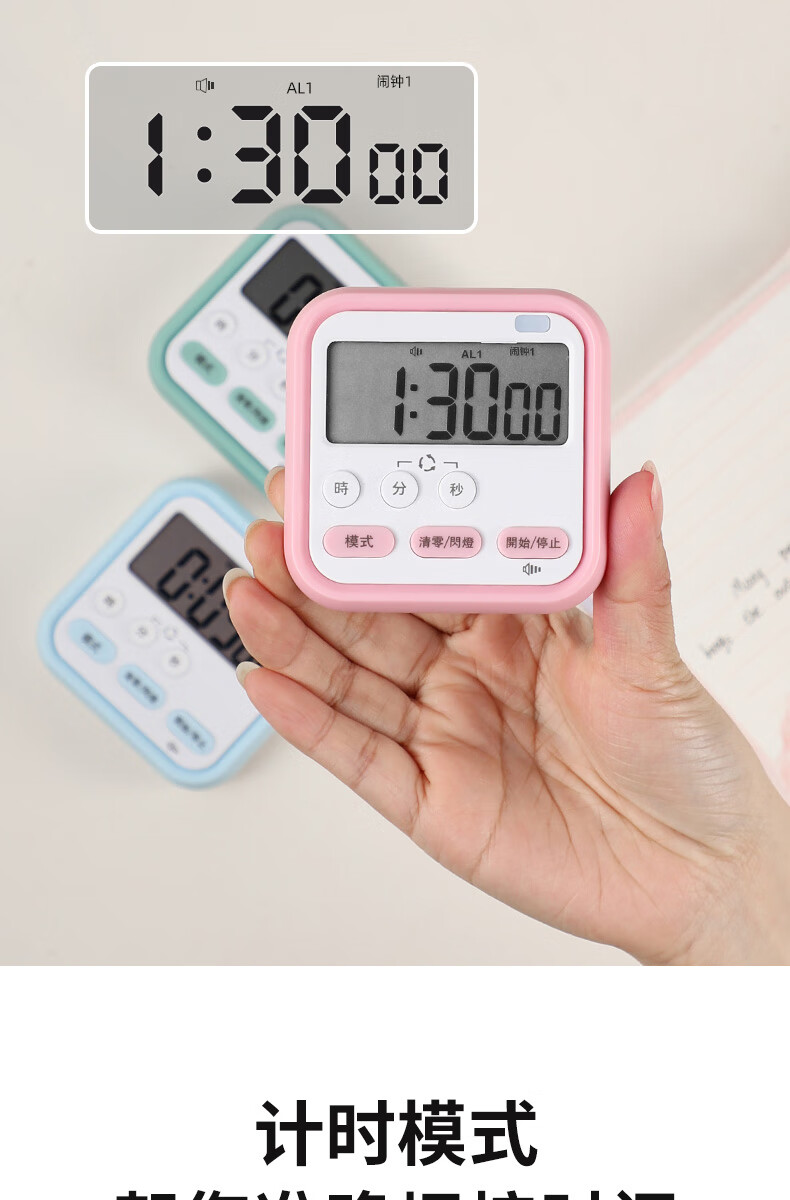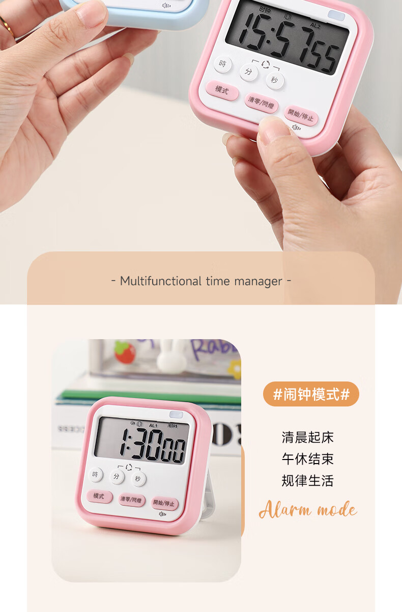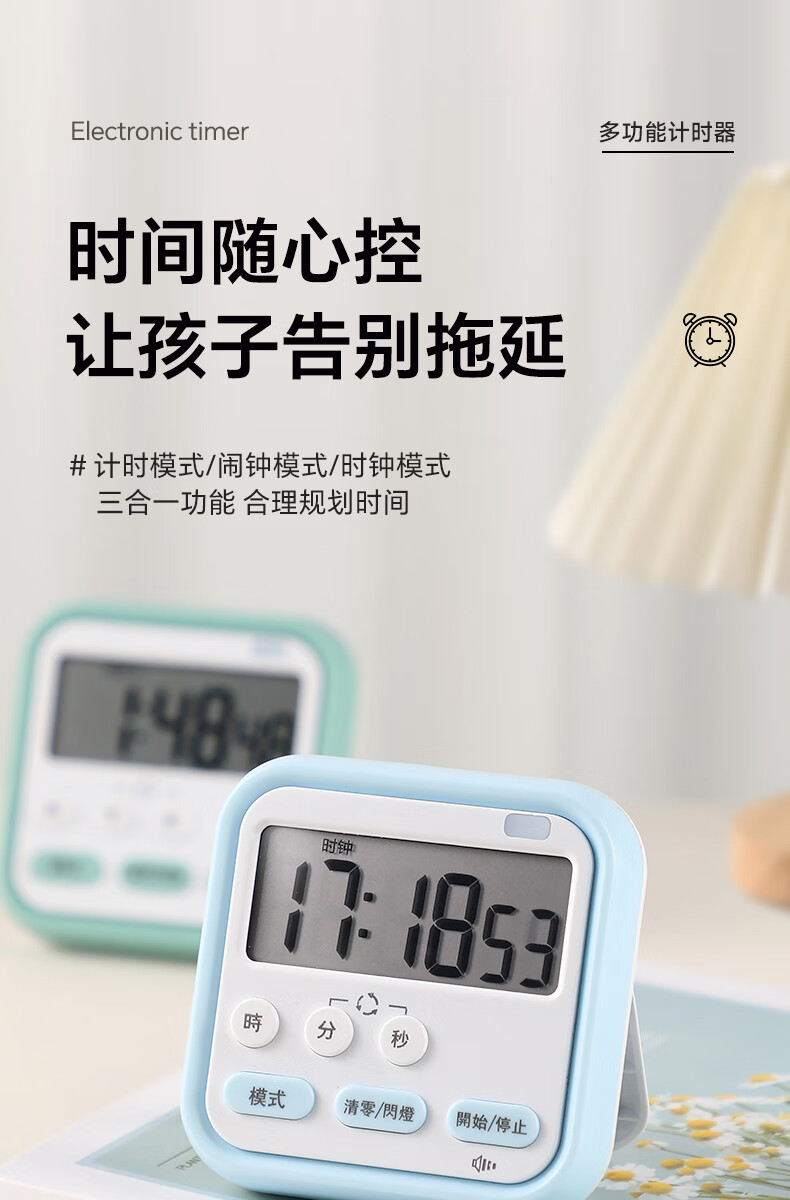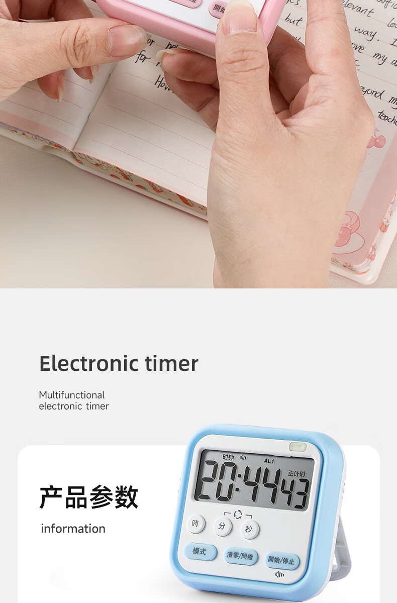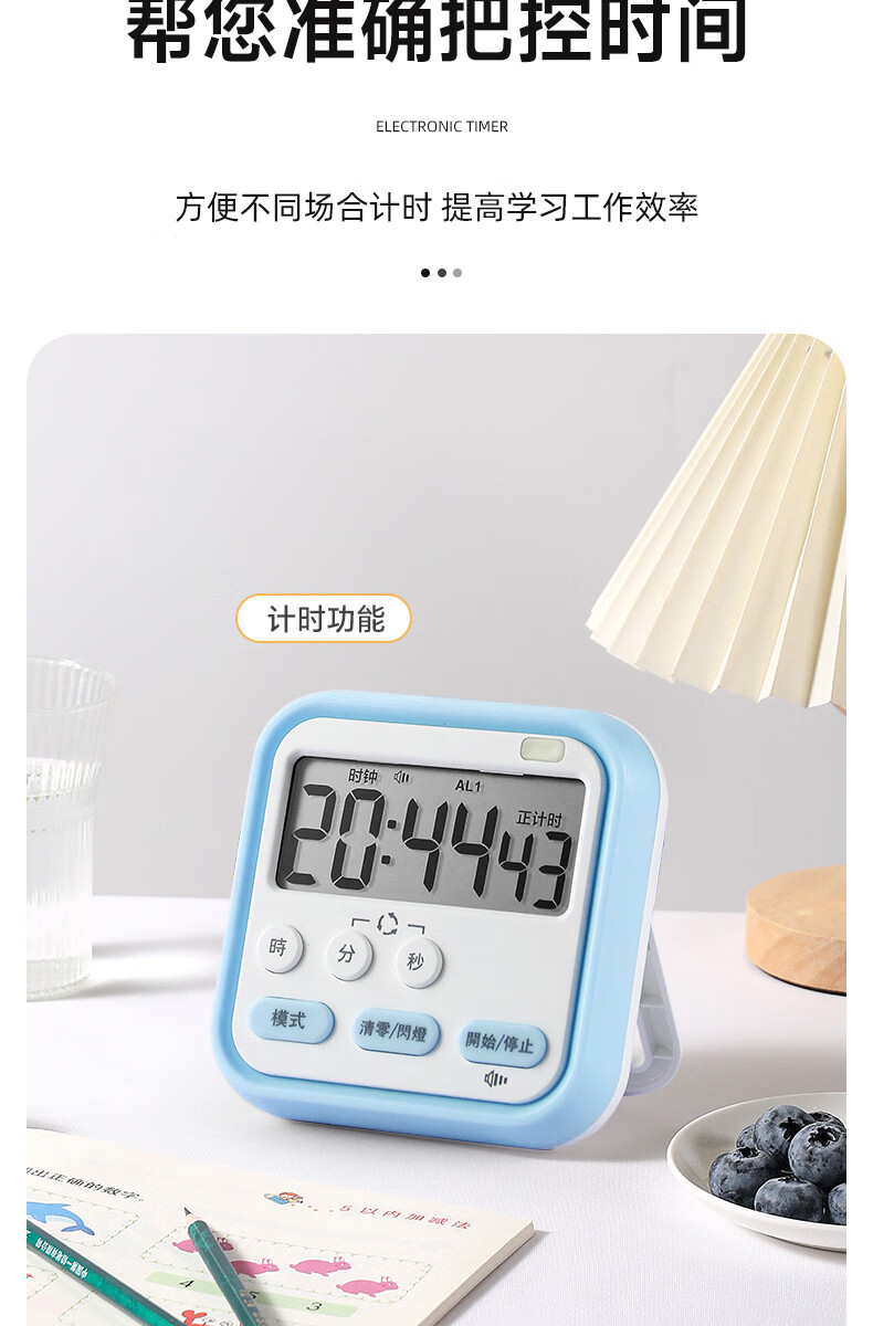 Timer for primary school students to learn self-discipline postgraduate entrance examination alarm clock electronic time manager kitchen baking timer blue and white flagship model timing + clock + alarm clock