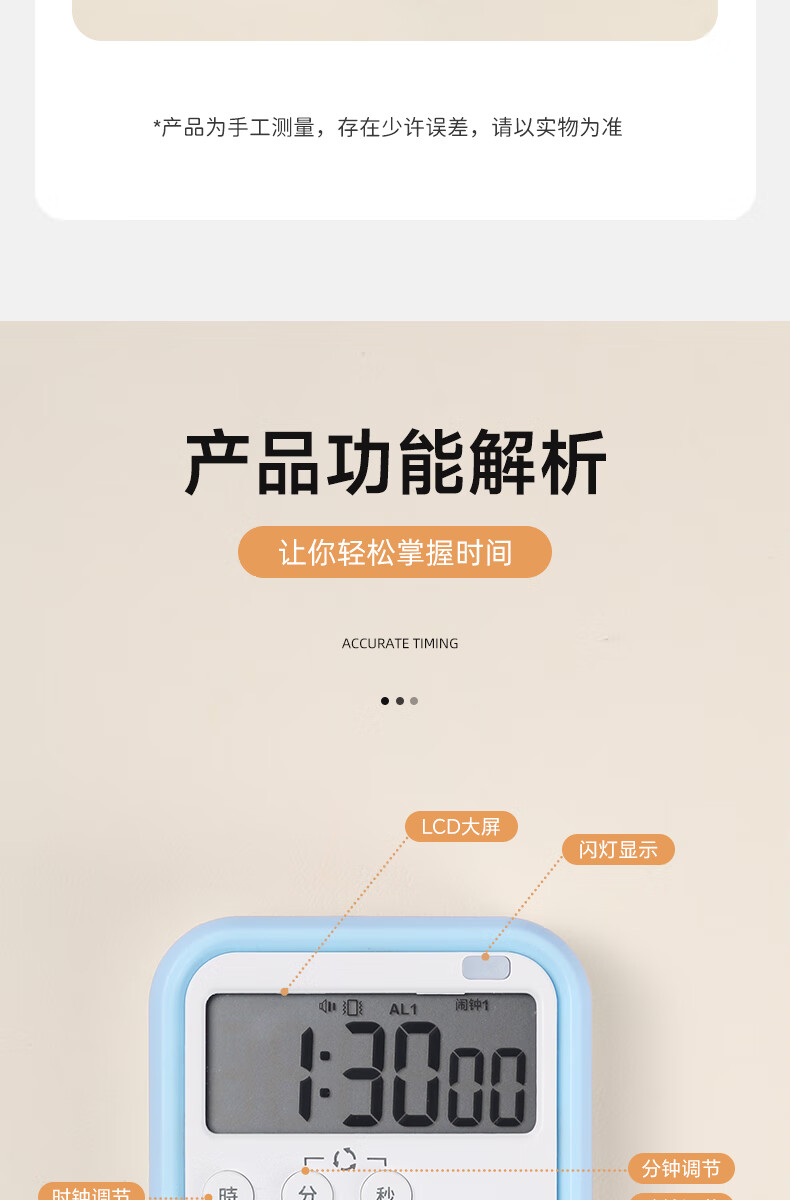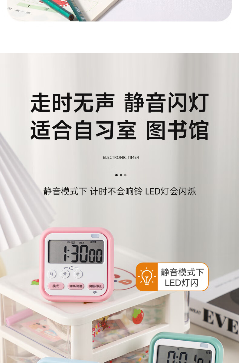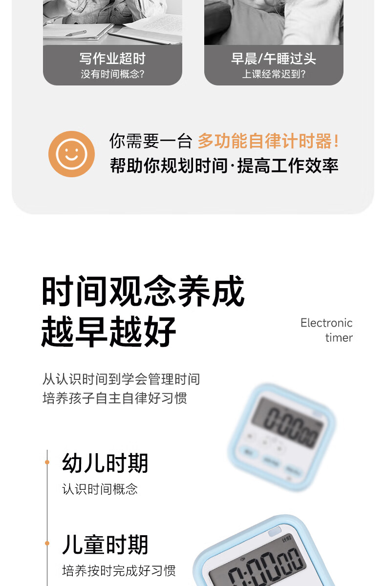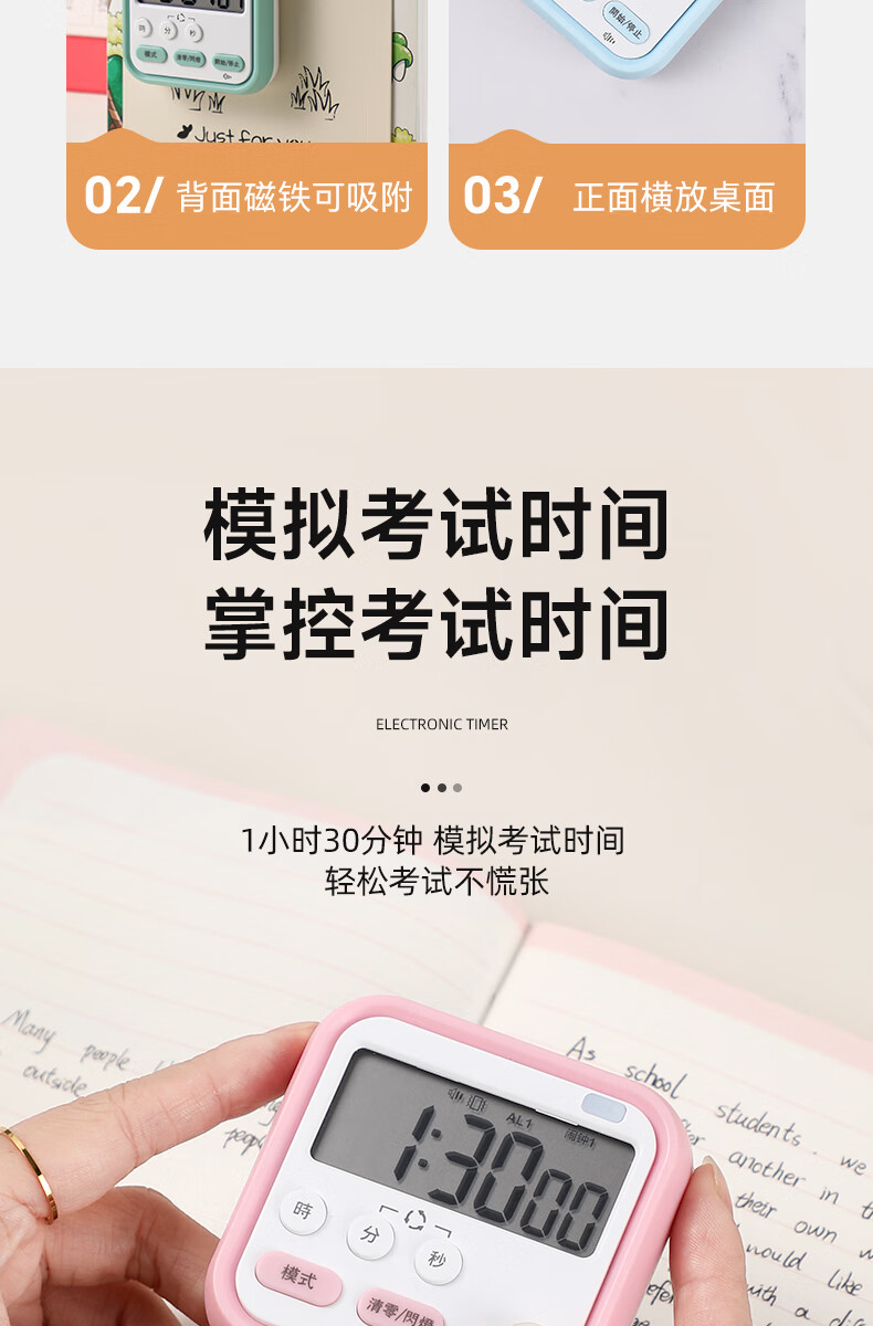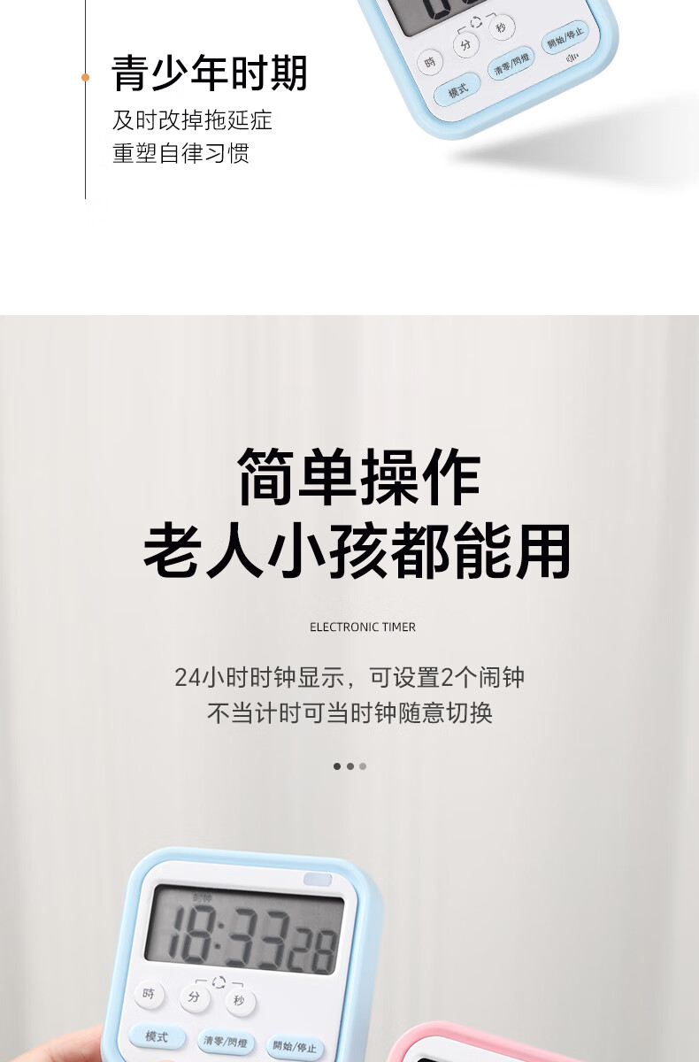 Timer for primary school students to learn self-discipline postgraduate entrance examination alarm clock electronic time manager kitchen baking timer blue and white flagship model timing + clock + alarm clock