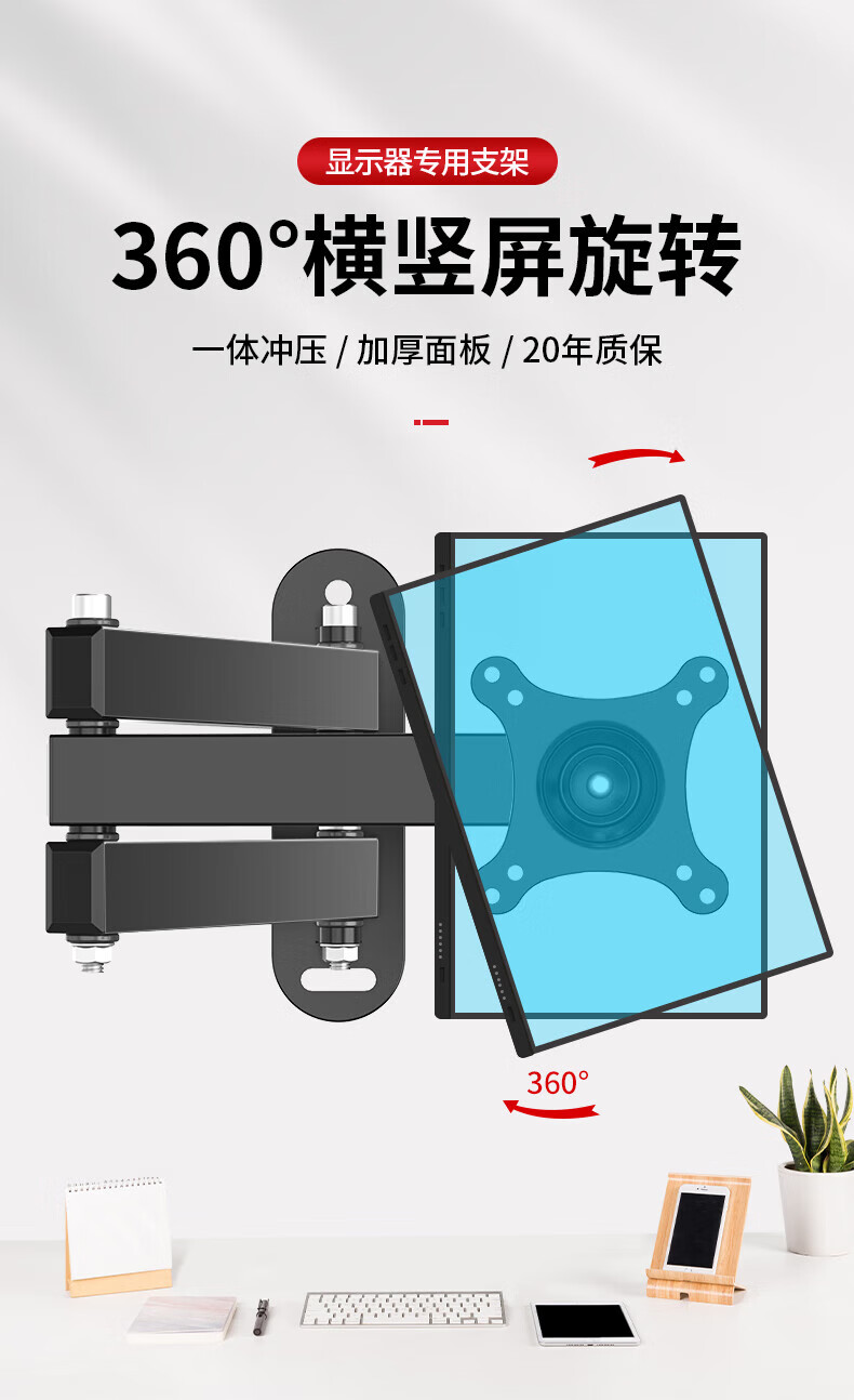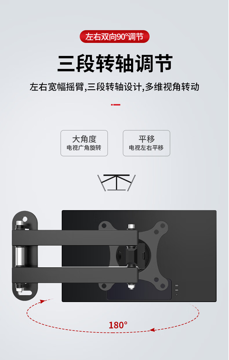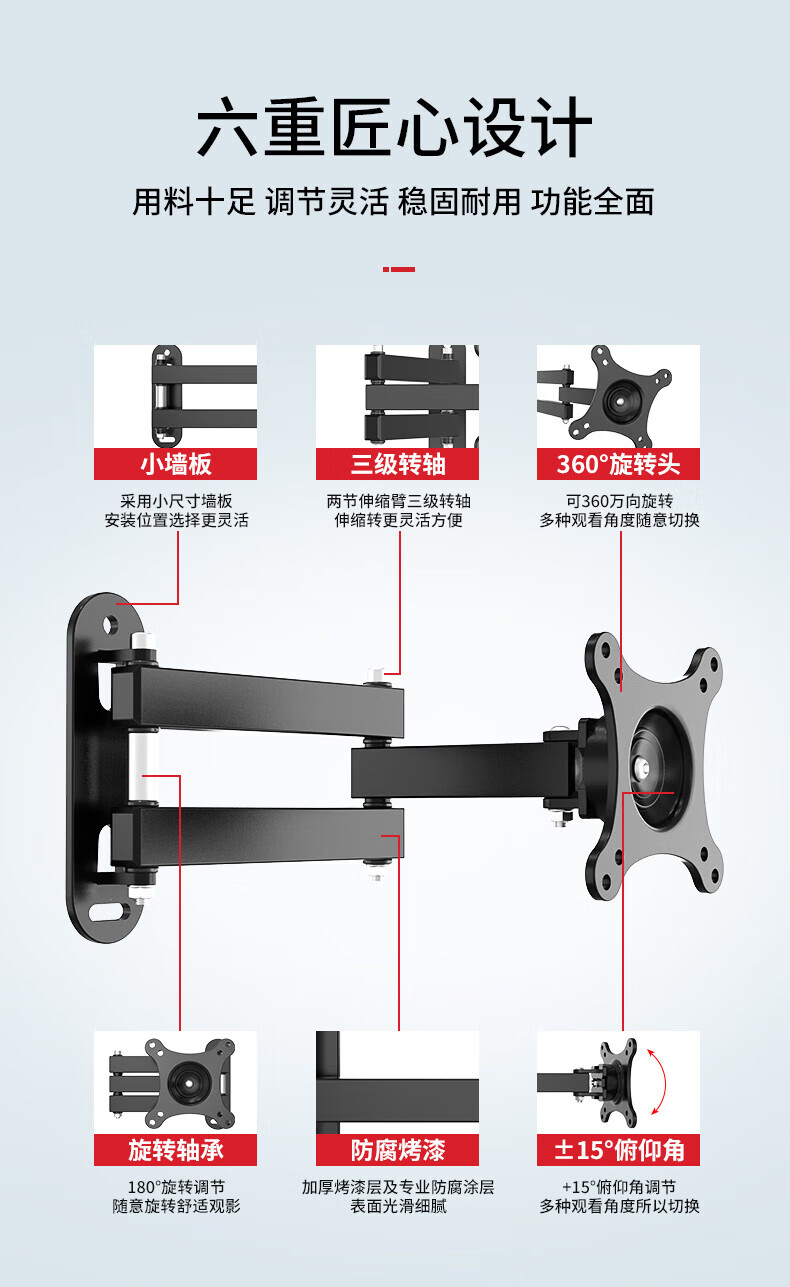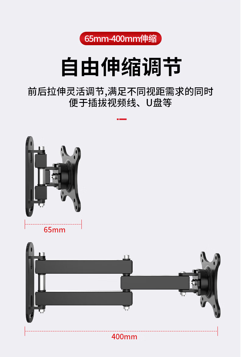 TV bracket universal computer LCD monitor bracket wall-mounted rotating retractable TV bracket universal wall-mounted shelf 14-32 inches head 360-degree rotating bracket extension wing
