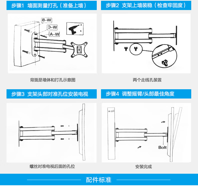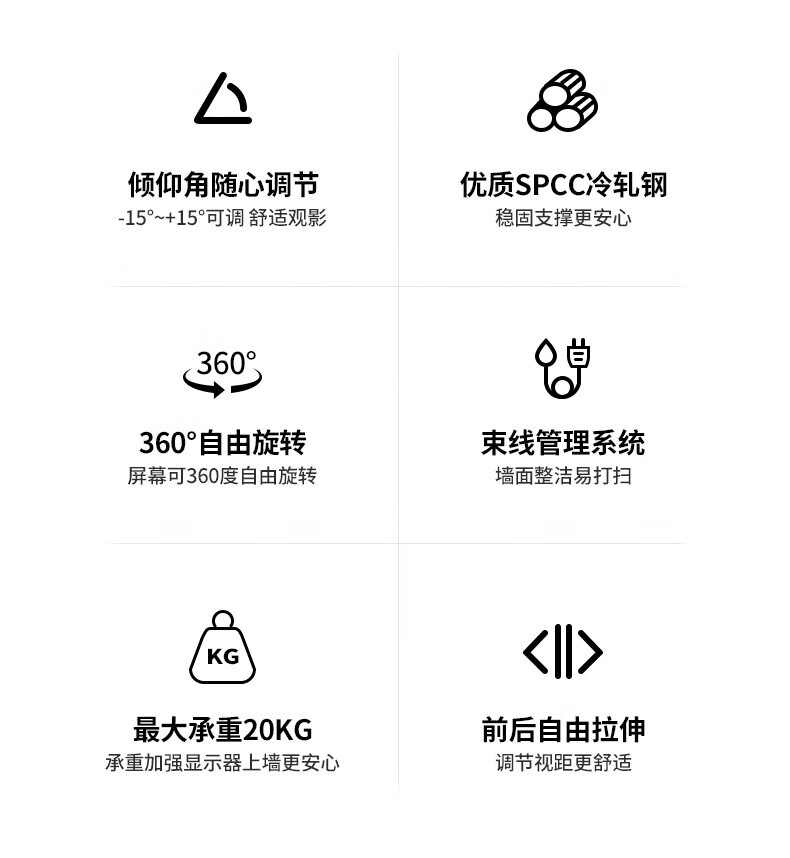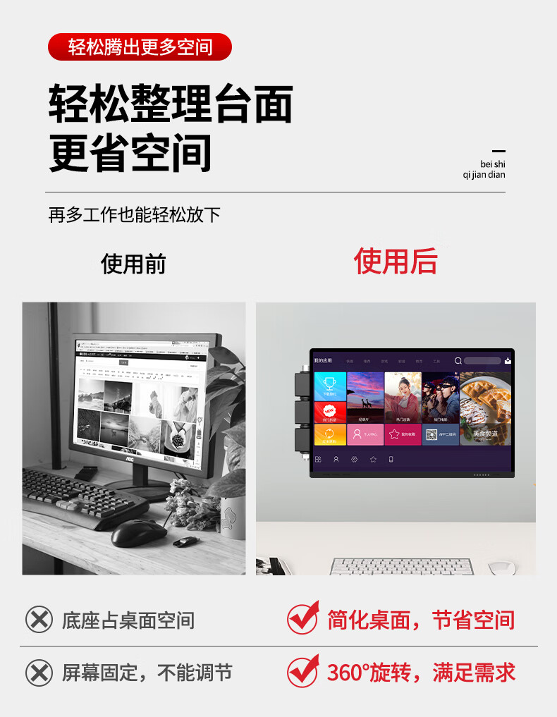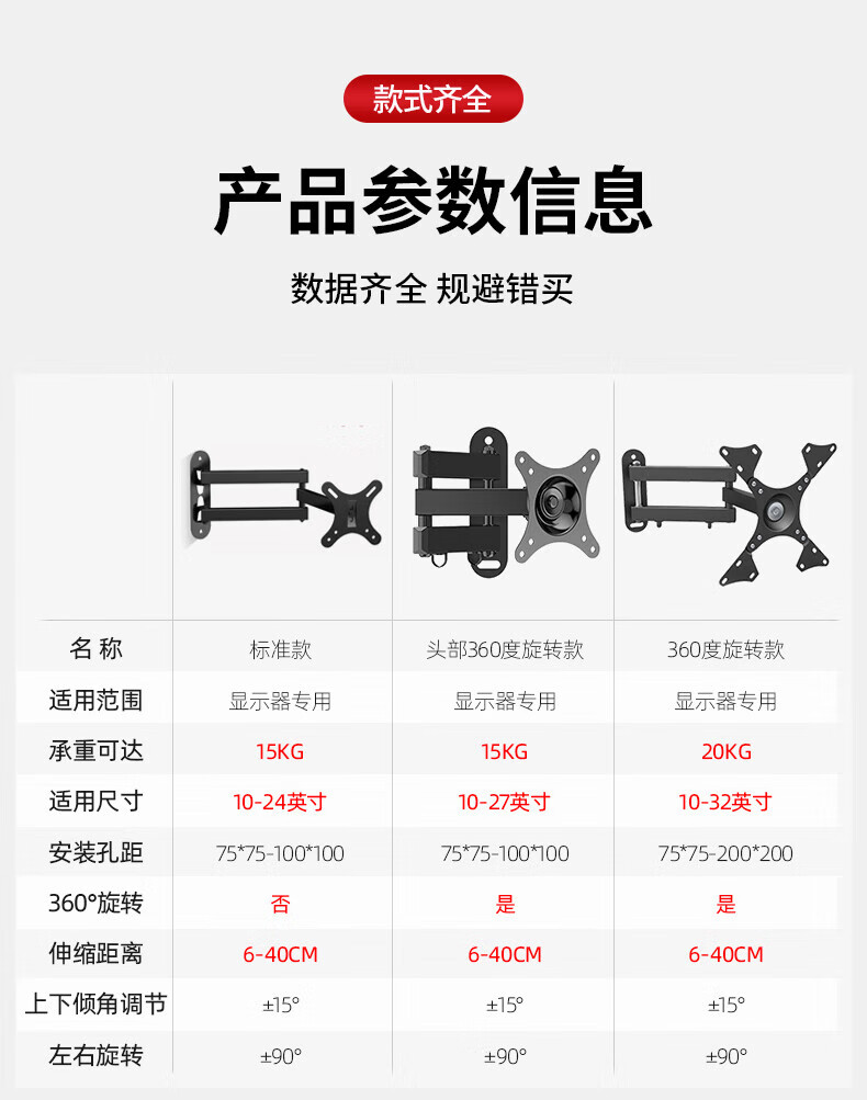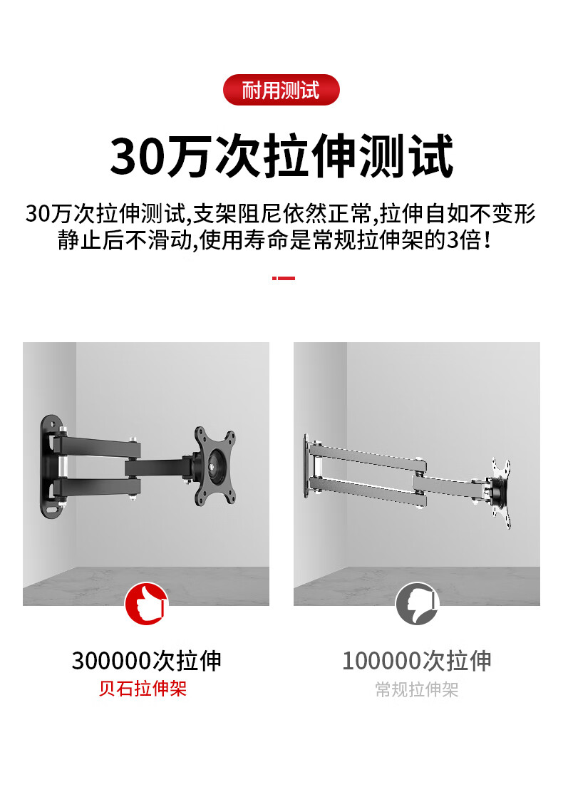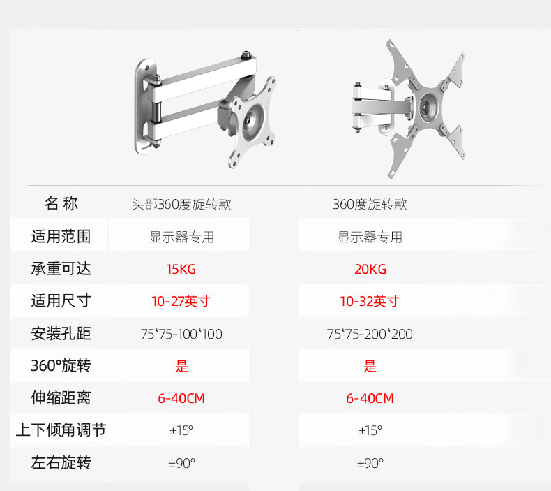 TV bracket universal computer LCD monitor bracket wall-mounted rotating retractable TV bracket universal wall-mounted shelf 14-32 inches head 360-degree rotating bracket extension wing