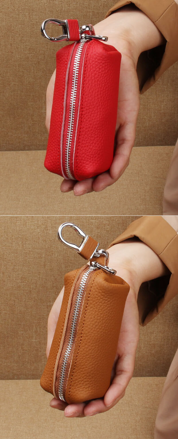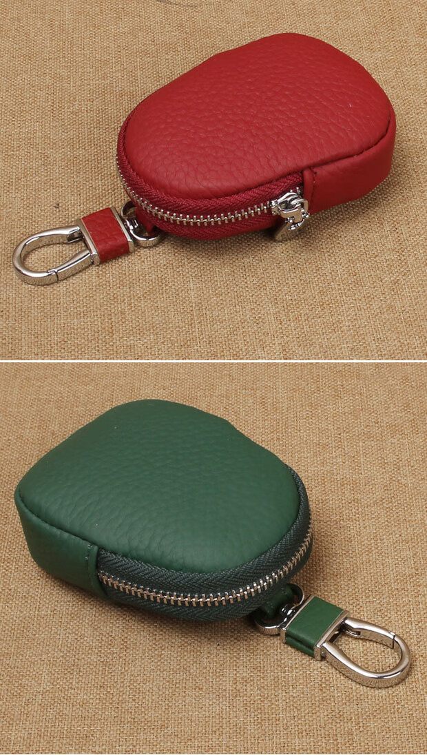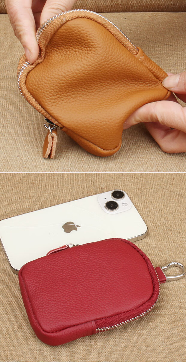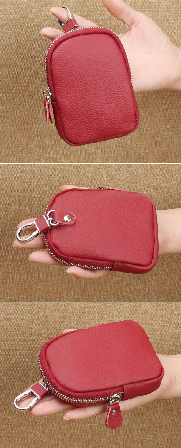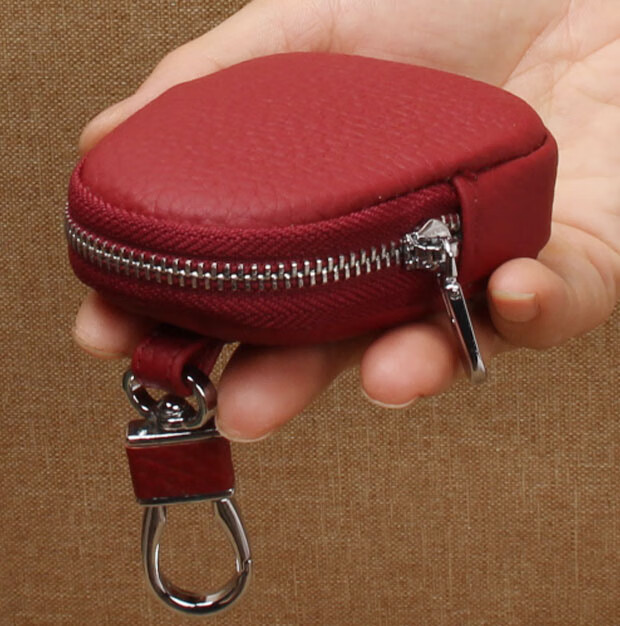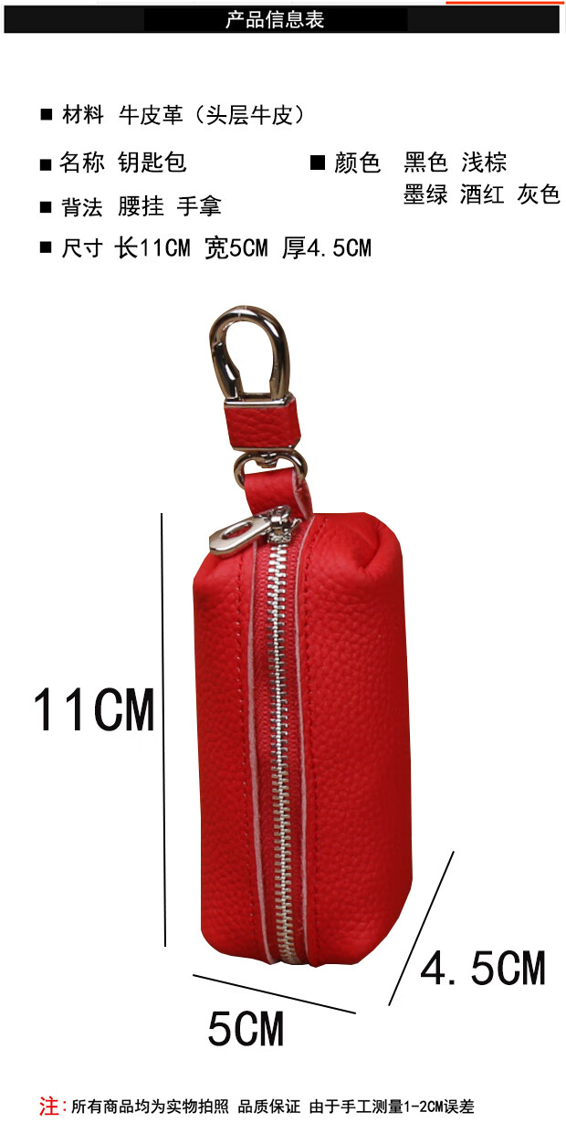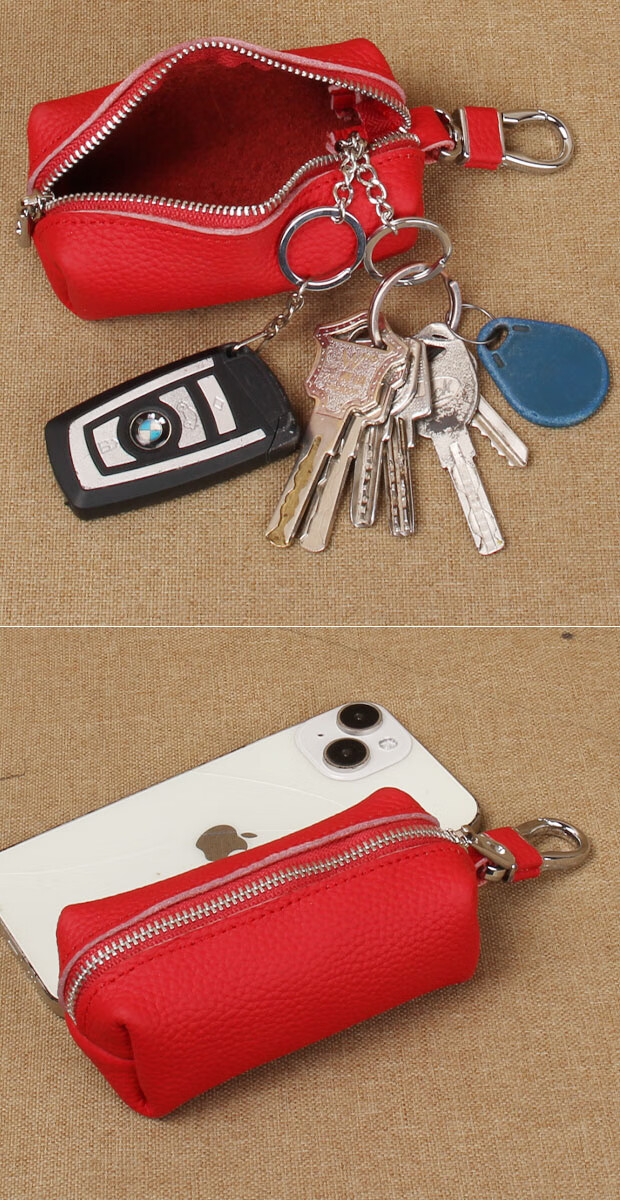 Shijanu genuine leather car key bag 2025 new women's mini compact portable storage bag car home key bag hanging bag burgundy