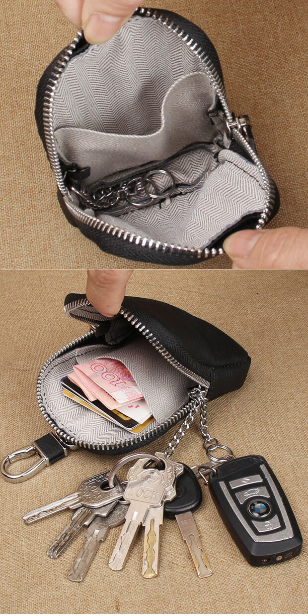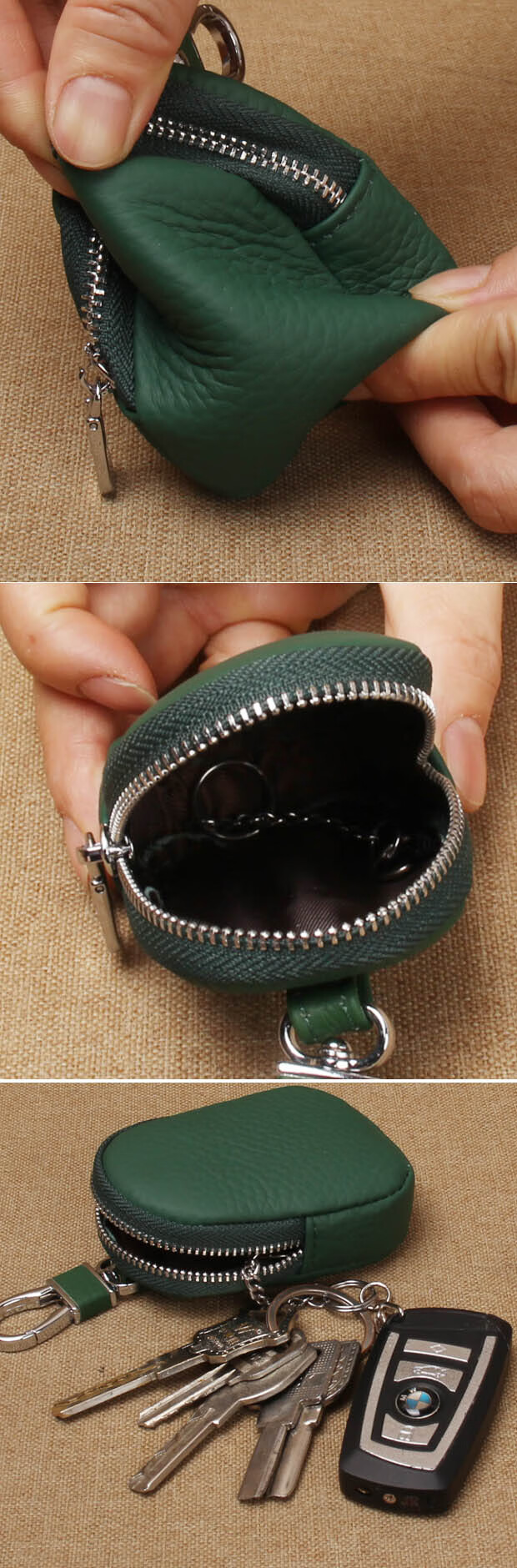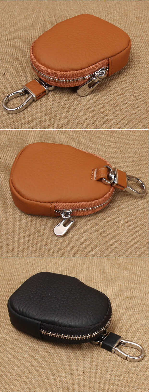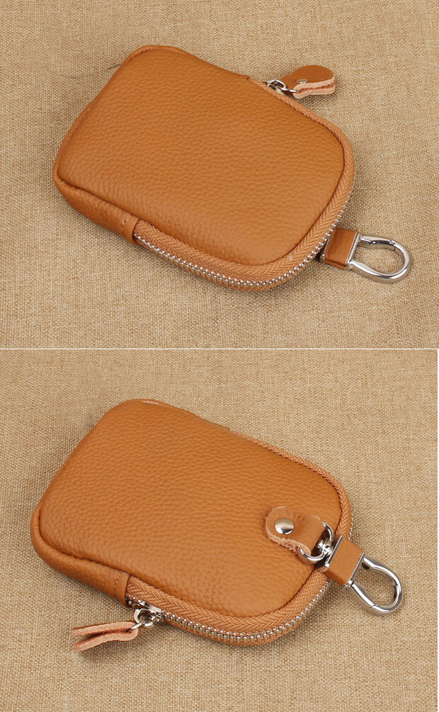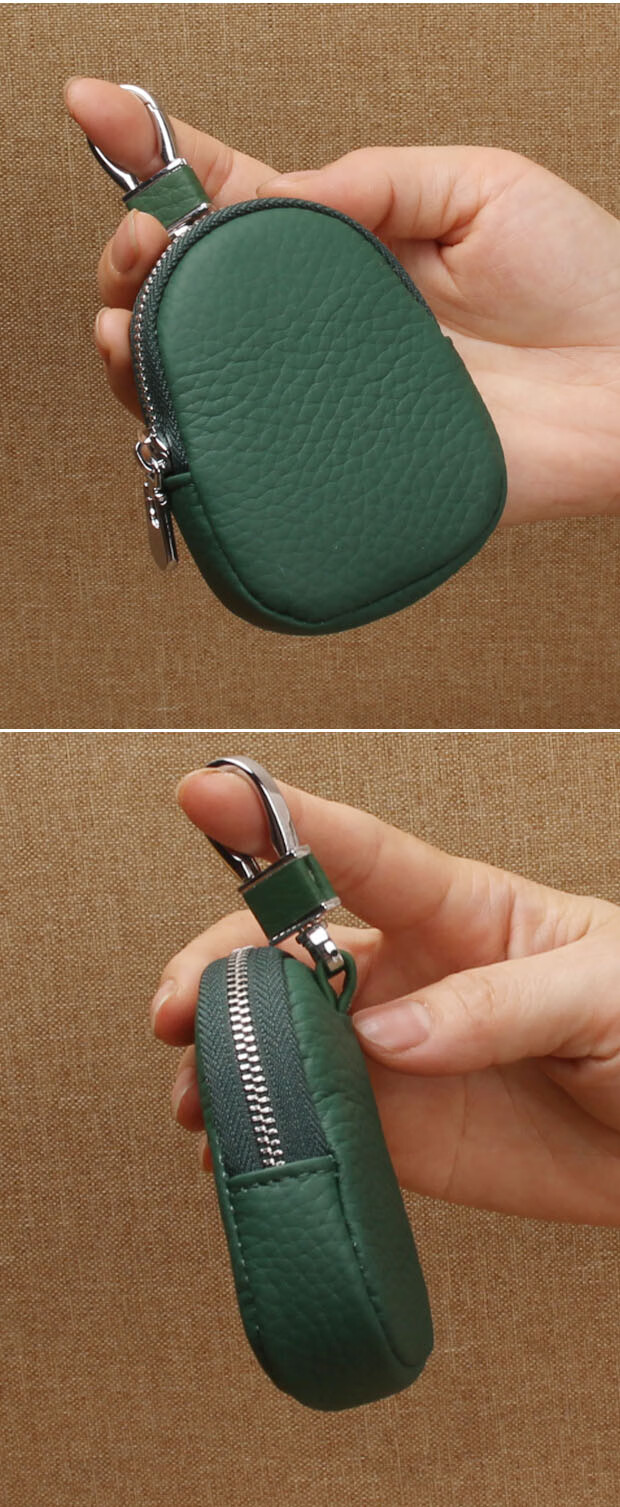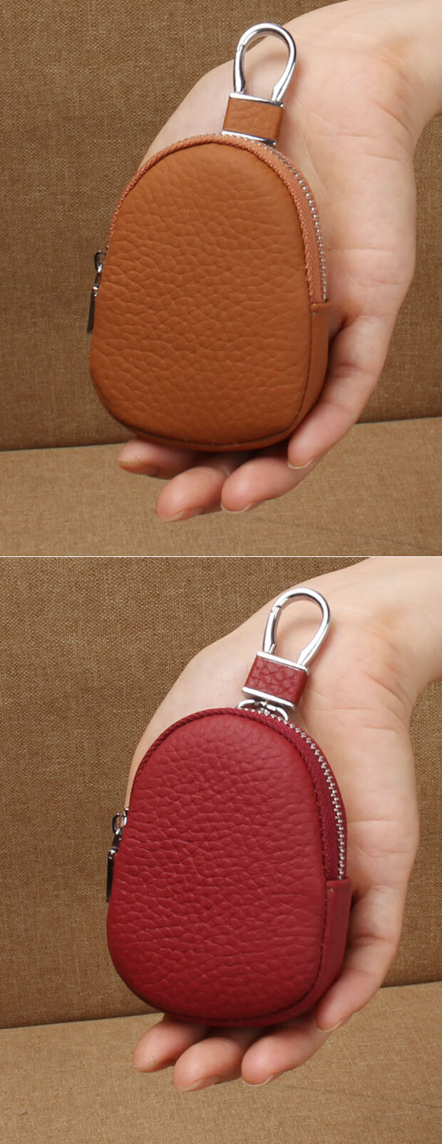 Shijanu genuine leather car key bag 2025 new women's mini compact portable storage bag car home key bag hanging bag burgundy