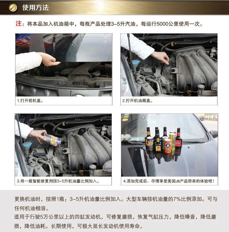 Imported from the United States, JB engine protection agent, intelligent anti-wear agent, anti-blue smoke, strong oil burning, repair and noise reduction 1 (bottled)