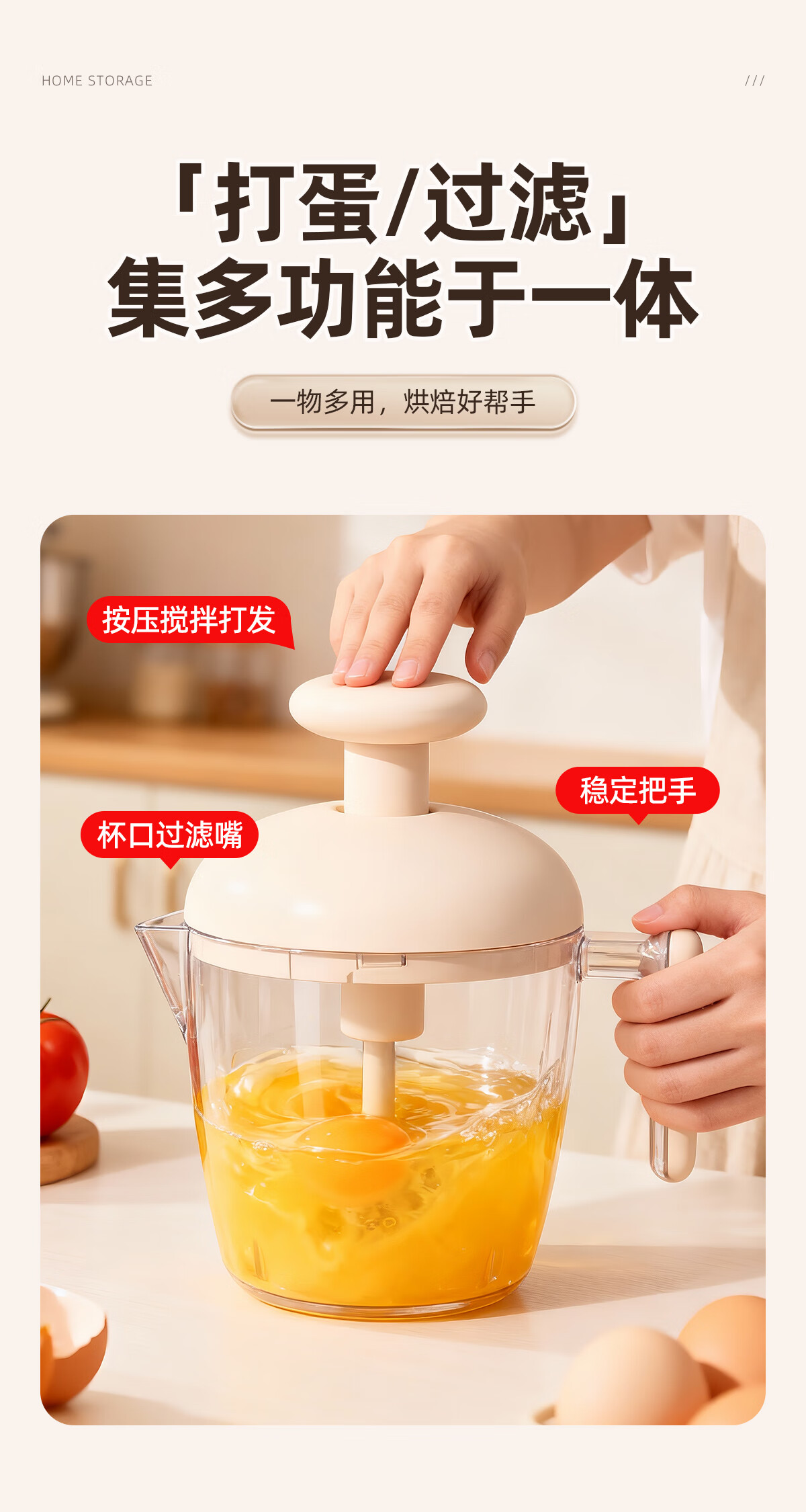 YOUQIN push-type egg-beating cup household manual egg mixer multi-function egg-beating cup cream whipper multi-function egg beater-pink