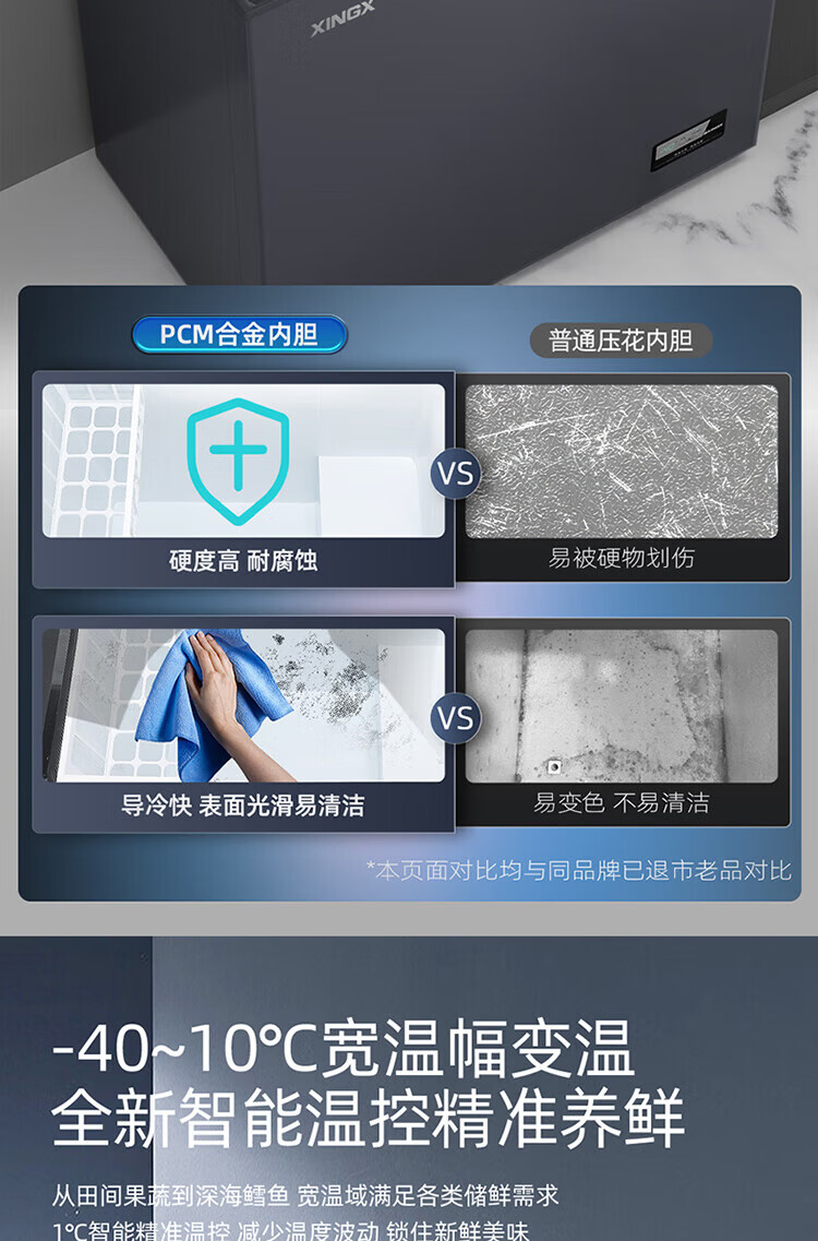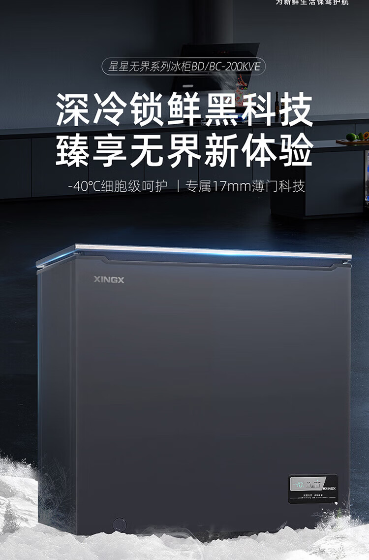 XINGX Frost Reducing Freezer 300L/200L Large Capacity -40 Quick Freezing Ultra Low Temperature Quick Freezing Freezer Commercial Freezer Dual-purpose Refrigeration and Freezing Single Temperature Freezer Level One Energy Efficiency 203L -40 Cryogenic Upgraded Unbounded Glass Panel