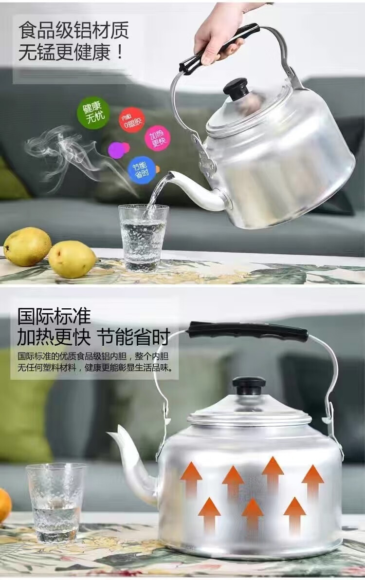 Old-fashioned aluminum kettle, traditional pure aluminum kettle, coal stove, gas stove, large water tea kettle for restaurants, thickened WQQ 1ml 8000ml 28cm aluminum kettle