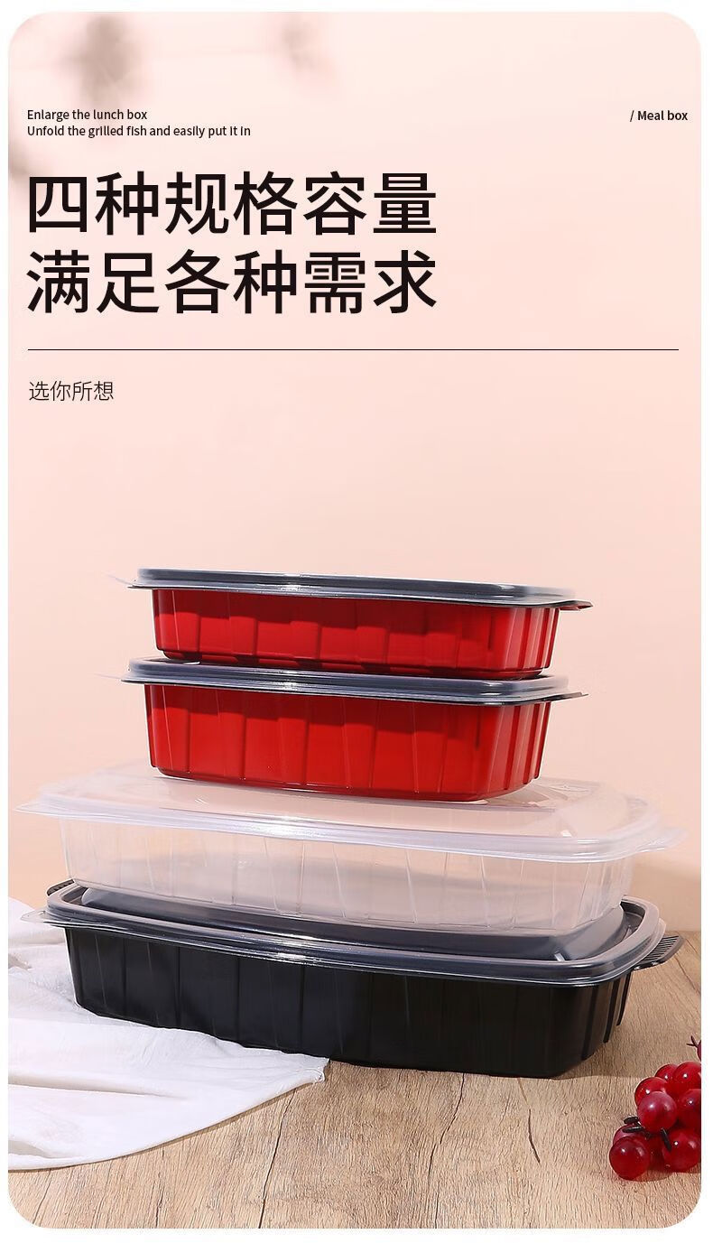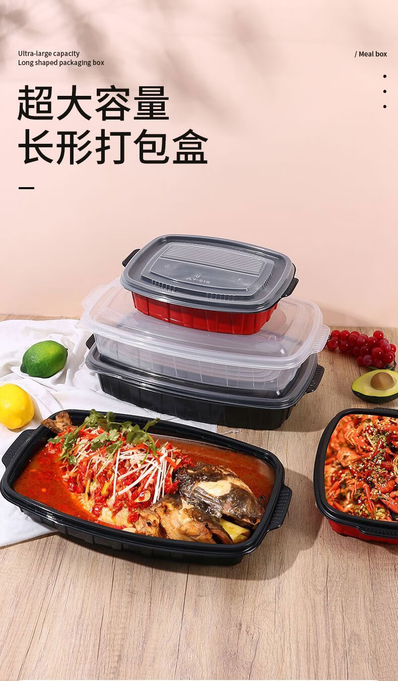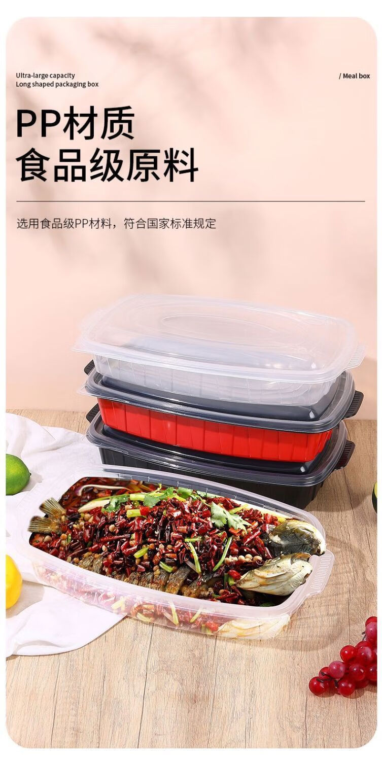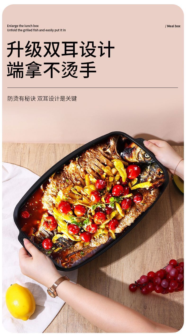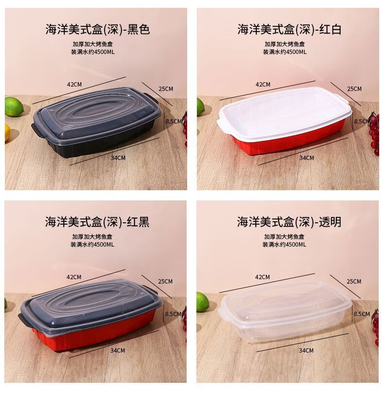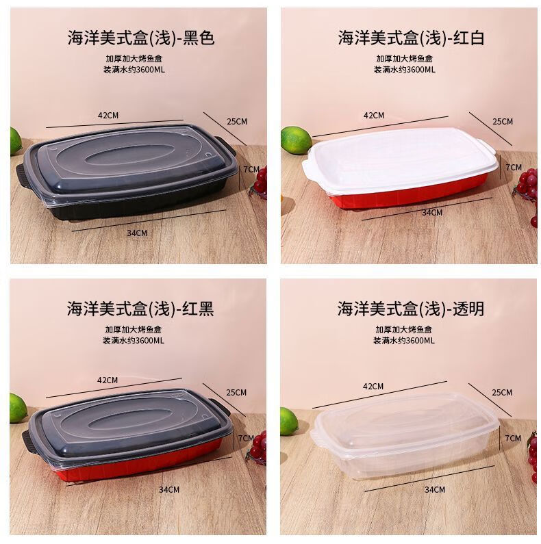 Yusenyi grilled fish takeout box, heatable commercial box, extra large rectangular fish box barbecue plate, transparent 3600l grilled fish box with lid-5 sets