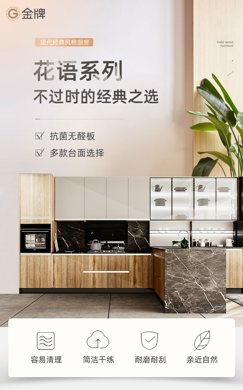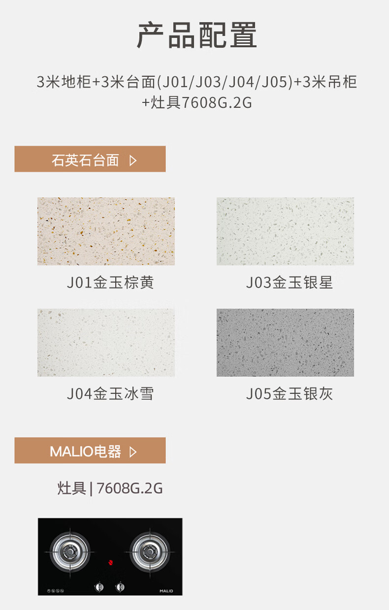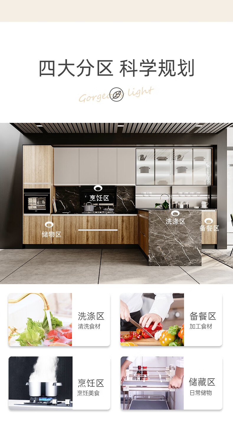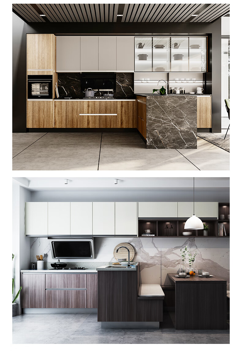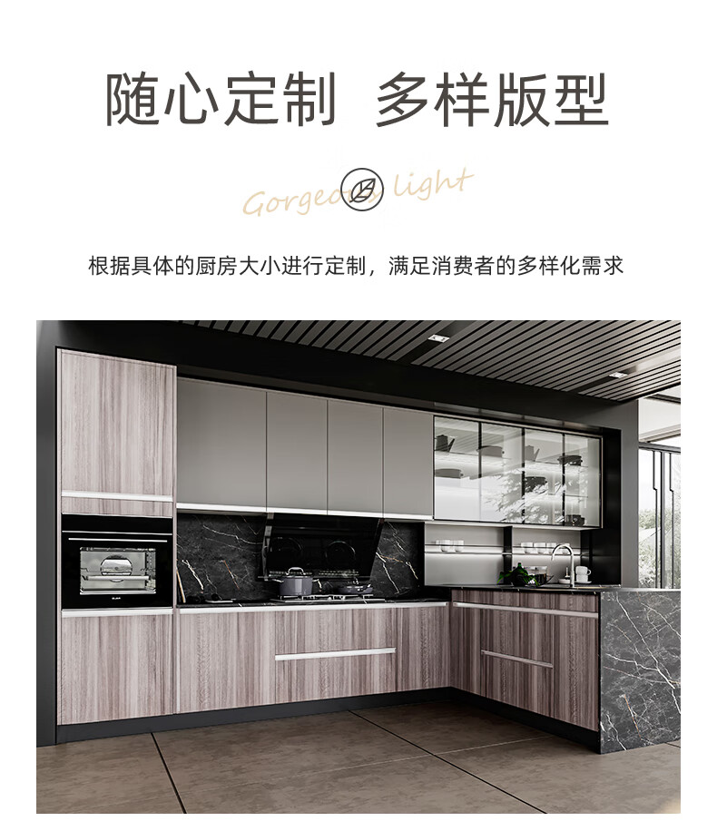 Gold Medal Kitchen Cabinet Kitchen Cabinet Customized Overall Kitchen Kitchen Cabinet Decoration Modern Simple Quartz Stone Countertop Cabinet Package 3 linear meters + stove