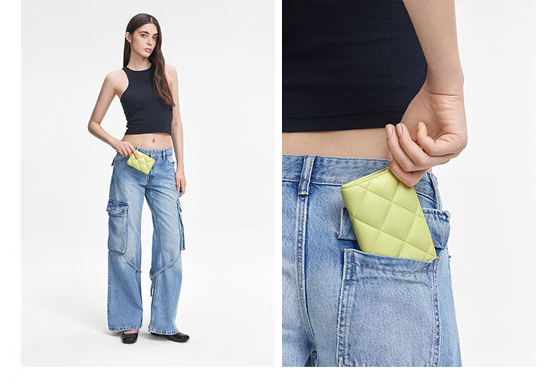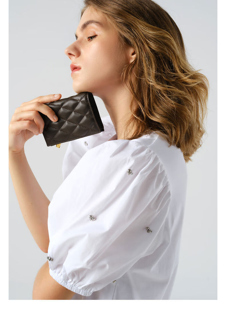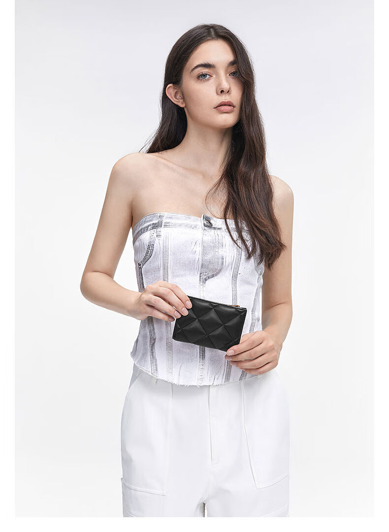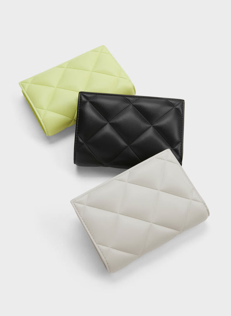 CHARLESKEITH card bag CK6507705242 autumn and winter classic rhombus multi-card slot short coin purse Black black