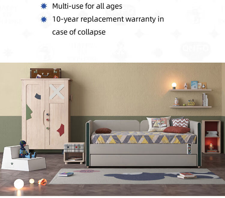 Yusenyi ONFO solid wood fabric children's bed pull-out bed children's drag bed Nordic style child bed pro version bed + drag bed guardrails removable - mattress not included Remarks color not included 1000mm*2000mm