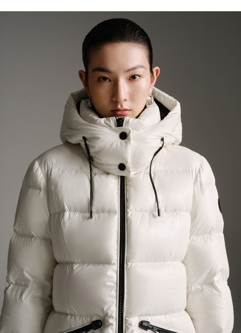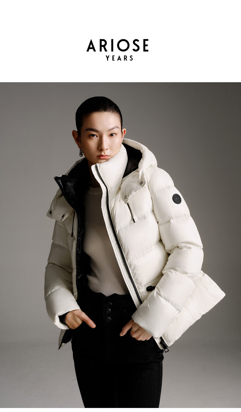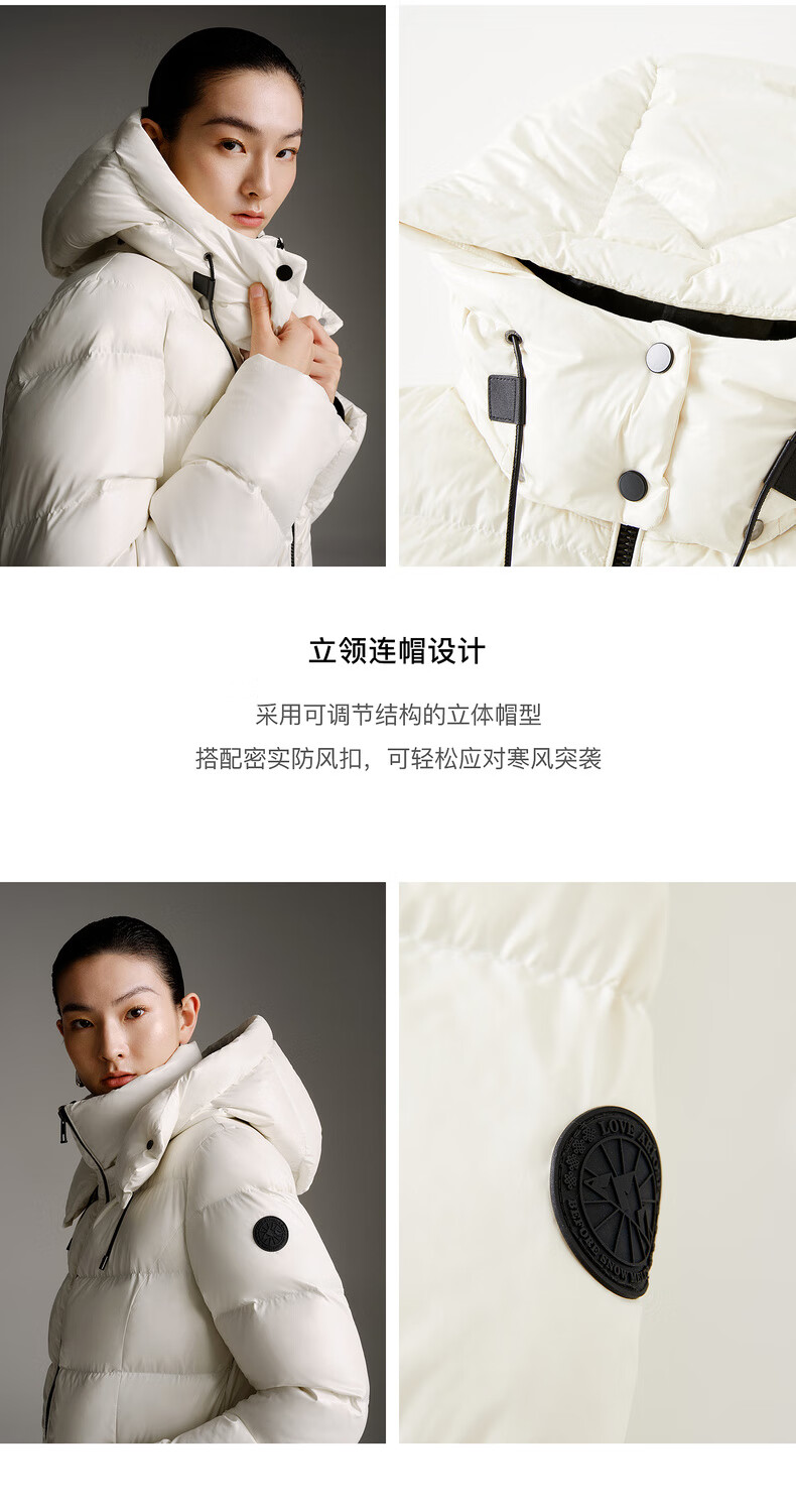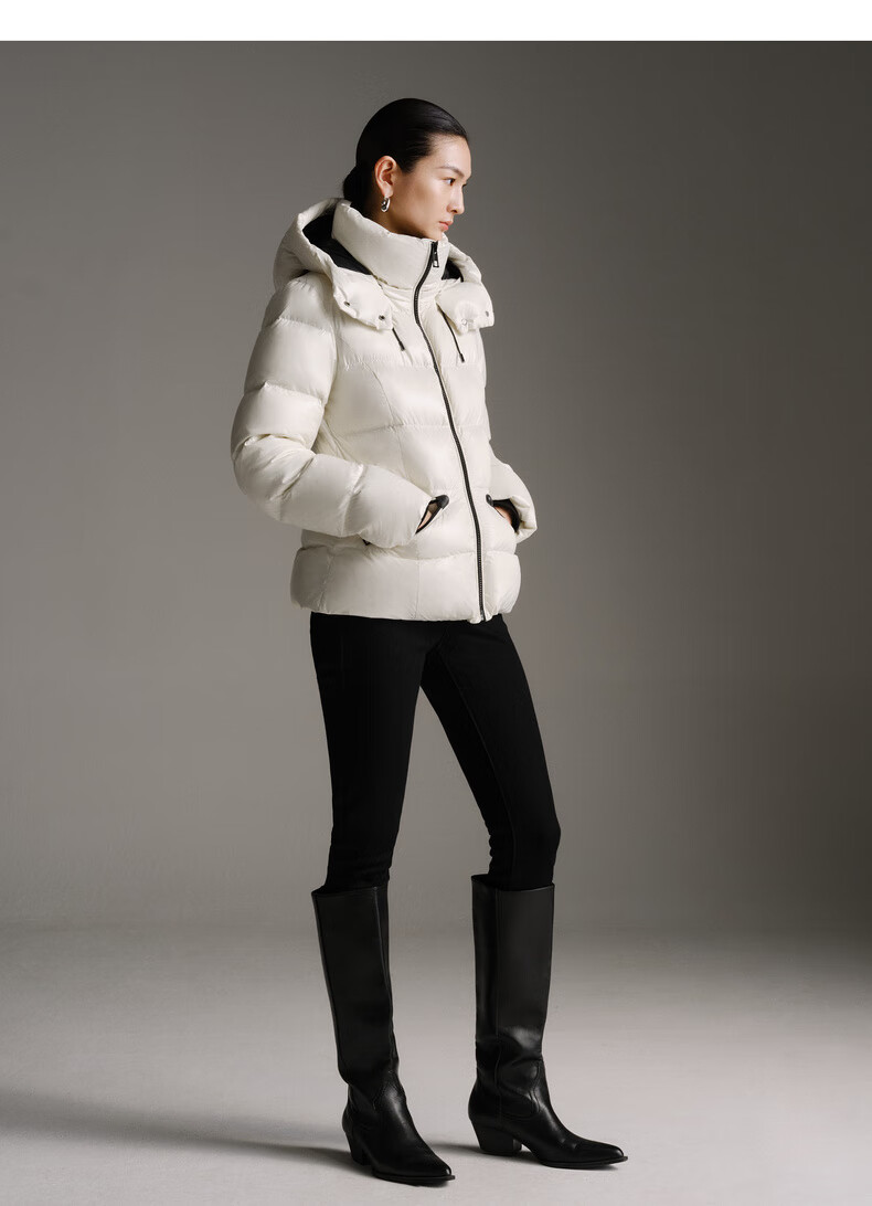 Enos Yashi Shopping Mall Same Style 2025 Winter New Warm Workwear Style White Duck Down Hooded Down Jacket Women 41120086 Cream Rice L