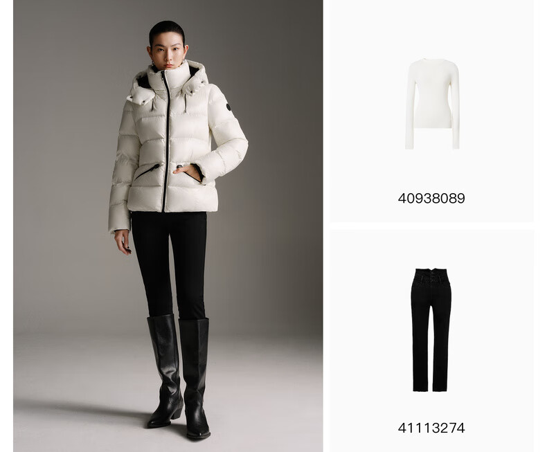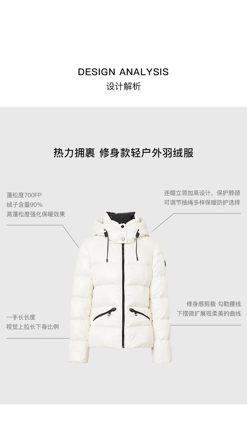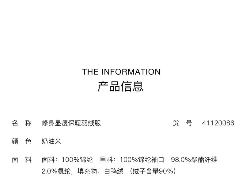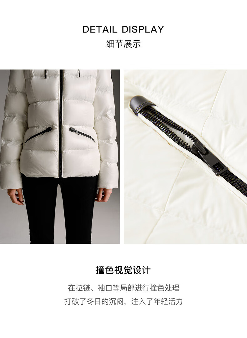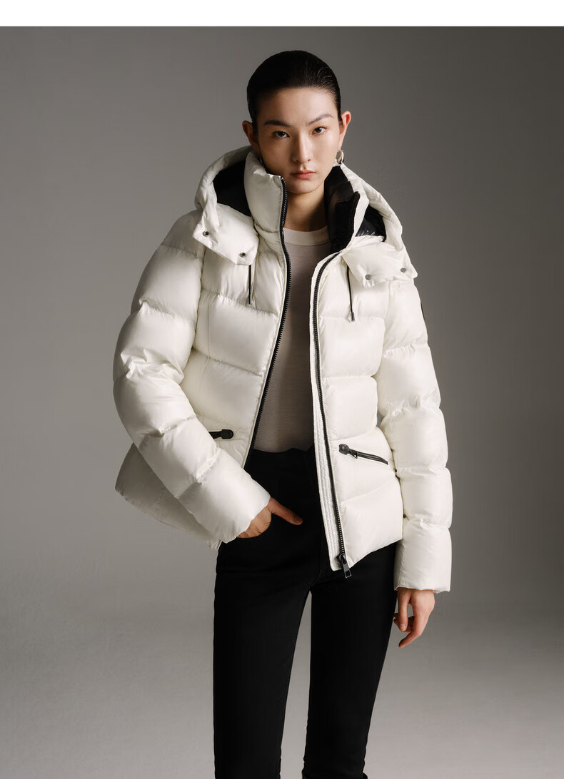 Enos Yashi Shopping Mall Same Style 2025 Winter New Warm Workwear Style White Duck Down Hooded Down Jacket Women 41120086 Cream Rice L