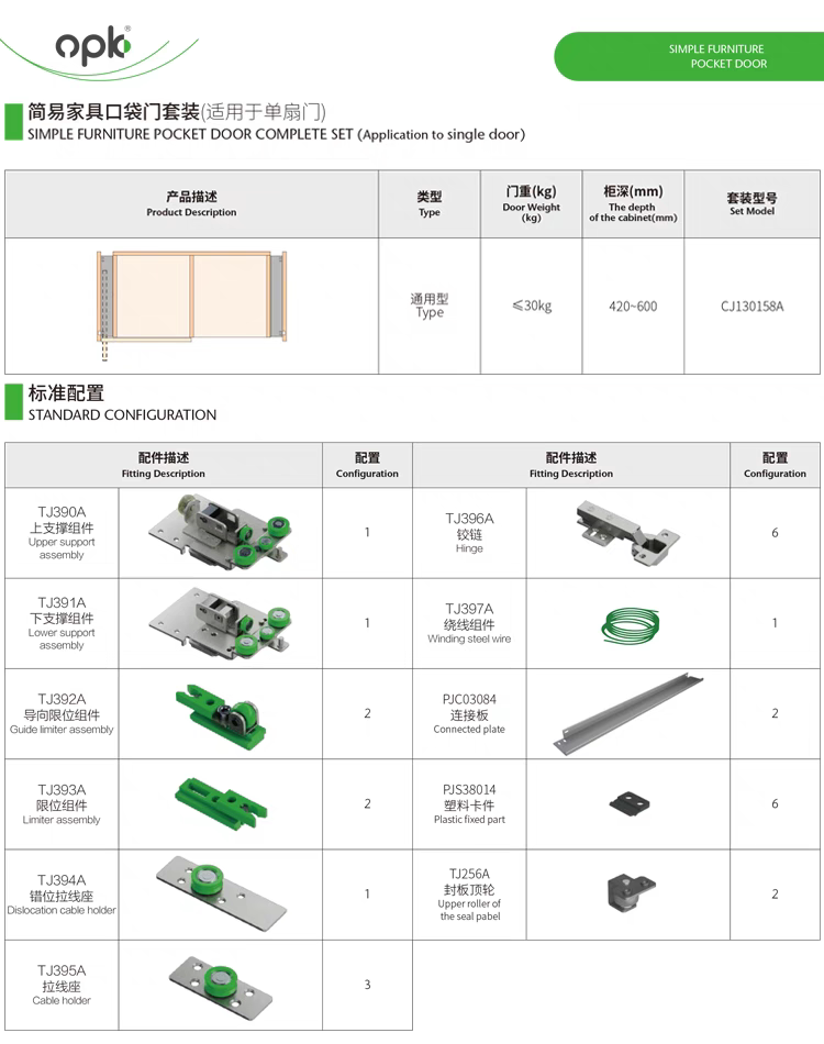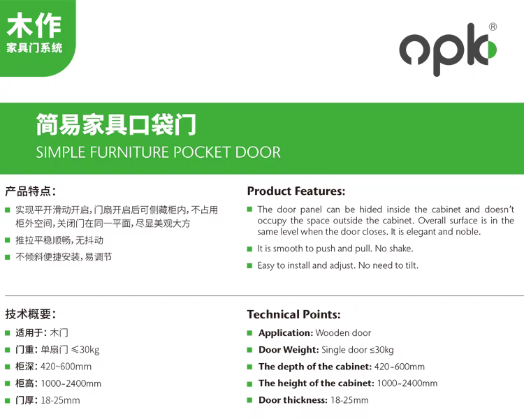 OPIKE simple furniture pocket door butterfly door plug-in hidden integral cabinet simple version furniture pocket door single door