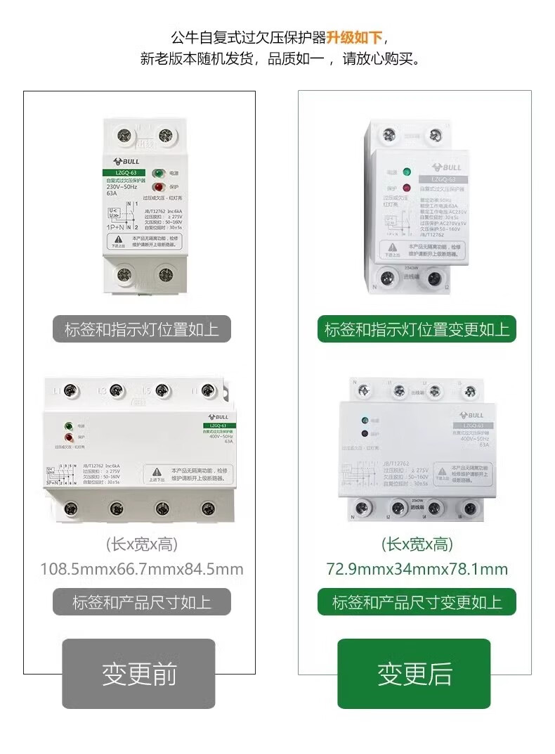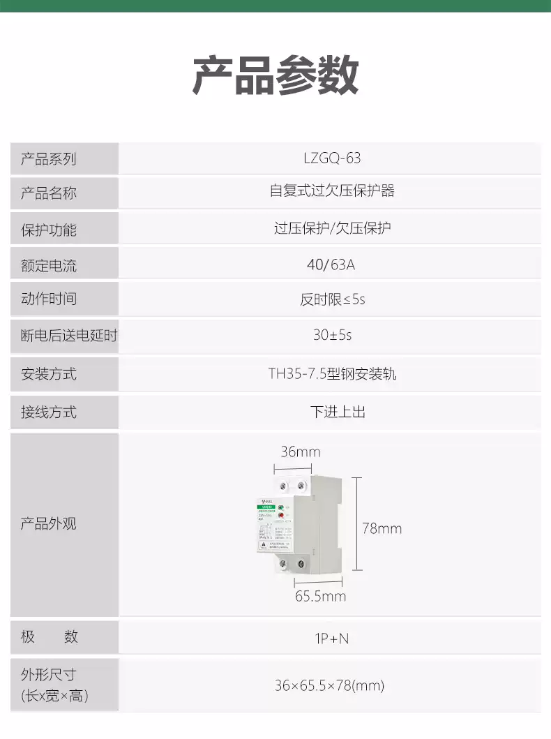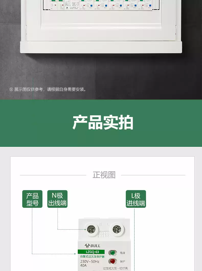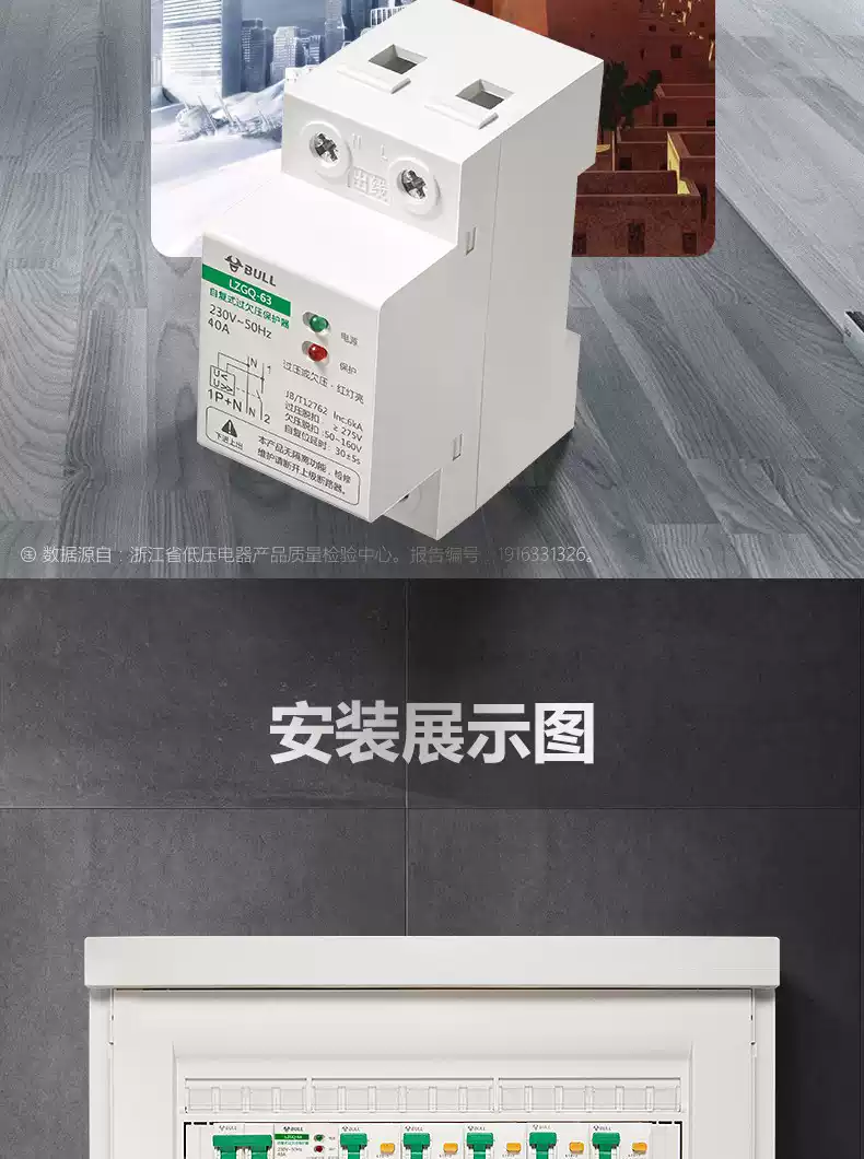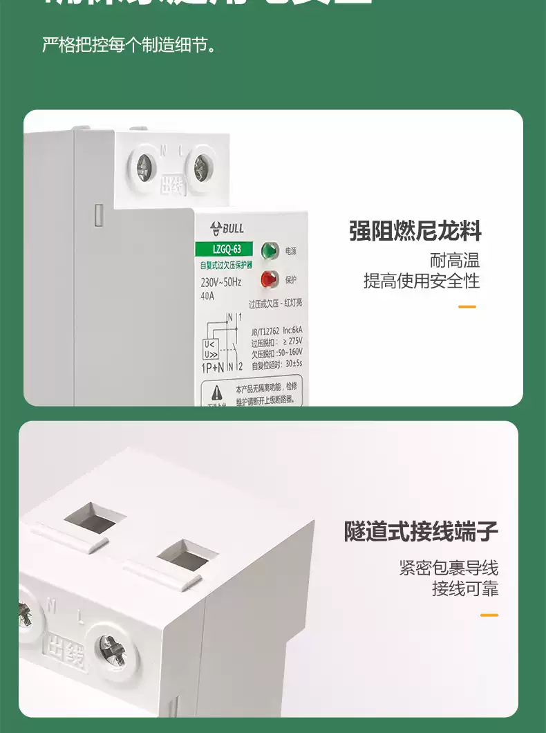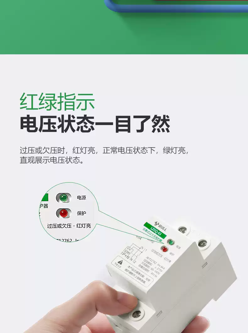 Bull self-resetting overvoltage and undervoltage protector LZGQ-63 tripper automatic reset 63A household 220V rail upper incoming line 40A 1P+N