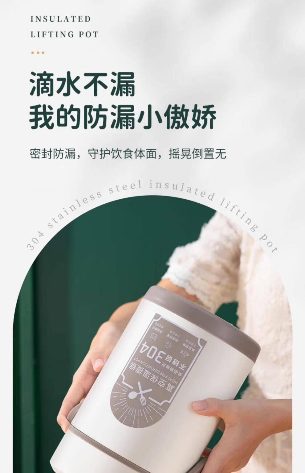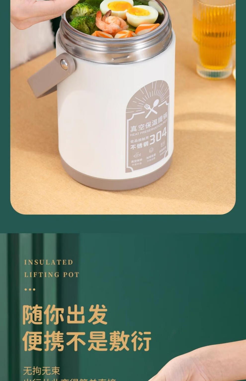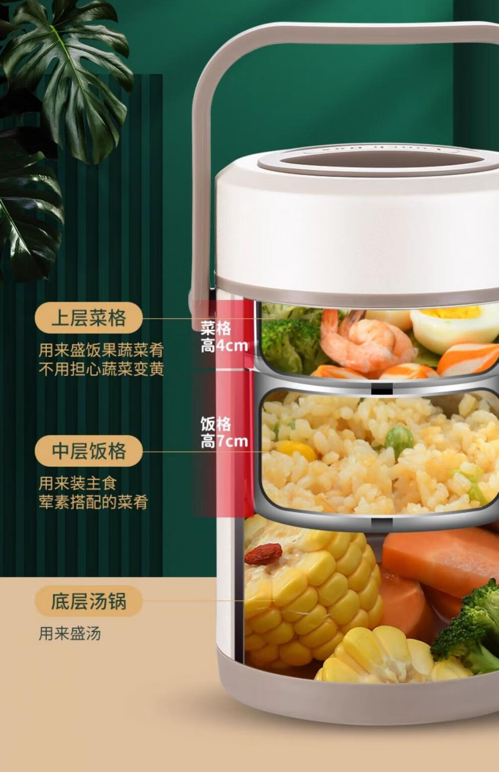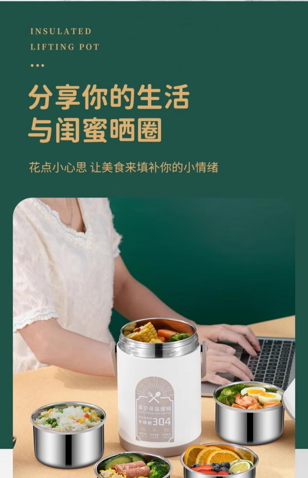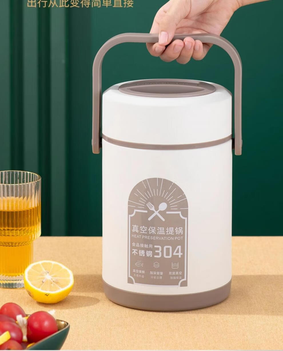 Aoyanlai 304 stainless steel insulated lunch box, large capacity, portable, 24-hour long-lasting temperature lock, three-layer insulated bucket 1.8L, cream white
