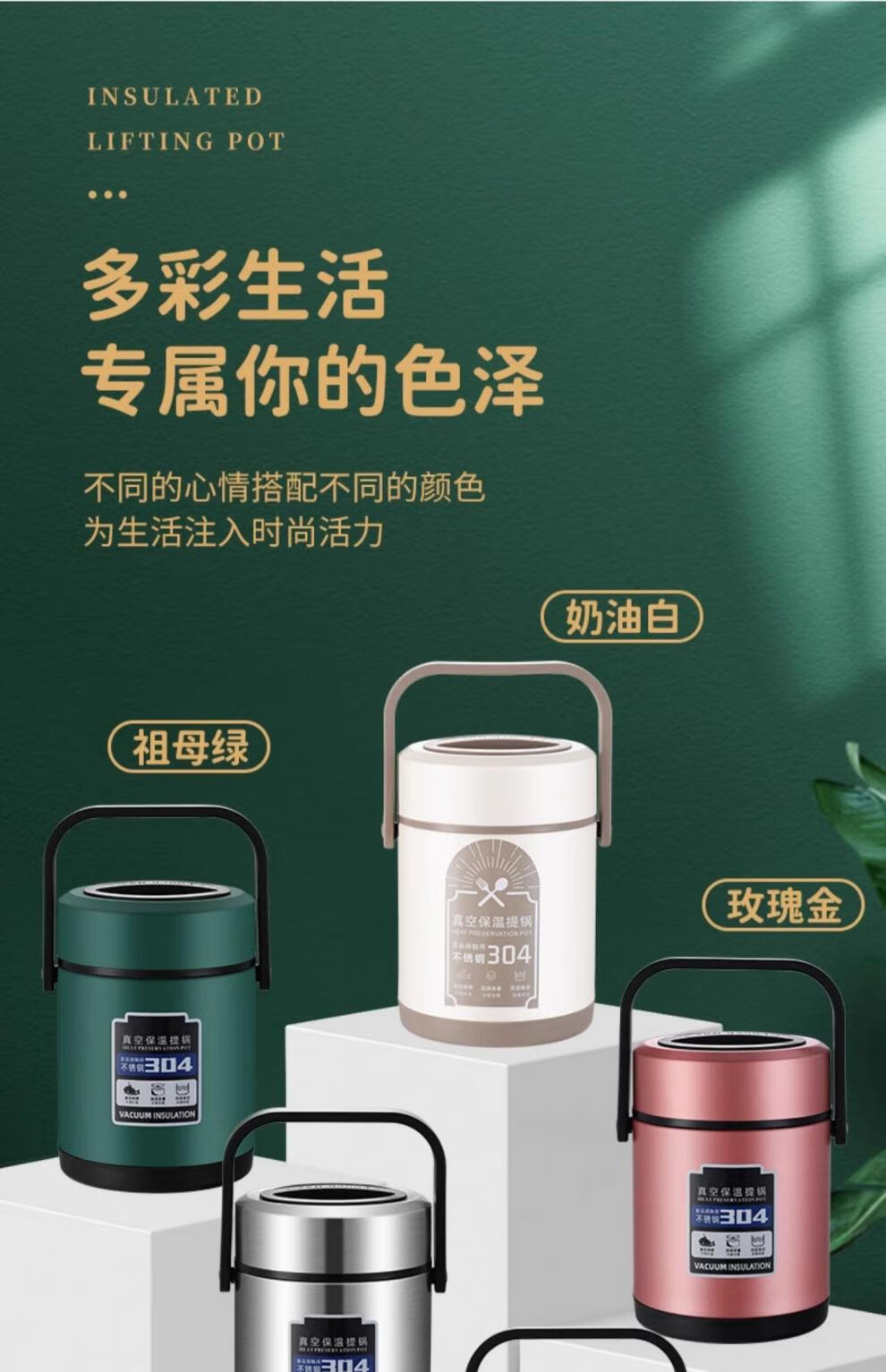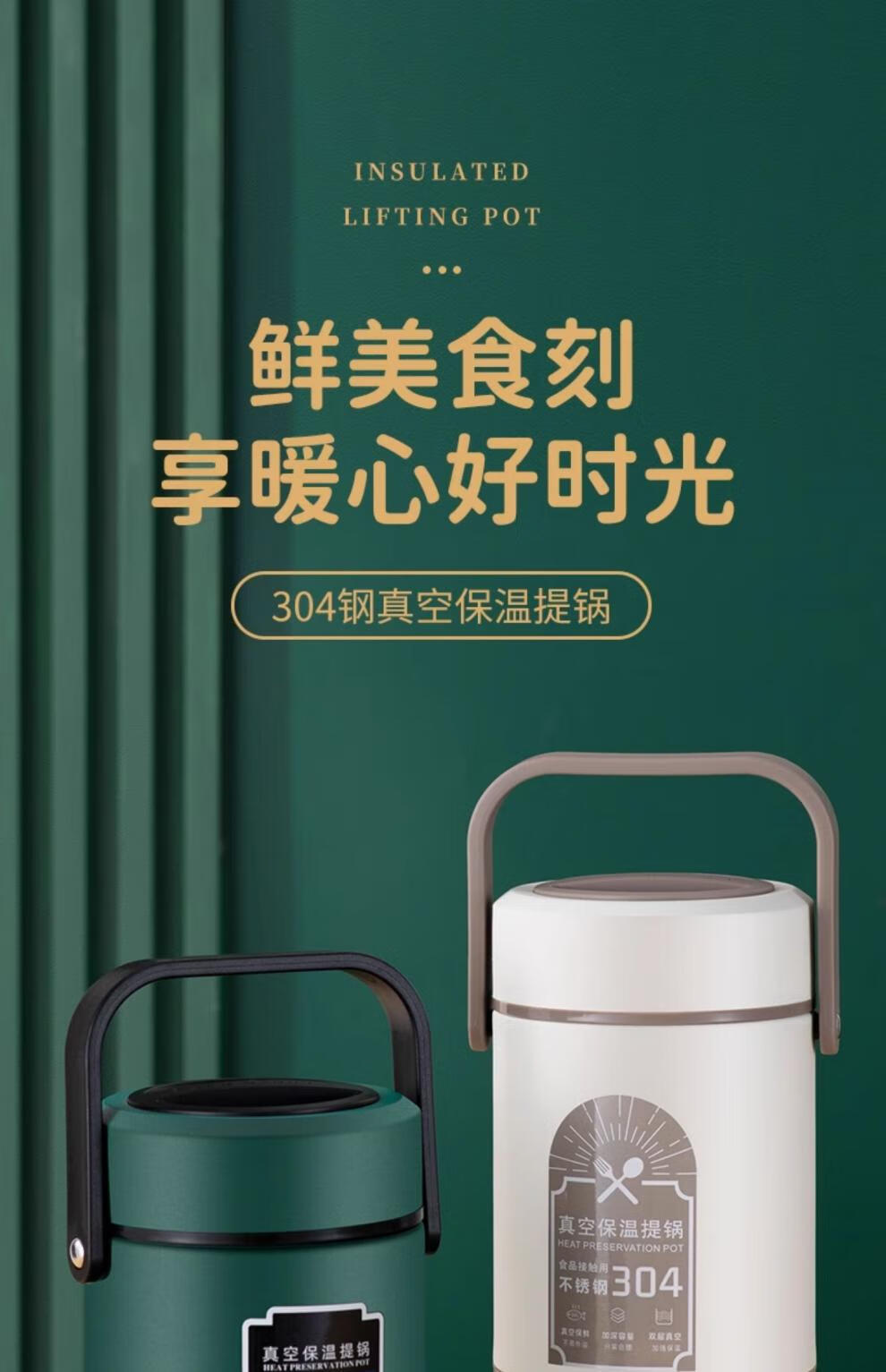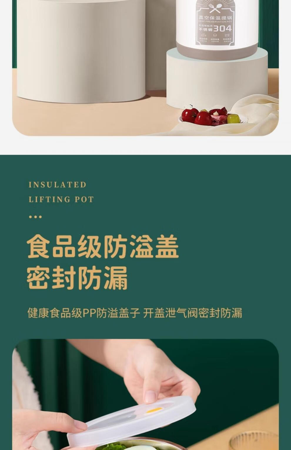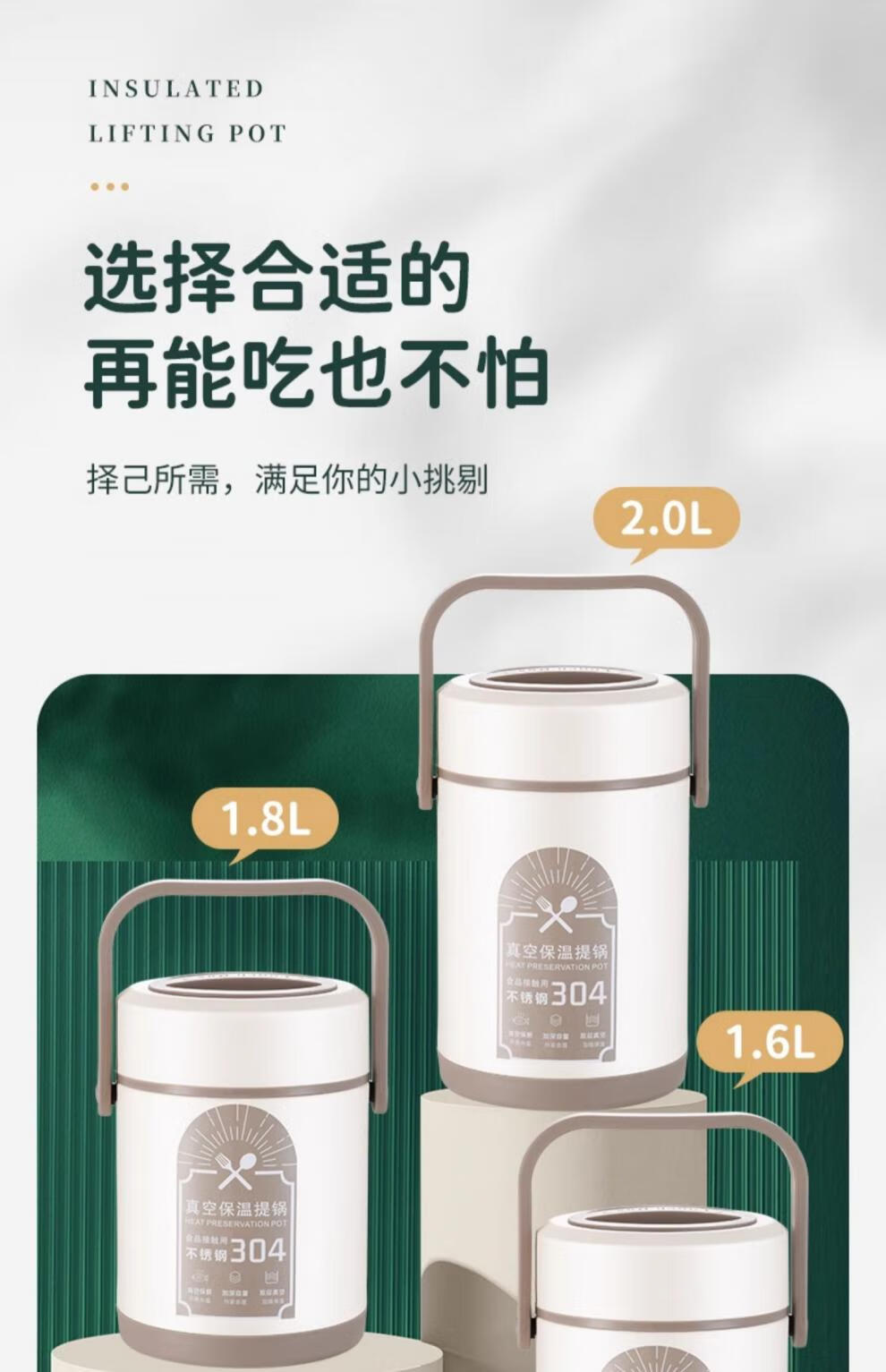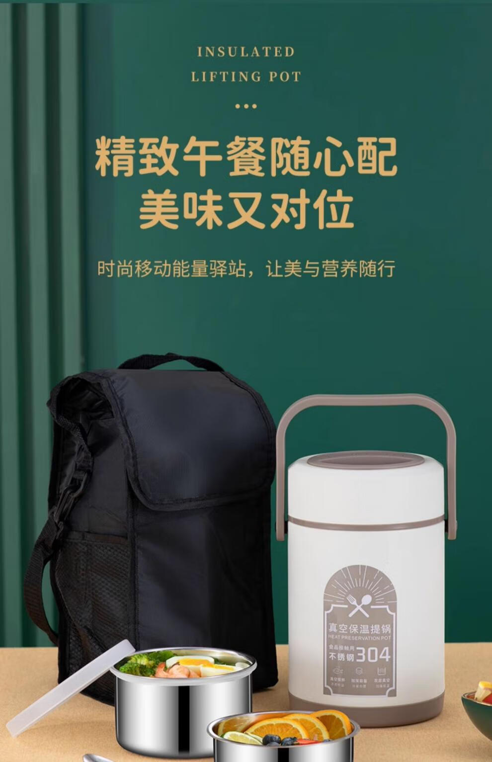 Aoyanlai 304 stainless steel insulated lunch box, large capacity, portable, 24-hour long-lasting temperature lock, three-layer insulated bucket 1.8L, cream white