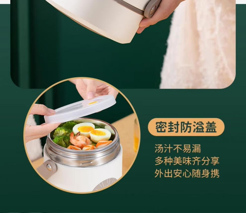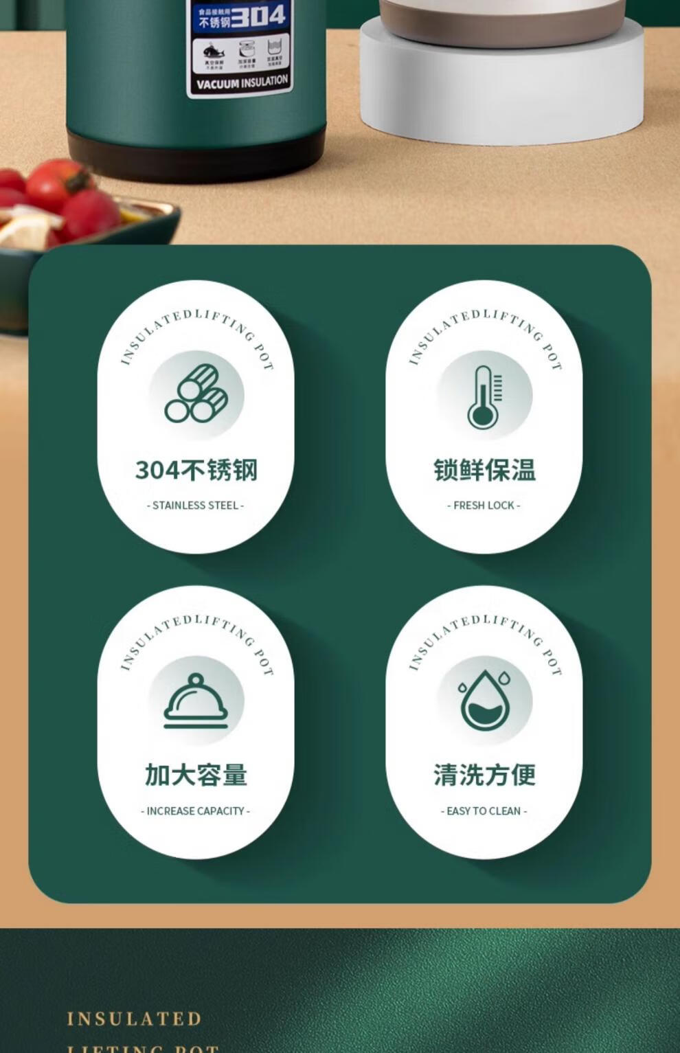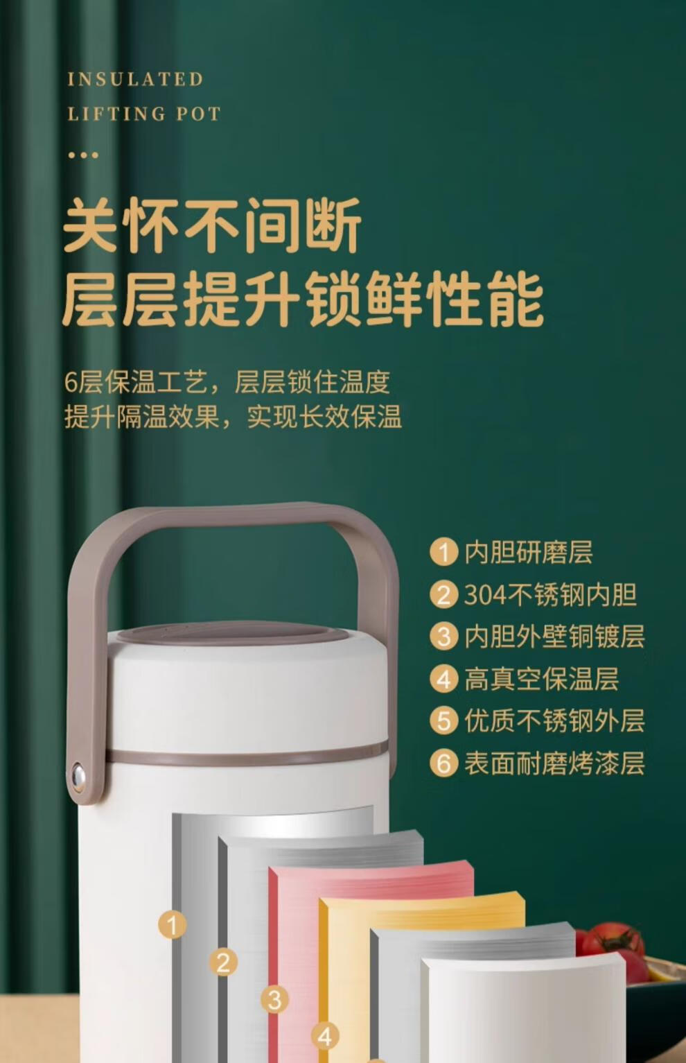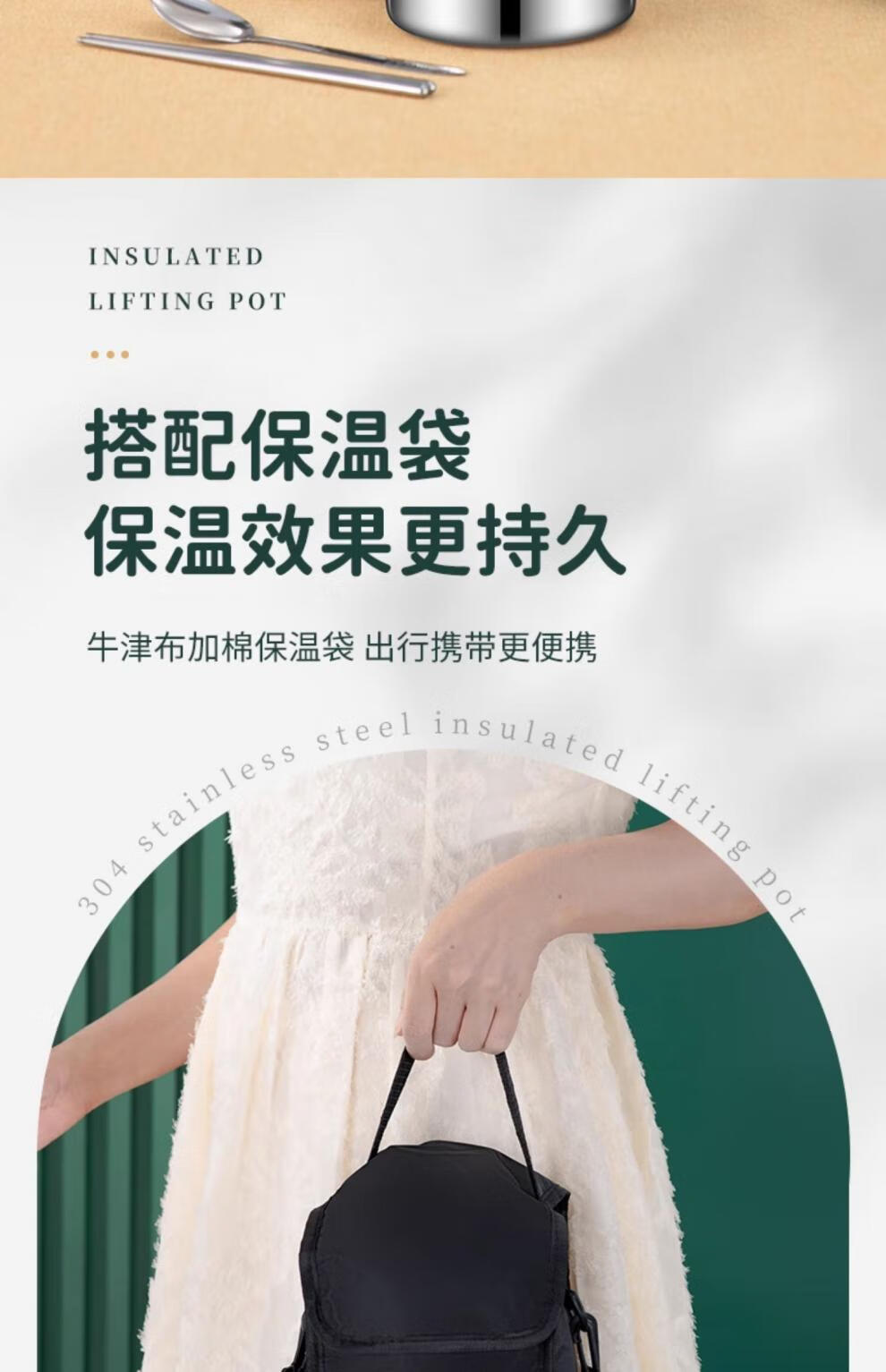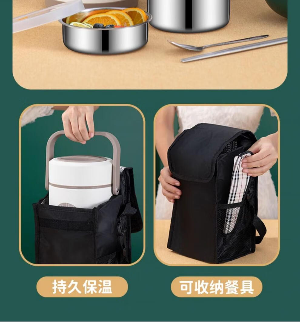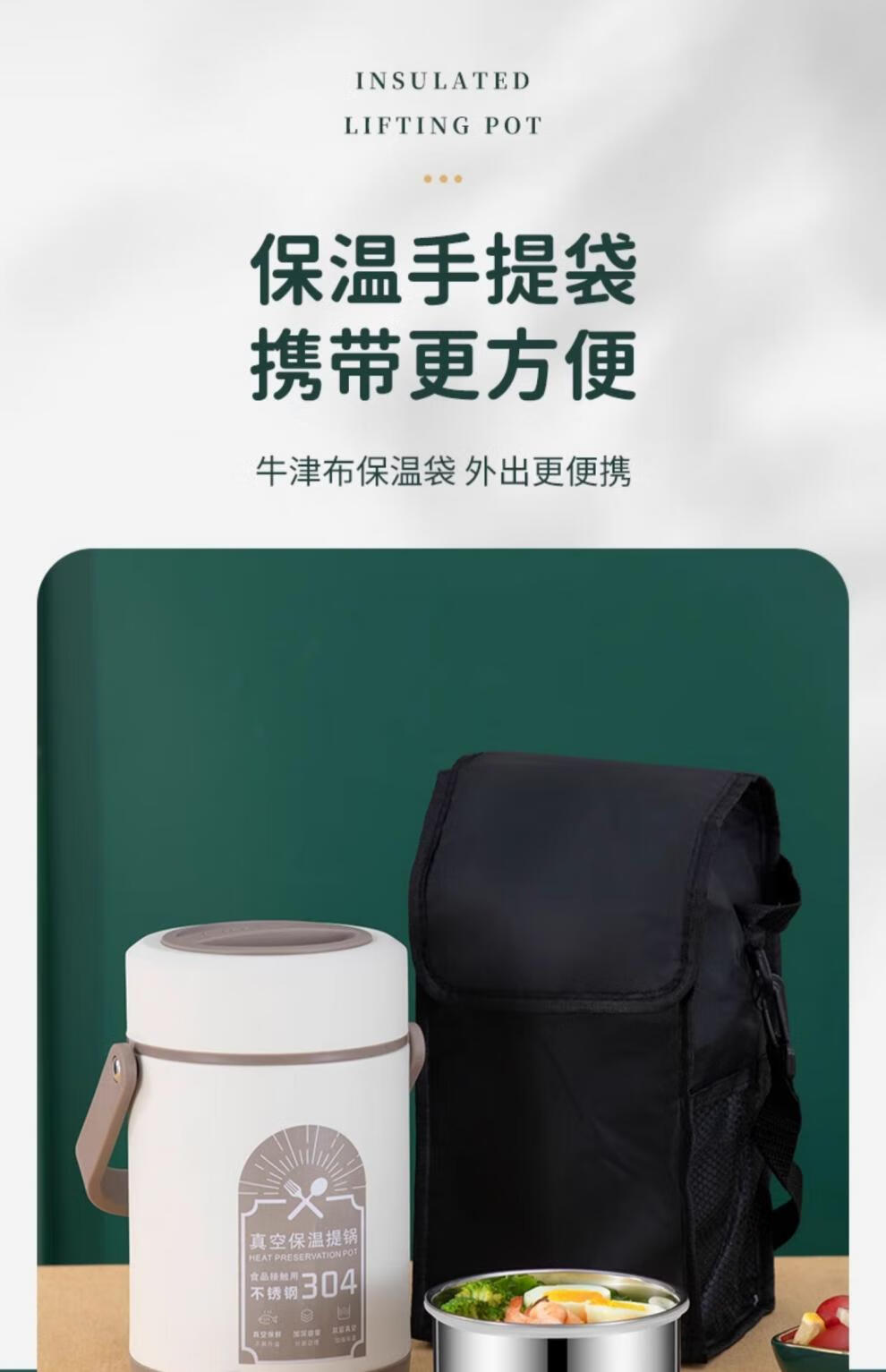 Aoyanlai 304 stainless steel insulated lunch box, large capacity, portable, 24-hour long-lasting temperature lock, three-layer insulated bucket 1.8L, cream white