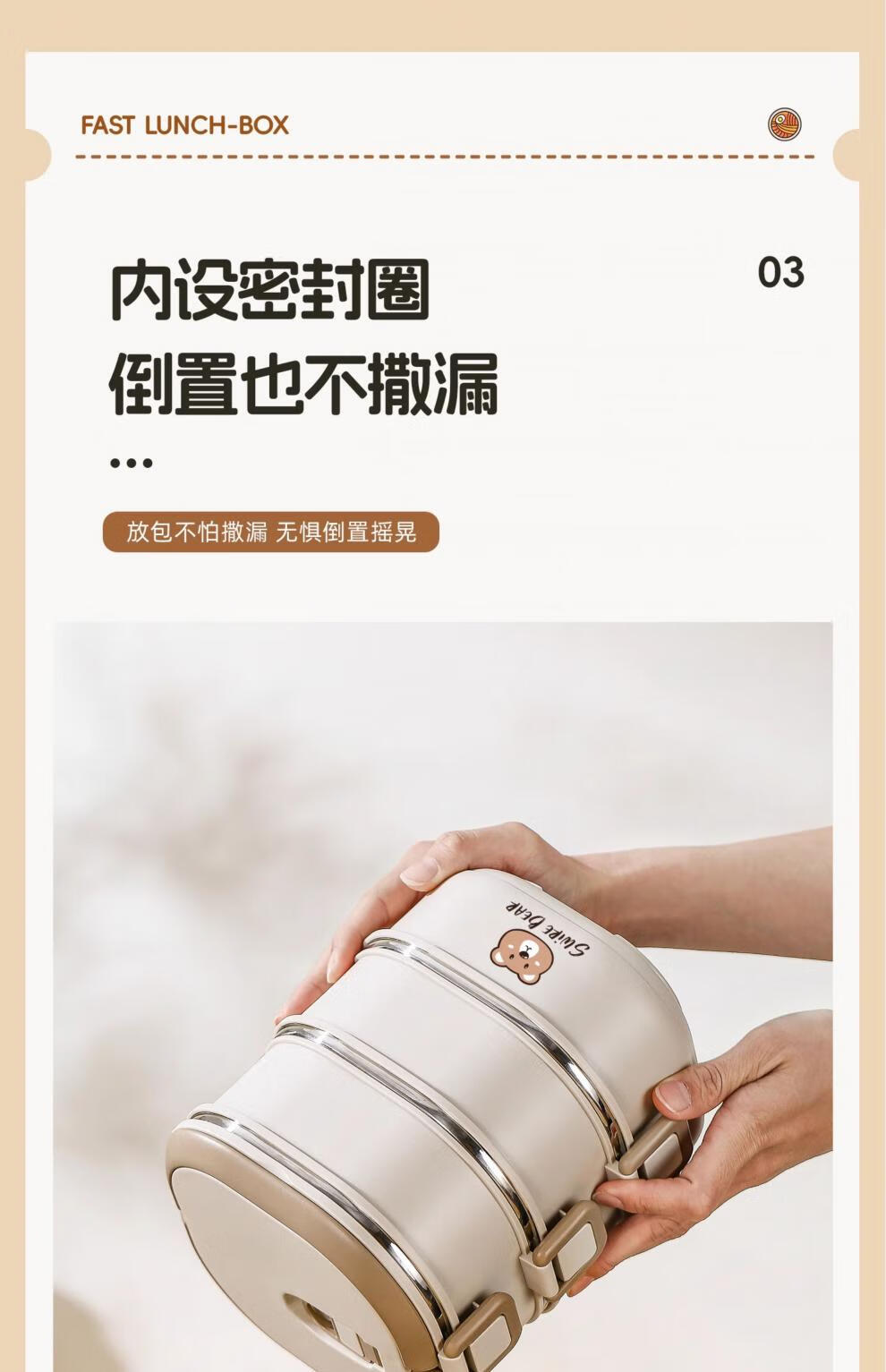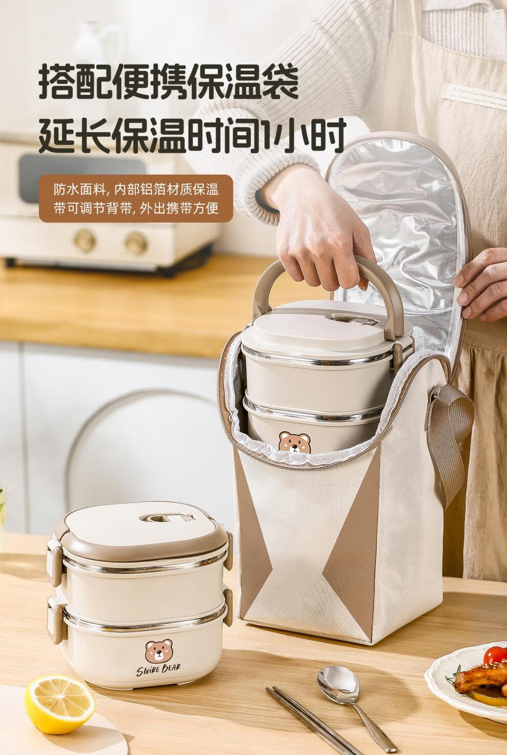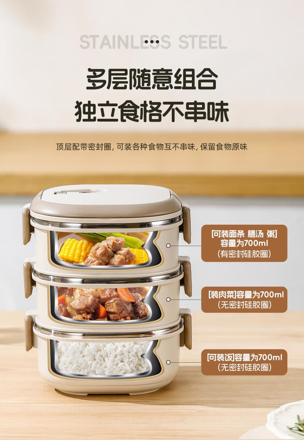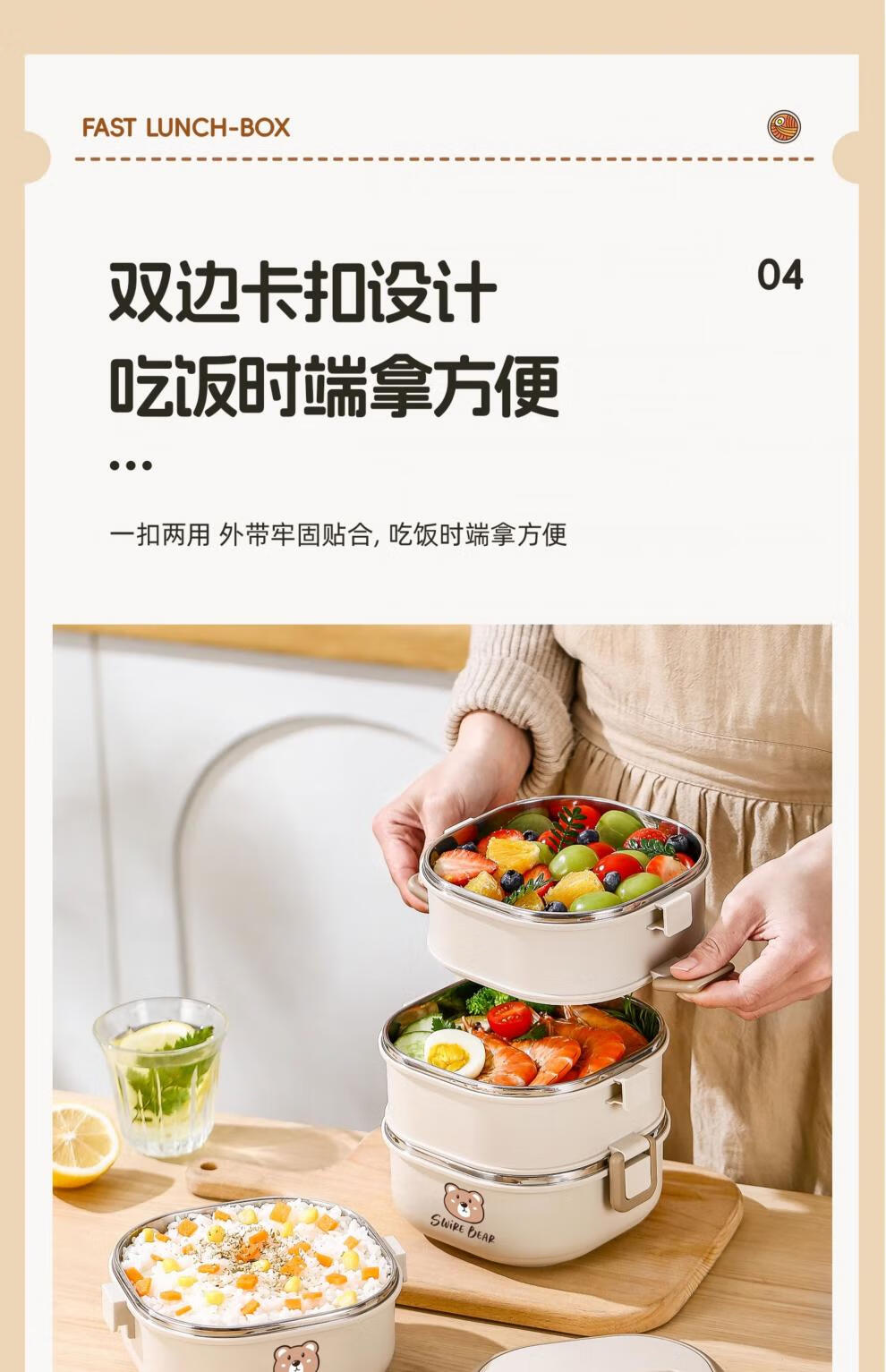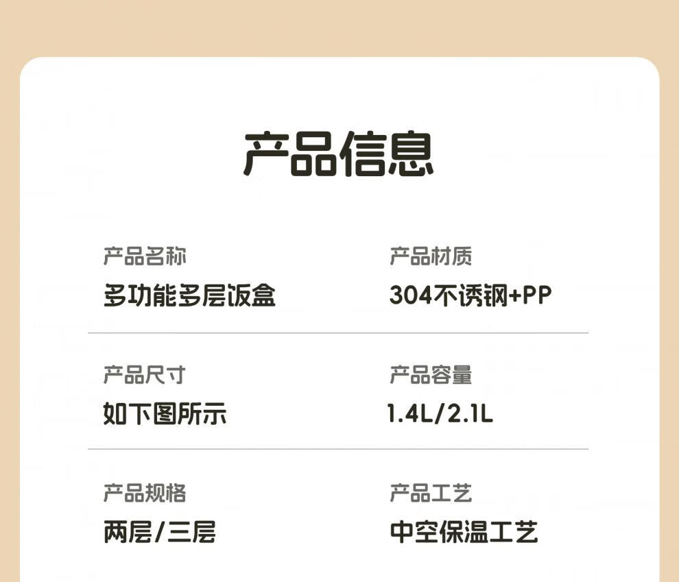 Aoyanlai stainless steel insulated lunch box 2025 new microwaveable multi-layer lunch box 304 steel-off-white two layers 1400ml