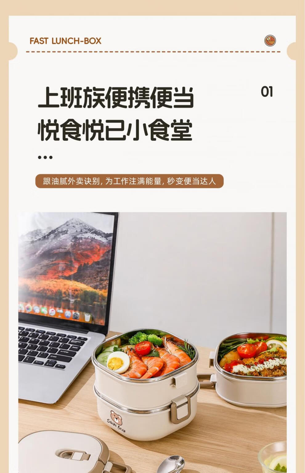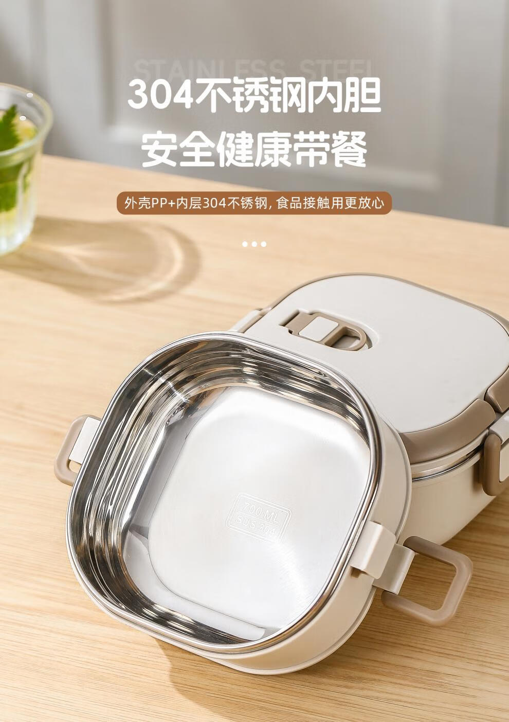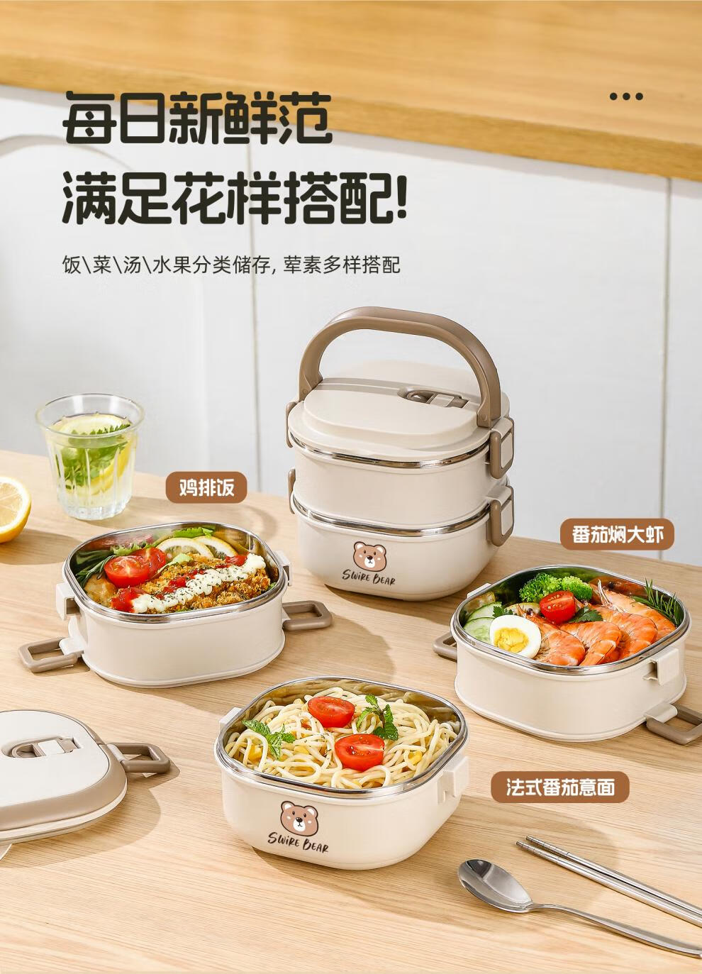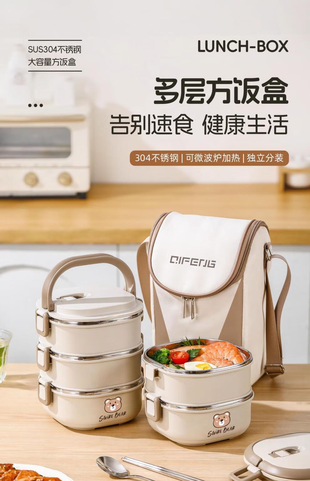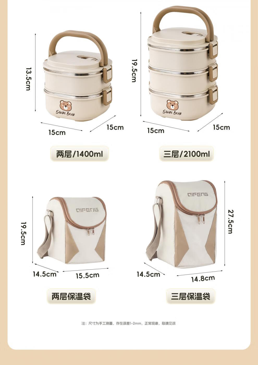 Aoyanlai stainless steel insulated lunch box 2025 new microwaveable multi-layer lunch box 304 steel-off-white two layers 1400ml