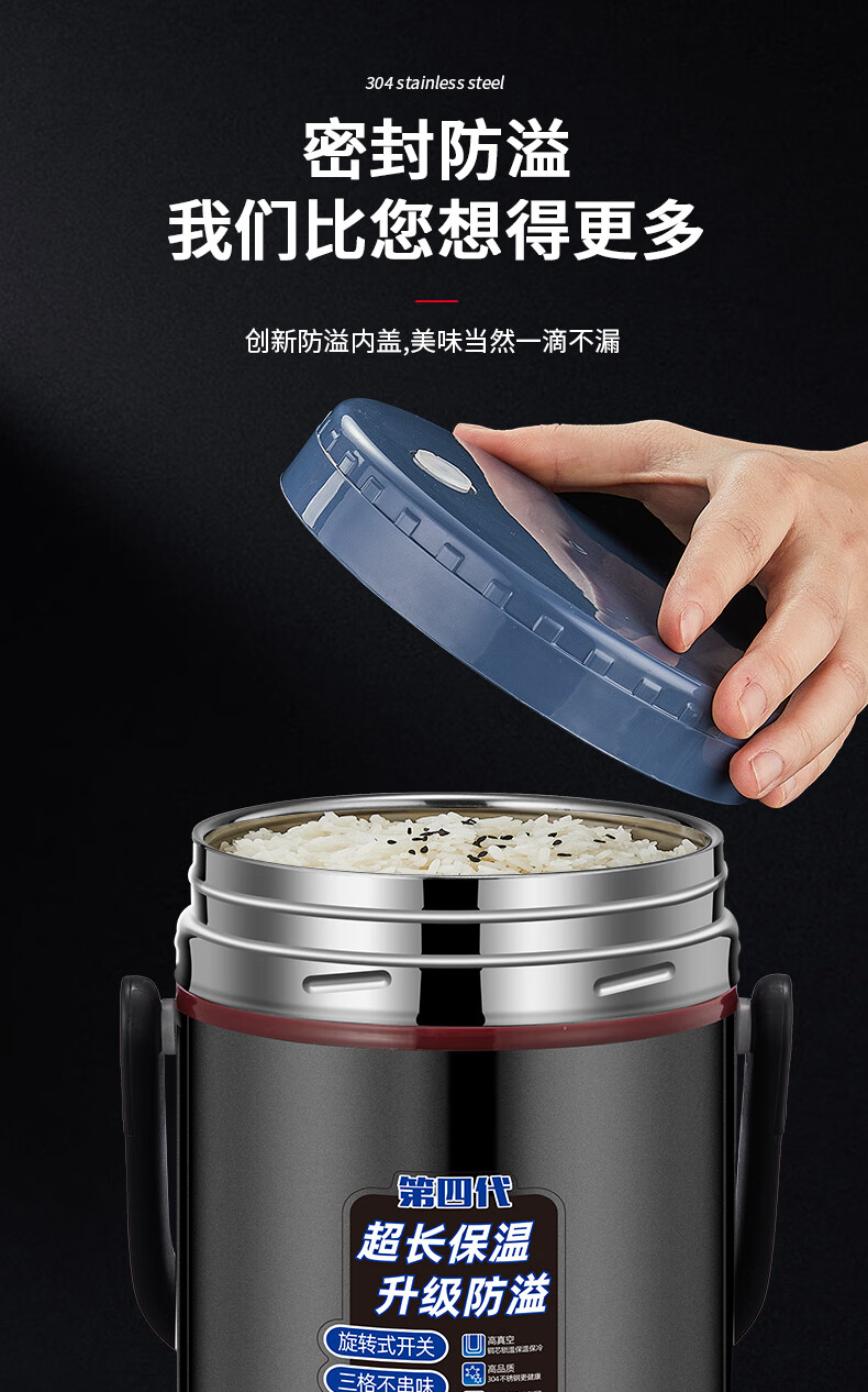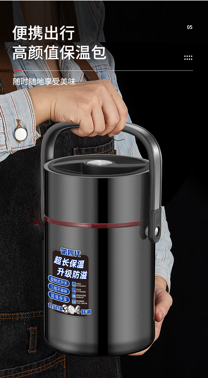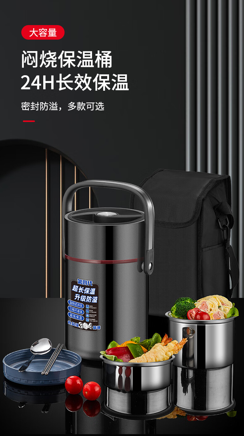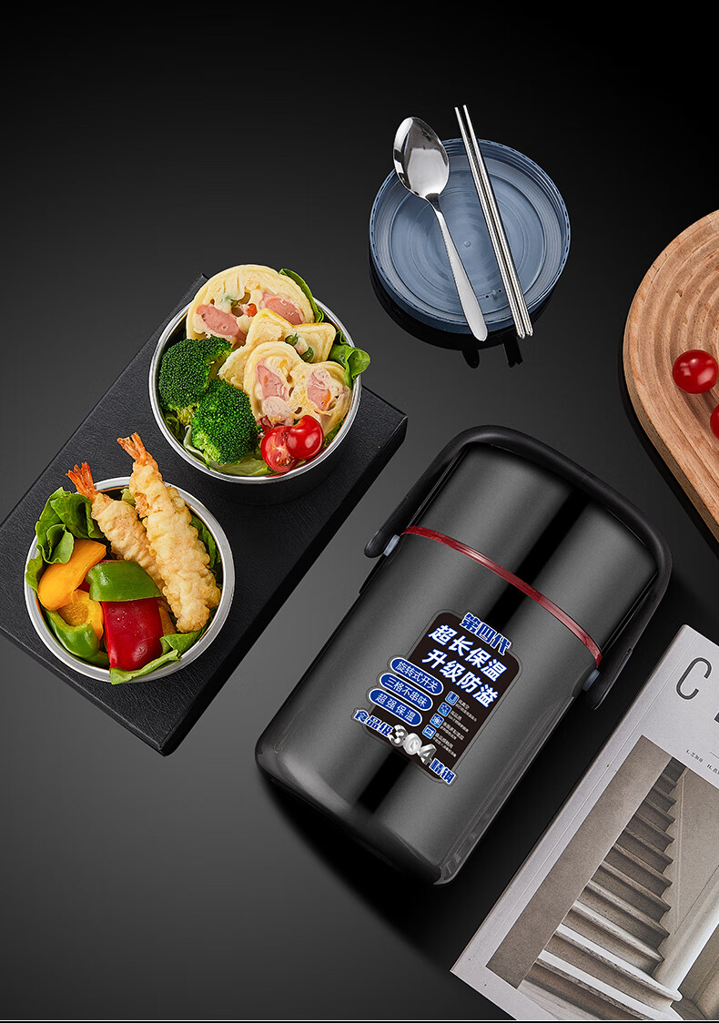 Aoyanlai 304 stainless steel thermal insulation lunch box, large capacity, portable, 24-hour long-lasting thermal insulation, 2.0 liters of premium gray + free of charge_ Suitable for primary school students