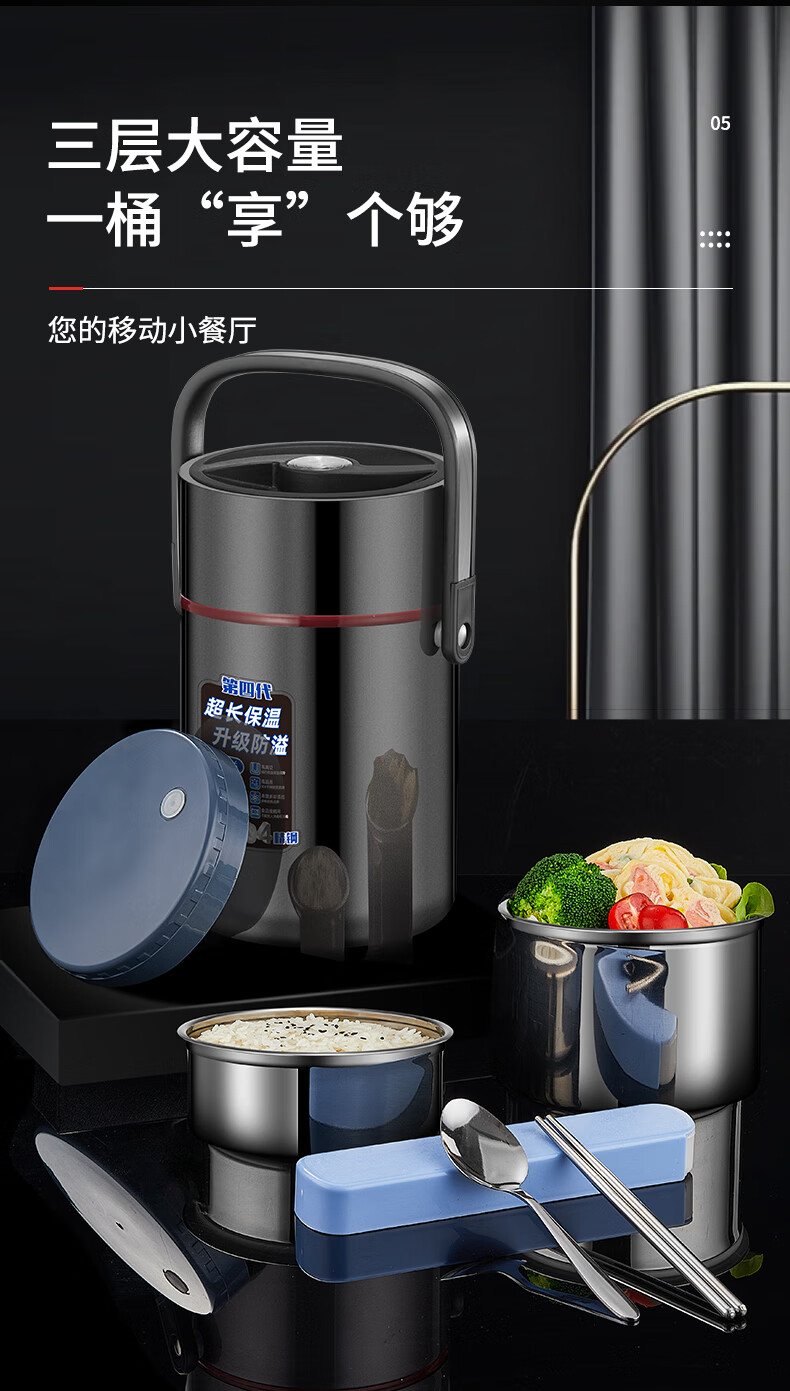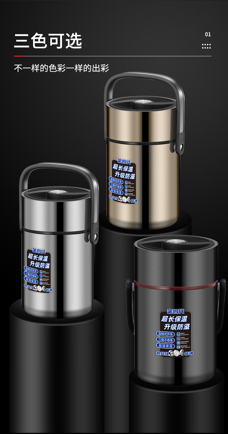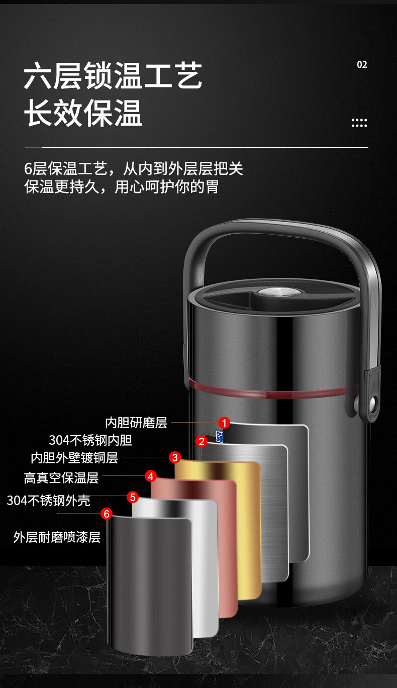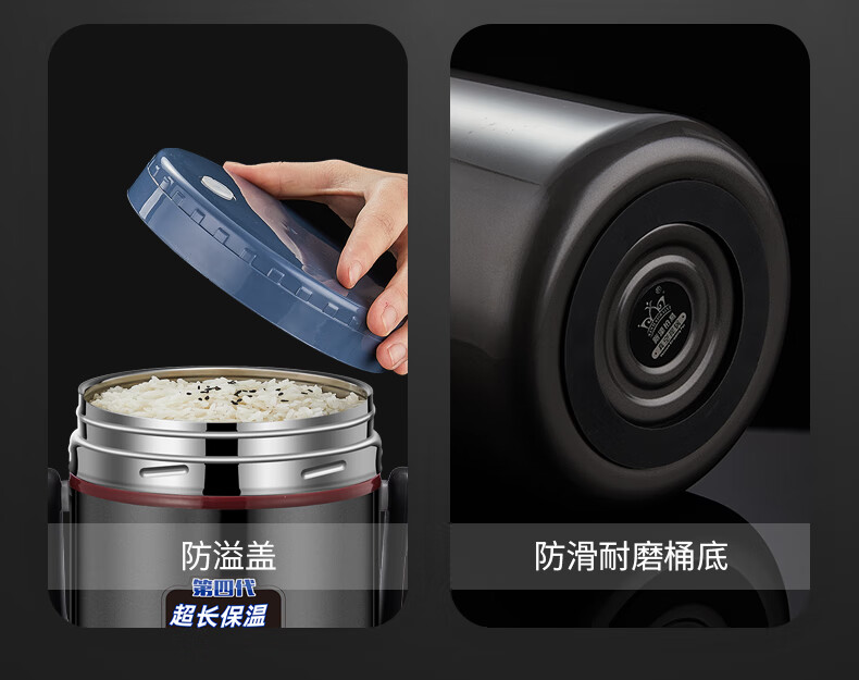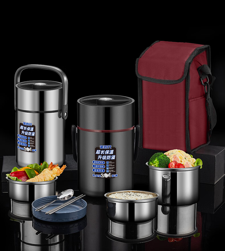 Aoyanlai 304 stainless steel thermal insulation lunch box, large capacity, portable, 24-hour long-lasting thermal insulation, 2.0 liters of premium gray + free of charge_ Suitable for primary school students