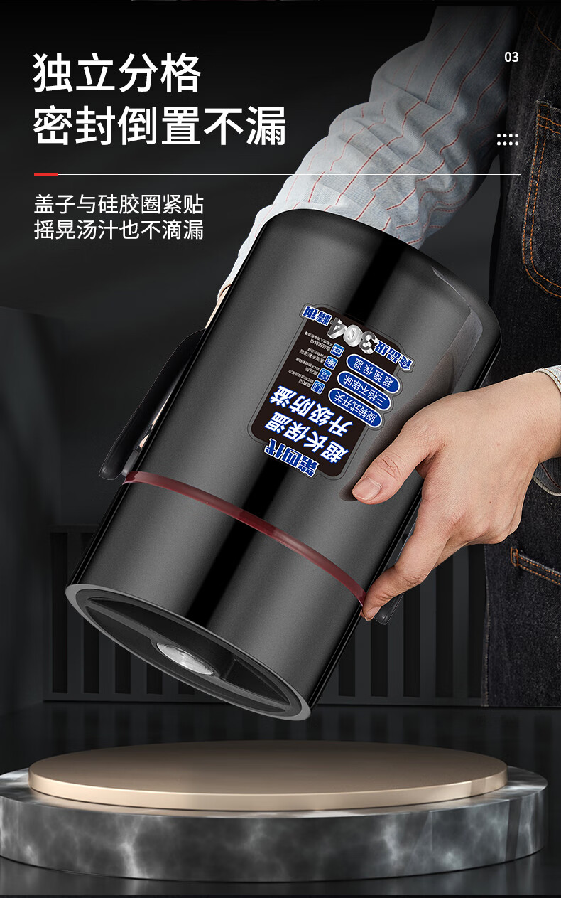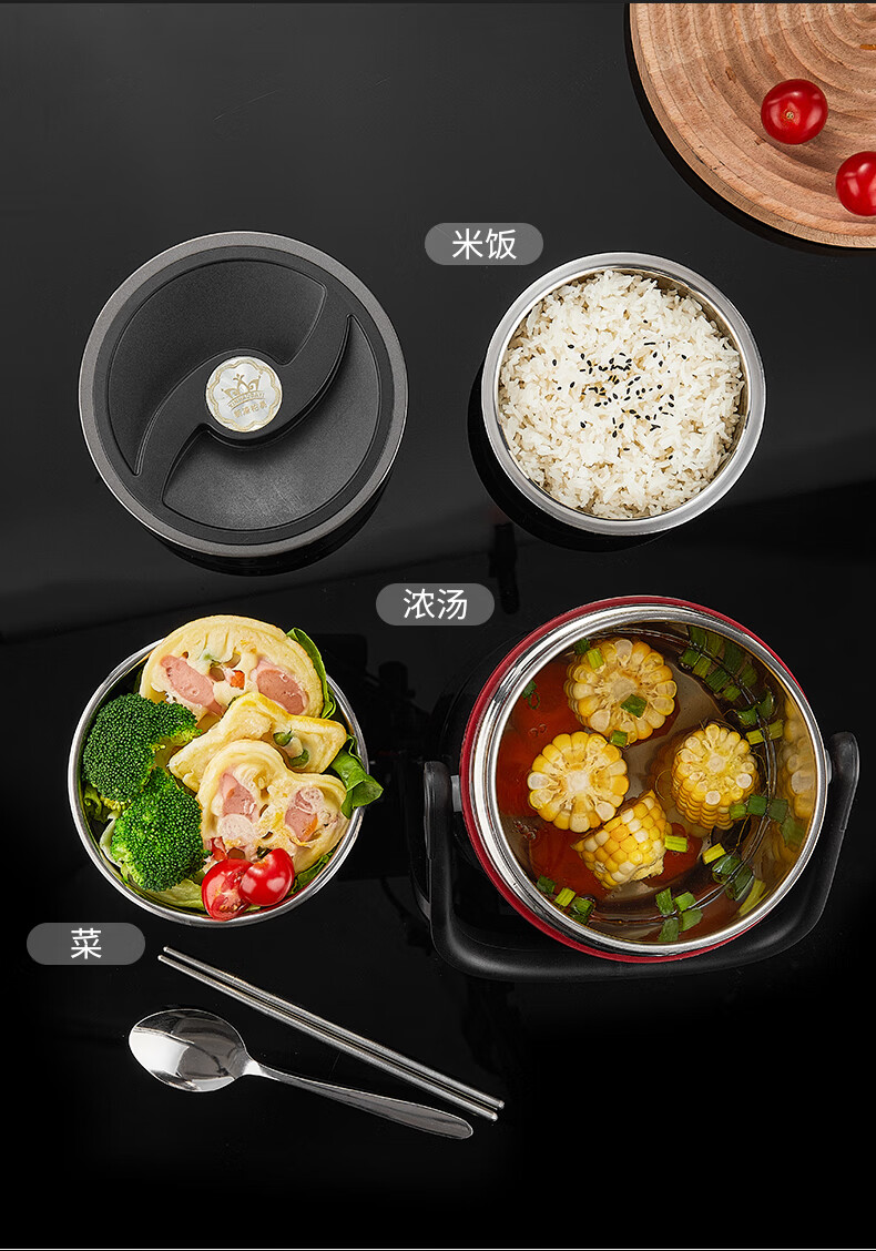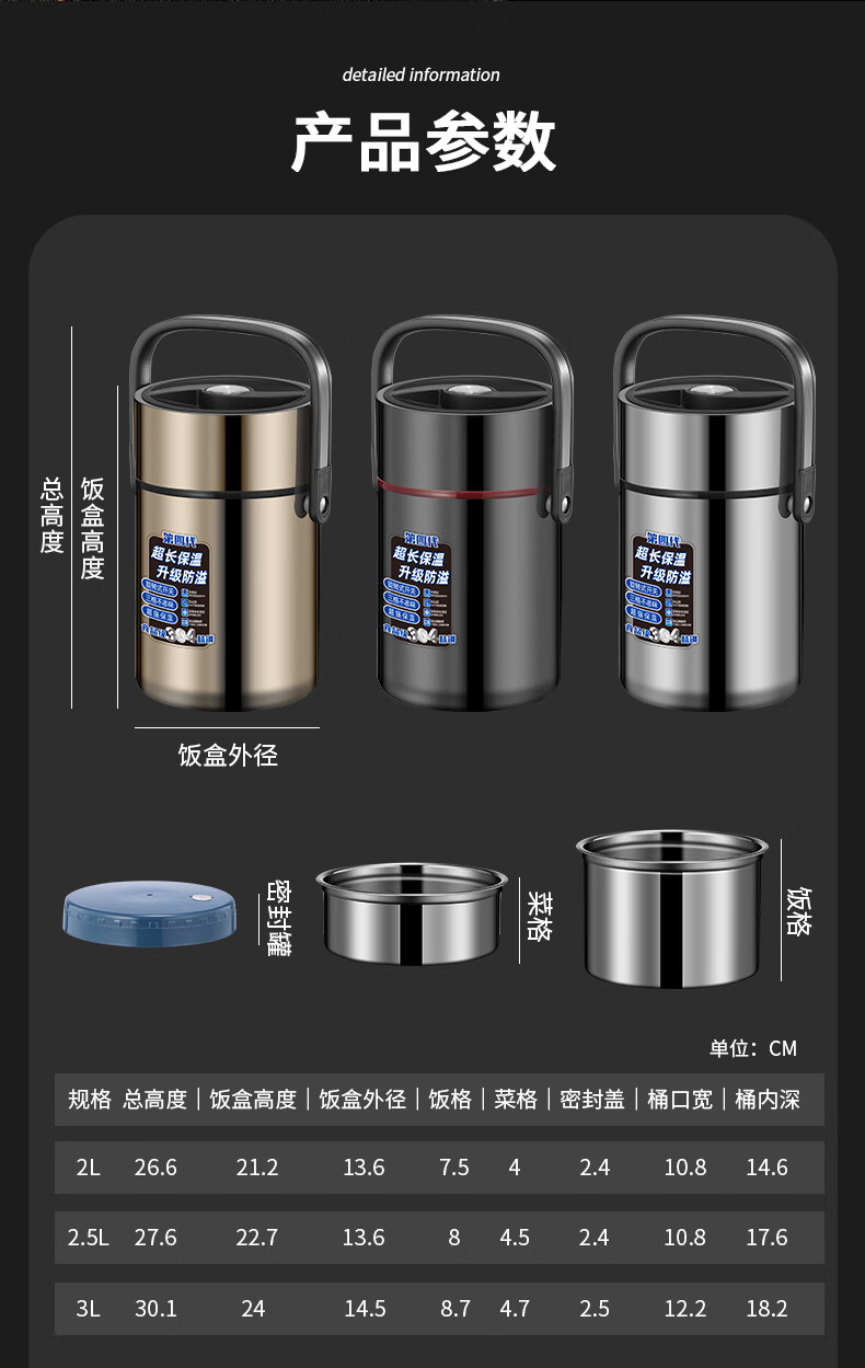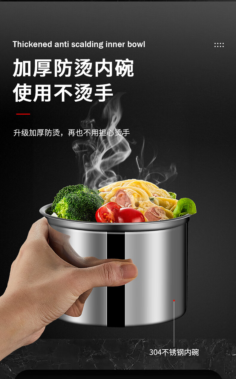 Aoyanlai 304 stainless steel thermal insulation lunch box, large capacity, portable, 24-hour long-lasting thermal insulation, 2.0 liters of premium gray + free of charge_ Suitable for primary school students