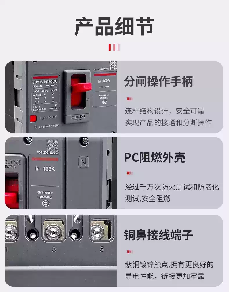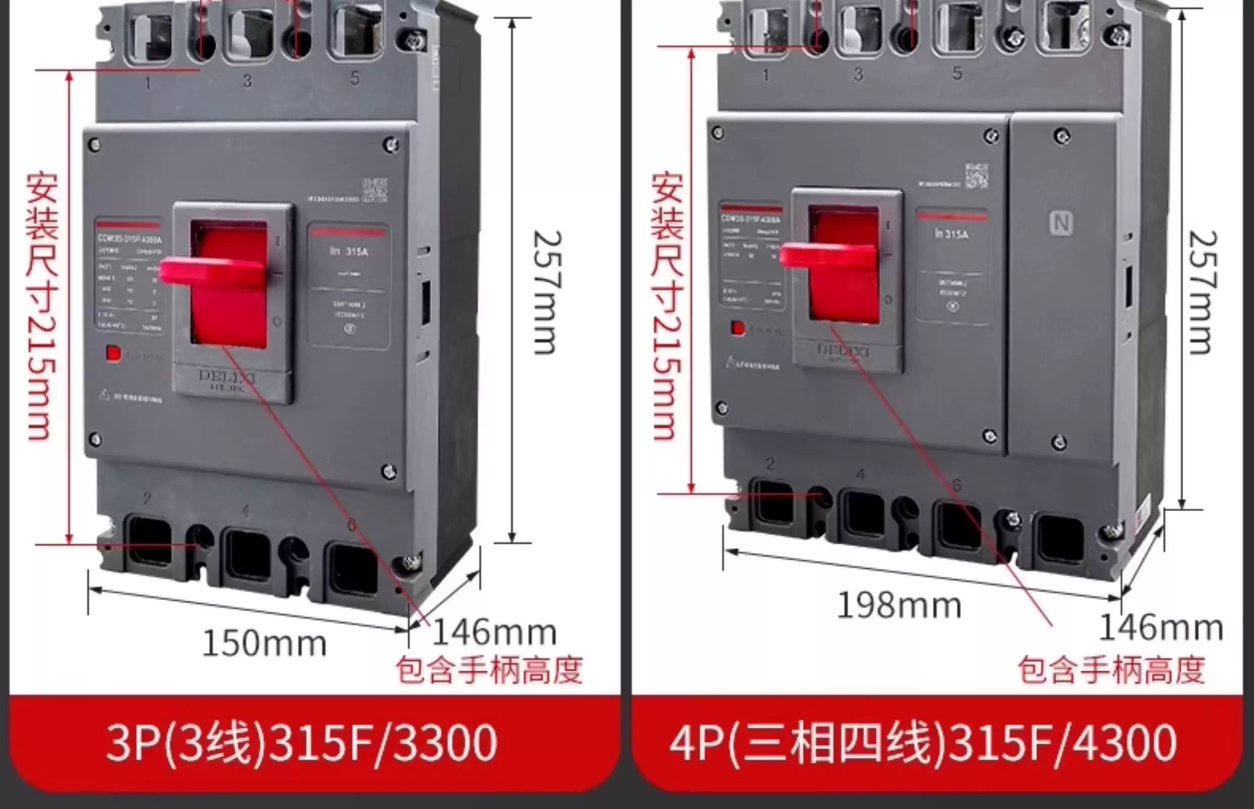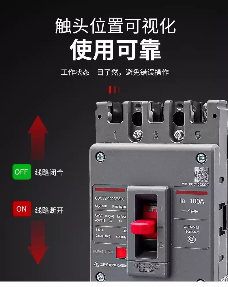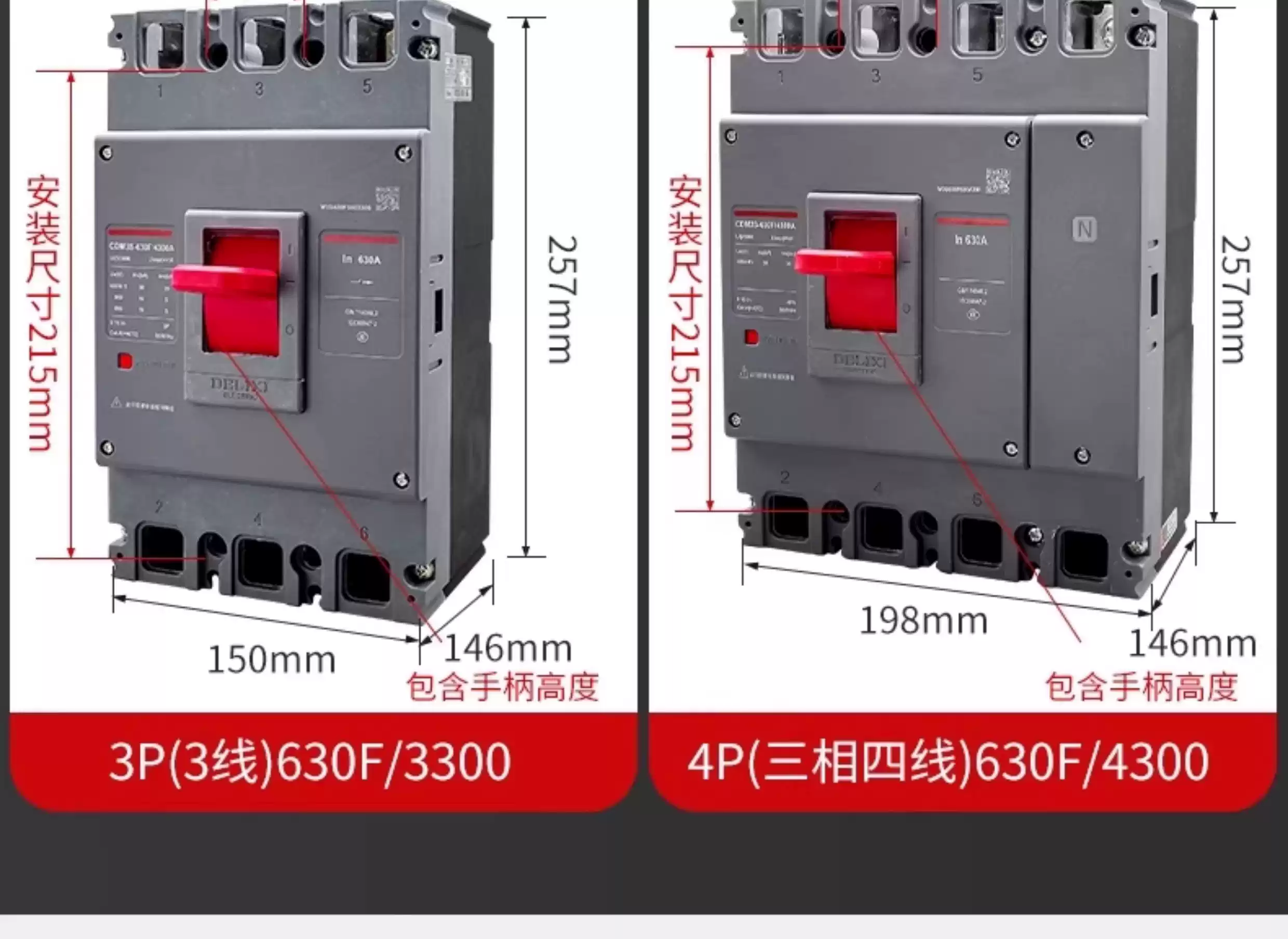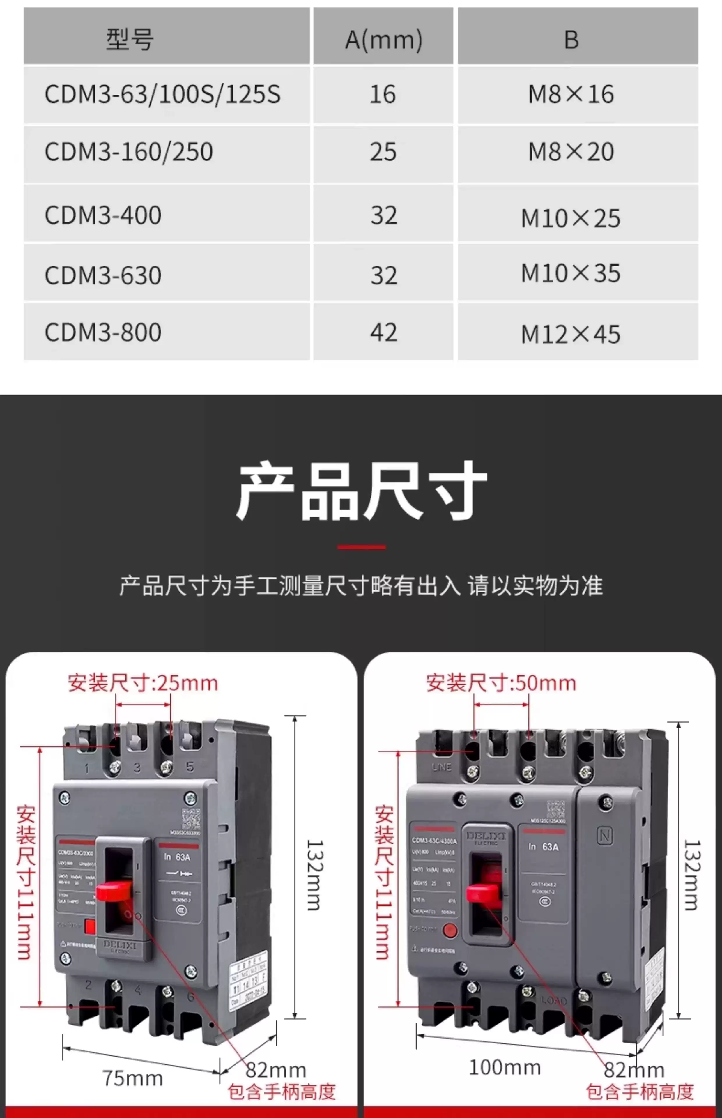 Delixi plastic case circuit breaker air switch CDM3CDM3S63A100A125A250A400A630A 125A 3P